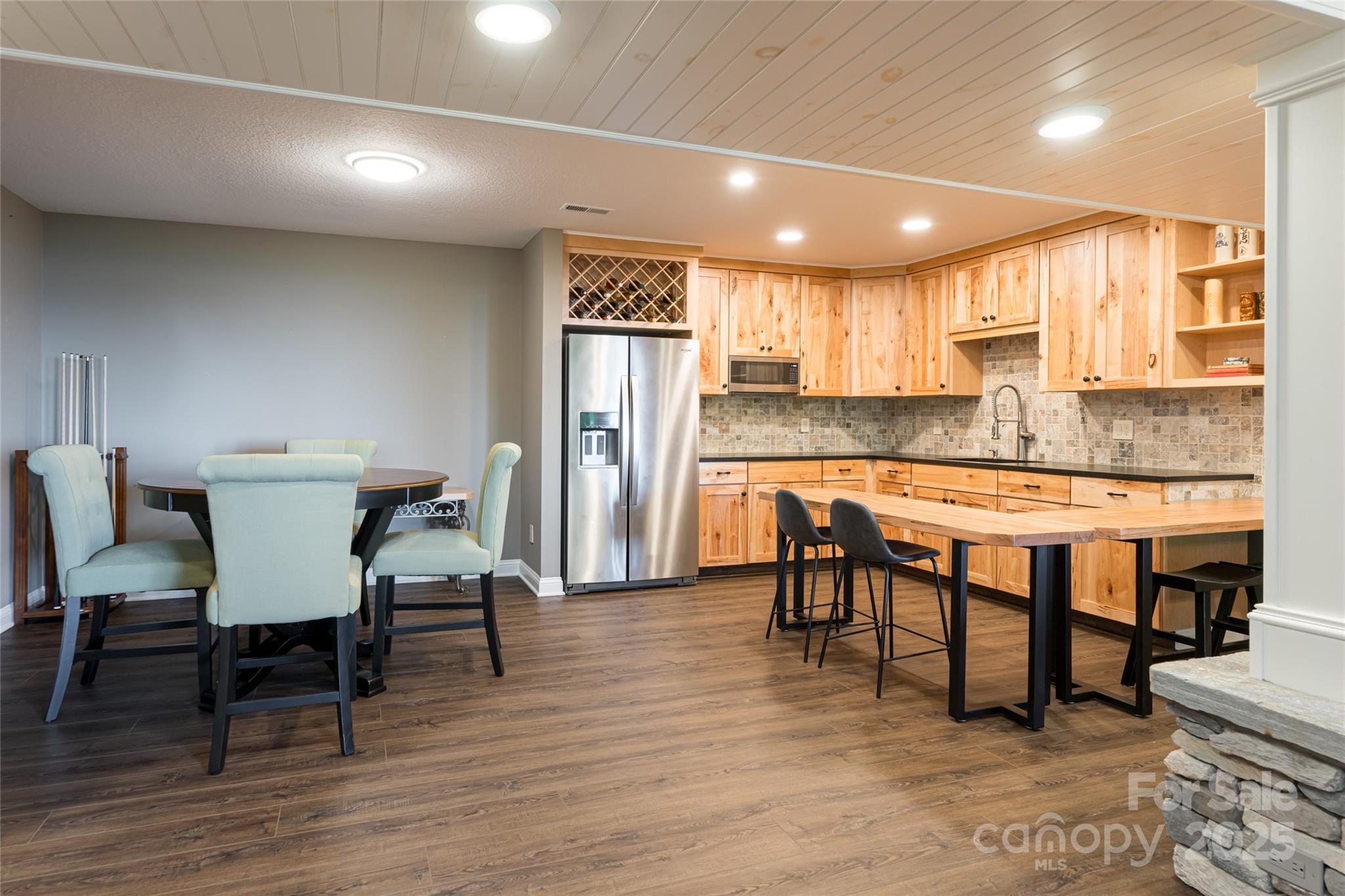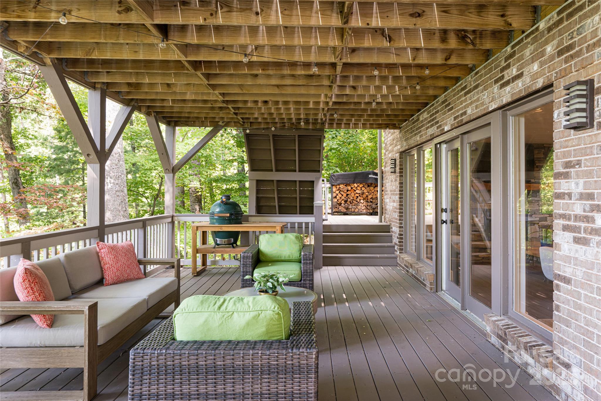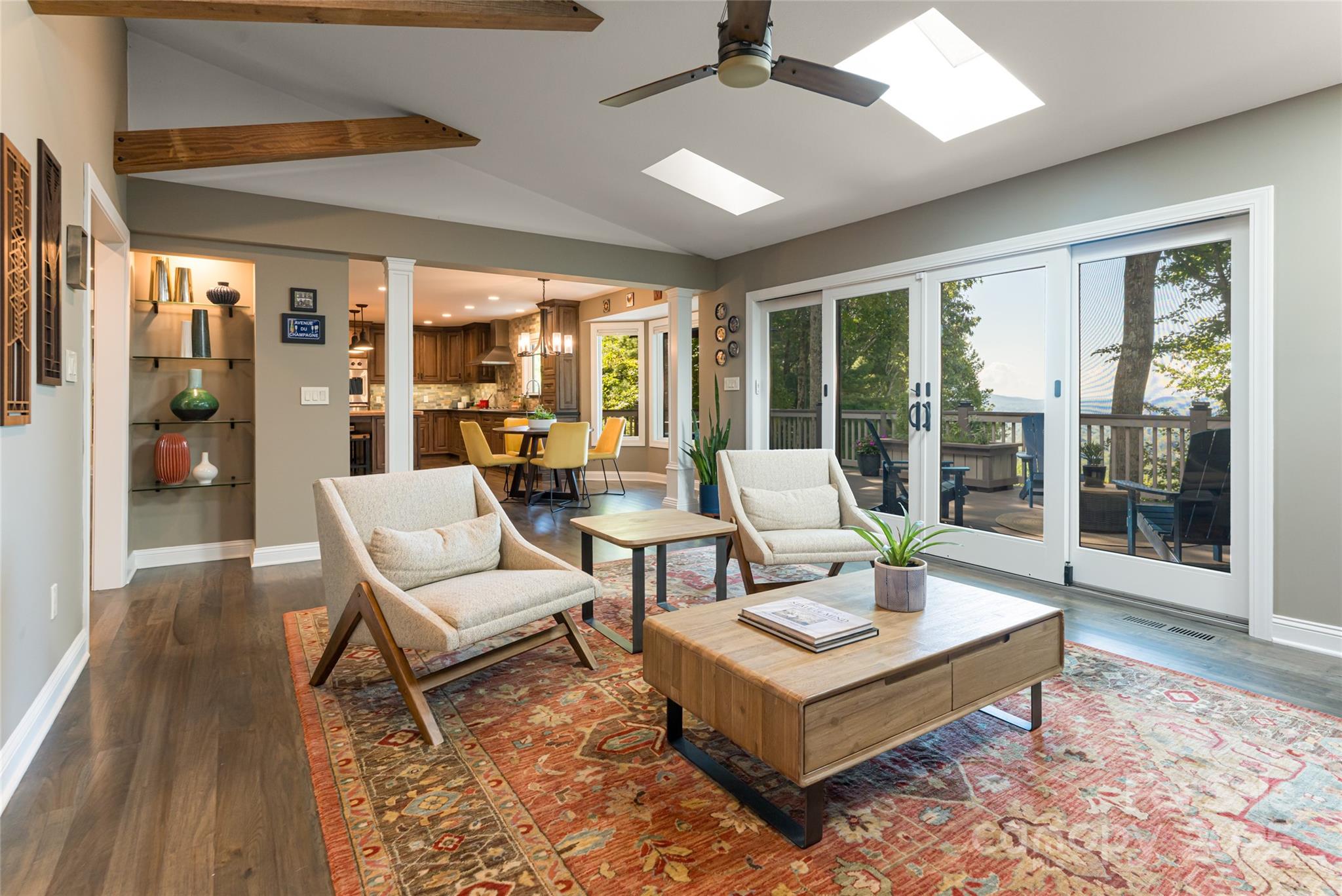 Welcome to 342 E Sondley Drive, an exceptional mountain estate in Asheville’s coveted Sondley Estates community. Perfectly sited on nearly an acre with long-range western views, this 5-bedroom, 4-bath home blends refined craftsmanship, privacy, and convenience just minutes from downtown Asheville, the Blue Ridge Parkway, and Haw Creek’s beloved local amenities. The moment you enter, you’re greeted by soaring vaulted ceilings, exposed beams, and walls of glass framing expansive mountain vistas. Wide-plank hardwood floors, custom millwork, and thoughtful architectural details create a timeless yet modern mountain aesthetic. The open-concept main level offers a seamless flow for both entertaining and everyday living, anchored by a chef’s kitchen with a massive Ambrosia-maple island, leathered-granite countertops, Viking appliances, and a walk-in pantry. A cozy sitting area by the fireplace opens to an expansive deck overlooking the treetops—ideal for morning coffee or sunset gatherings. The primary suite is a true retreat featuring Brazilian Koa floors, vaulted shiplap ceiling with skylights, and a spa-inspired bath complete with soaking tub, walk-in shower, and picture windows showcasing the mountain backdrop. Additional bedrooms provide flexible options for family, guests, or home office use. The fully finished lower level includes a family room, billiards area, kitchenette, wine cellar, guest suite, and office—all opening to a deck and hot tub surrounded by mature landscaping and serene privacy. Outdoor living is at the heart of this property. Tiered decks, a hand-laid paver courtyard, and an artisan-built waterfall feature create a peaceful sanctuary. The nearly 0.9-acre lot enjoys a canopy of mature trees, gentle slopes, and year-round mountain views. A two-car garage, generous storage, and updated mechanical systems make this home as functional as it is beautiful. Located in one of East Asheville’s most desirable enclaves, Sondley Estates offers wide roads, underground utilities, and a quiet community feel while remaining close to everything Asheville is known for. Residents enjoy easy access to the Blue Ridge Parkway, Highland Brewery, and WNC Nature Center, plus a short drive to downtown’s vibrant mix of fine dining, art galleries, and live music. Local favorites like PennyCup Coffee, Creekside Taphouse, and East Village Grill are just minutes away. For outdoor enthusiasts, explore the nearby Masters Park, Mountains-to-Sea Trail, Azalea Park, and John B. Lewis Soccer Complex—all within a few miles. With over 5,400 square feet of living space, every detail of this residence has been designed for comfort, elegance, and connection to its natural surroundings. Whether relaxing fireside, entertaining on the expansive decks, or exploring Asheville’s mountain lifestyle, 342 E Sondley Drive offers an unmatched combination of design, location, and livability. Experience elevated mountain living—where timeless architecture meets Asheville convenience—in the heart of Sondley Estates.