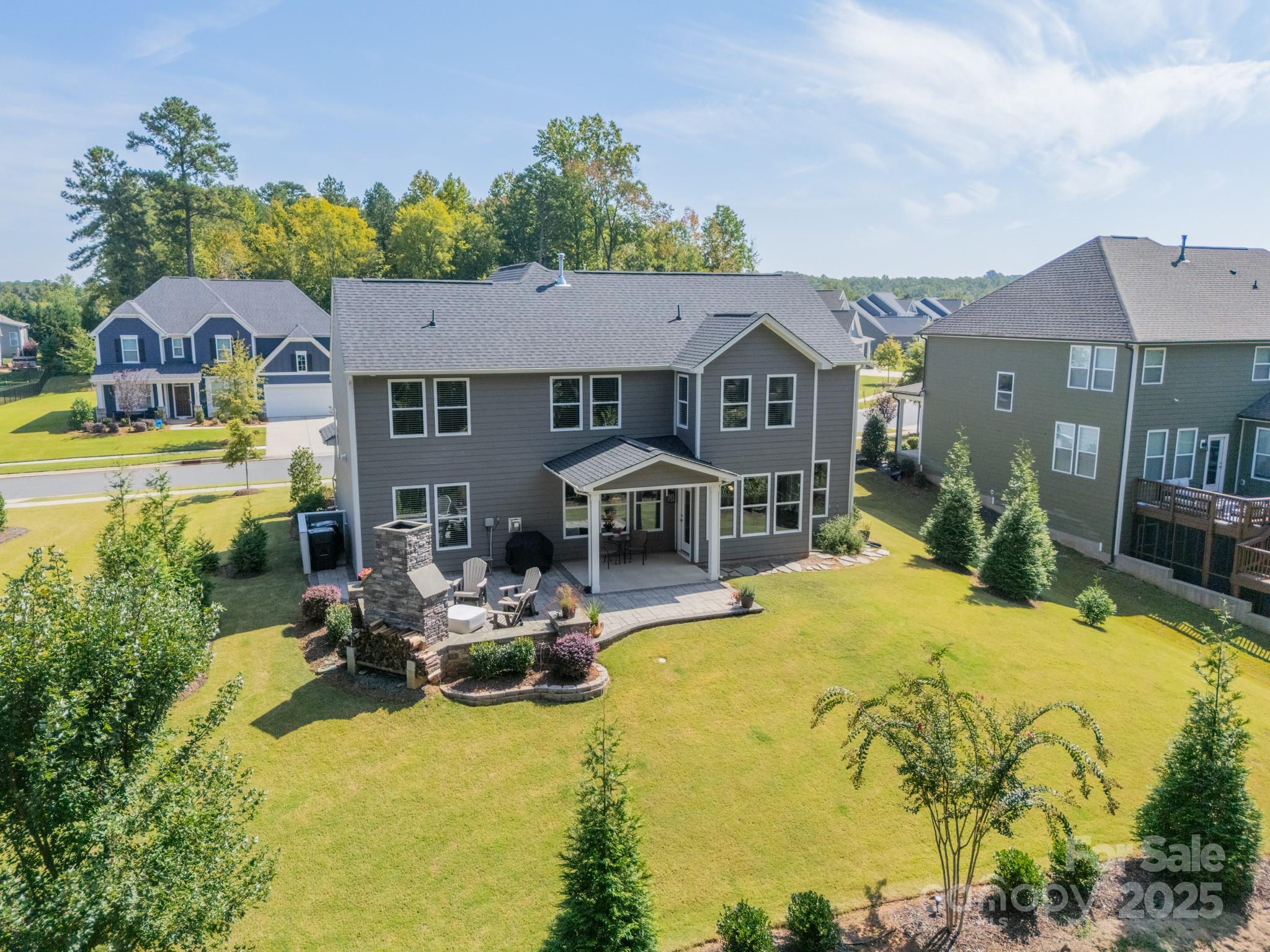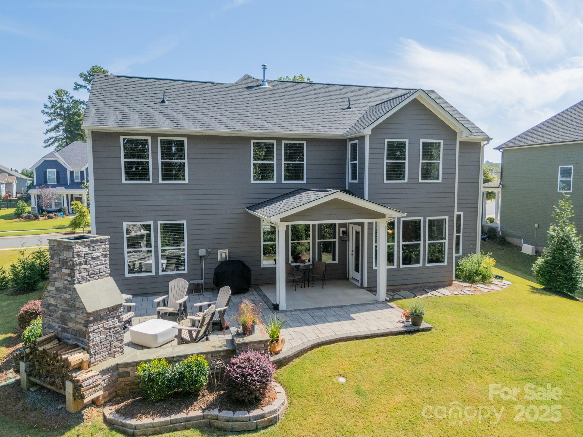 Stunning home with architectural charm, a premier tree-lined lot, and a backyard patio you'll never want to leave! Settle in and make the most of lakeside living in this amenity-rich community! Step inside, where the open floor plan keeps everyone connected while you soak up the sun-filled living space and gorgeous backyard views! The kitchen is the heart of the home with Lagoon Quartz countertops, a massive island (charcuterie board approved!), crisp white cabinetry, stainless steel appliances and a gas cooktop ready for your favorite recipes! The main level bedroom and full bath are perfect for guests or an extra home office. Upstairs, the primary suite is your own getaway - complete with a sitting area, en suite bathroom with tiled shower and a walk-in closet! The loft is ready for movie nights, play dates, or maybe even that Peloton studio you’ve been dreaming about! The back yard space is a show stopper - framed by tall trees and tucked on a premier lot, it’s designed for both relaxation and entertainment! Sip morning coffee on the covered patio, host friends on the paver patio, or gather around the outdoor fireplace where every evening feels like a mini getaway - no reservations required! The community is full of resort style amenities with kayak + boat launch, Pickleball court, two pools, dog park + boat & RV storage! Cruise in your golf cart and head to the pool or pop by a neighbor’s porch! Hop on the boat to all that Lake Wylie has to offer. Life on the lake starts now! Just minutes to the airport, Uptown, The Whitewater Center + downtown Belmont! Welcome Home!