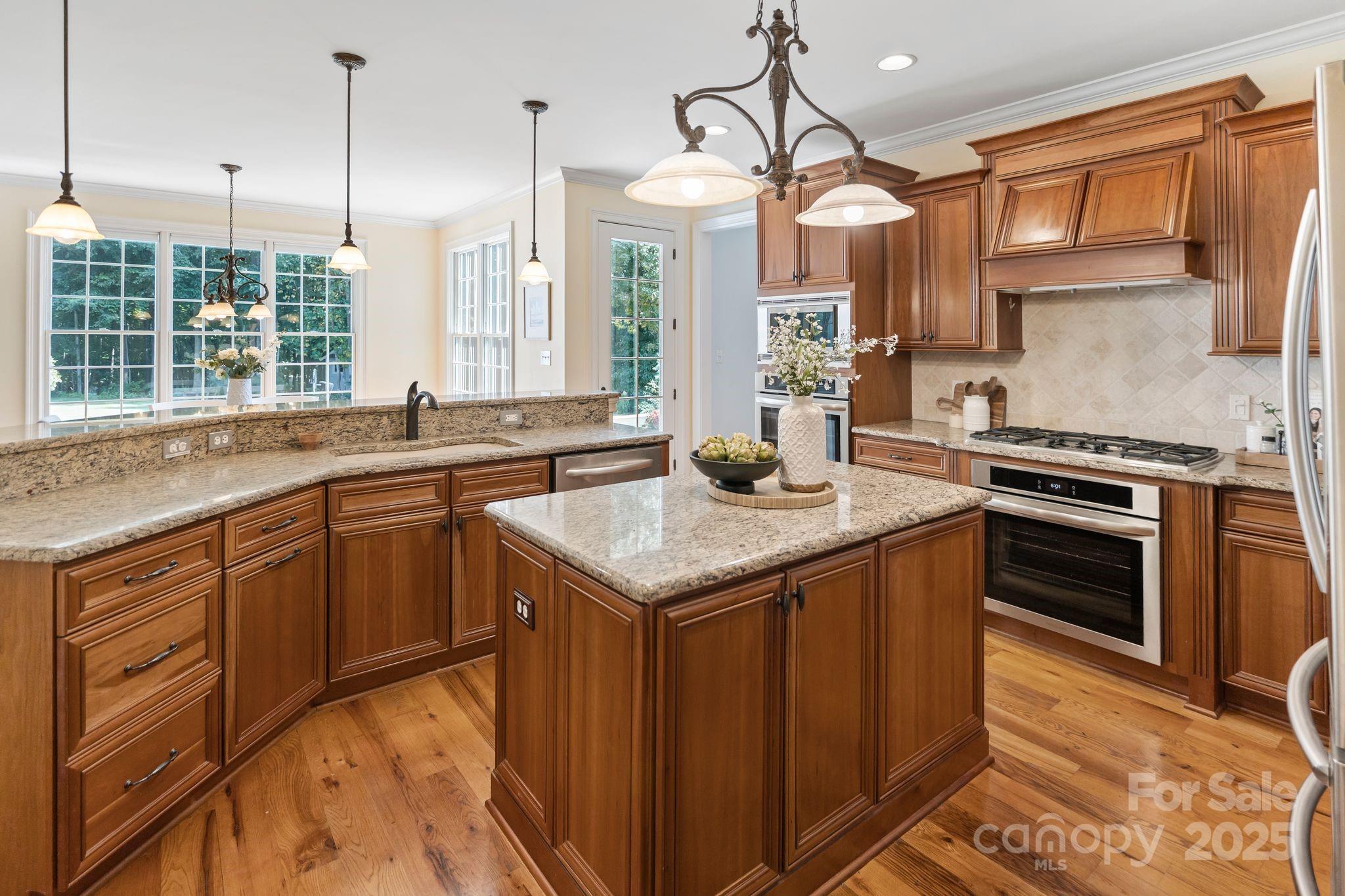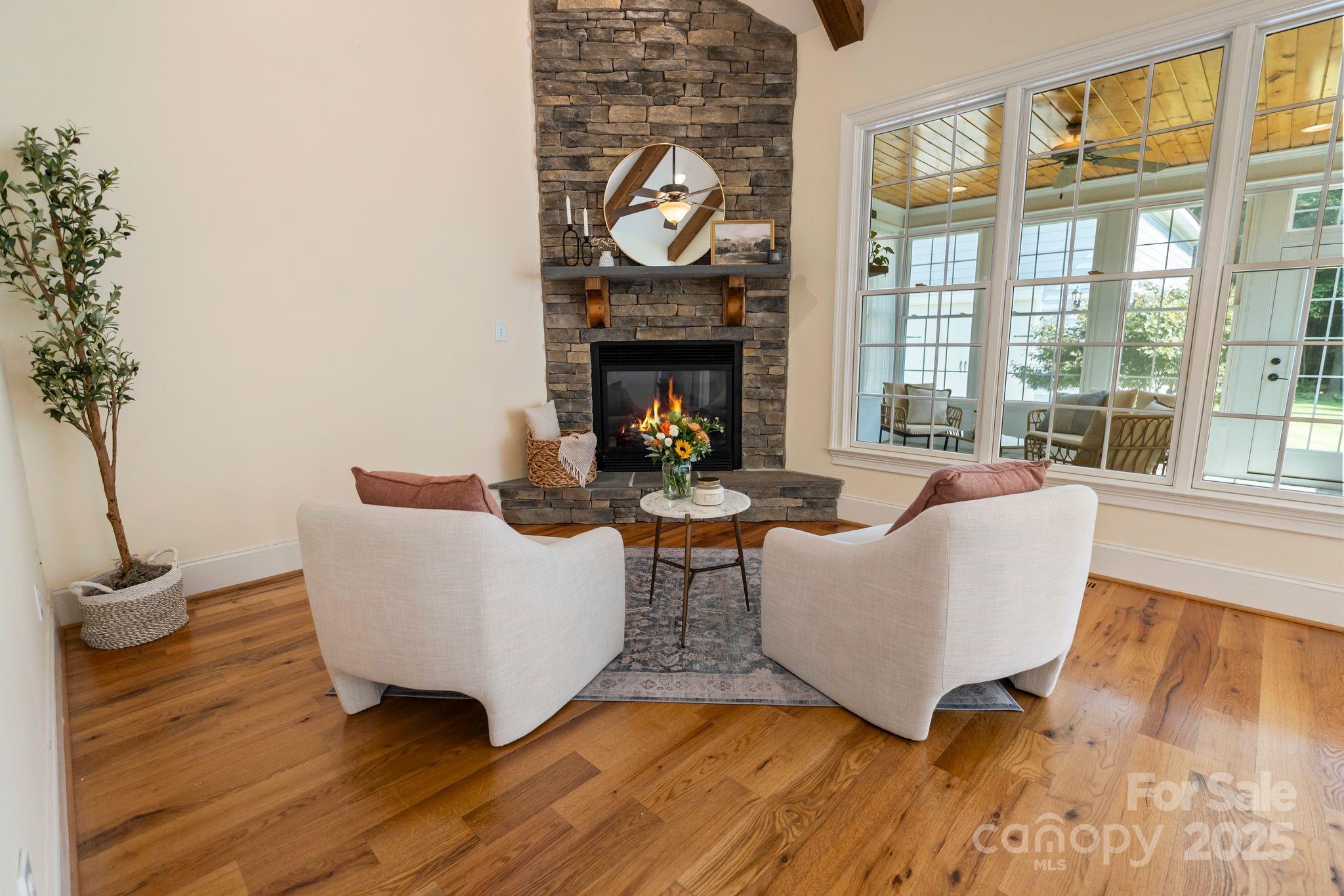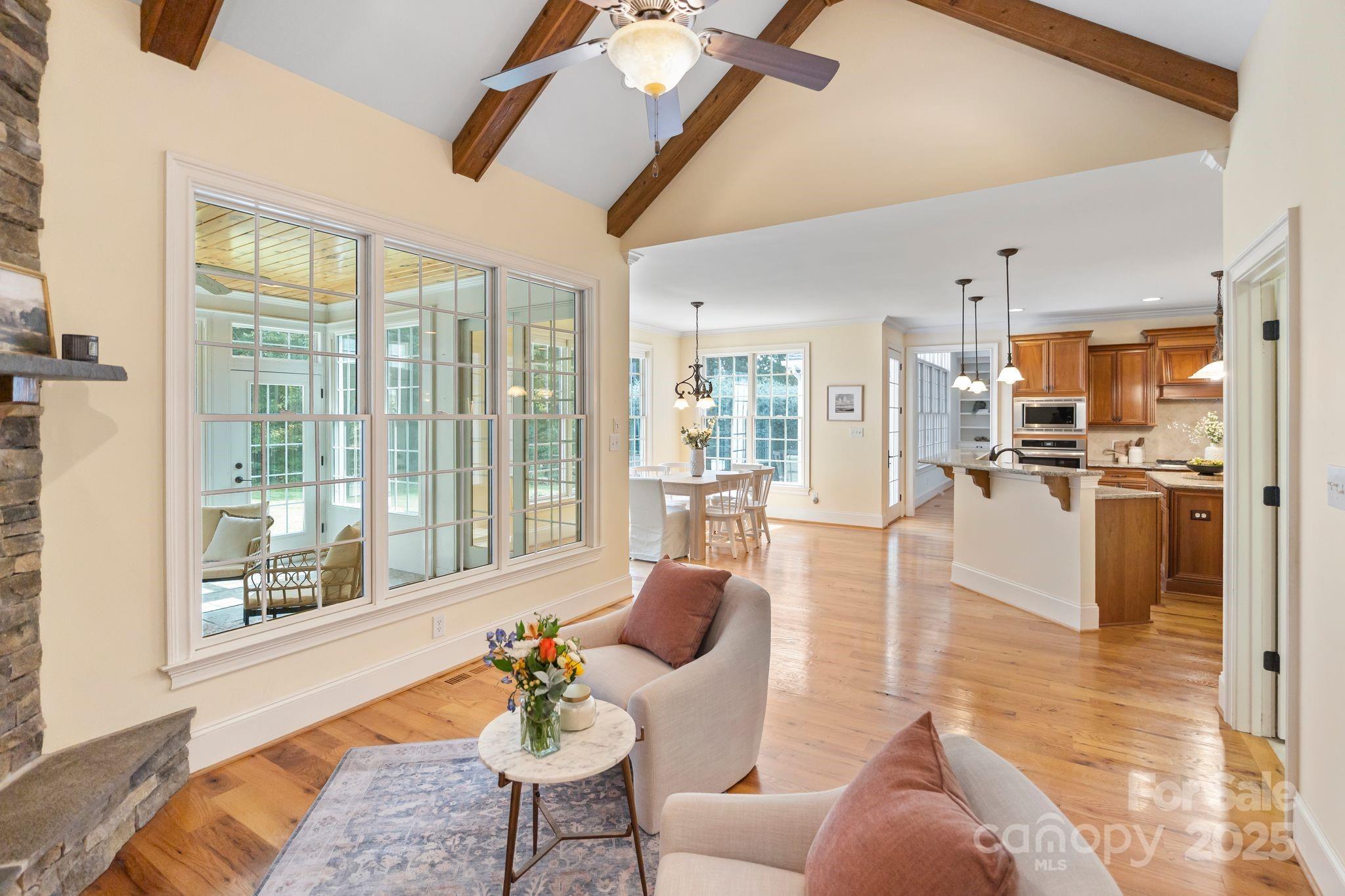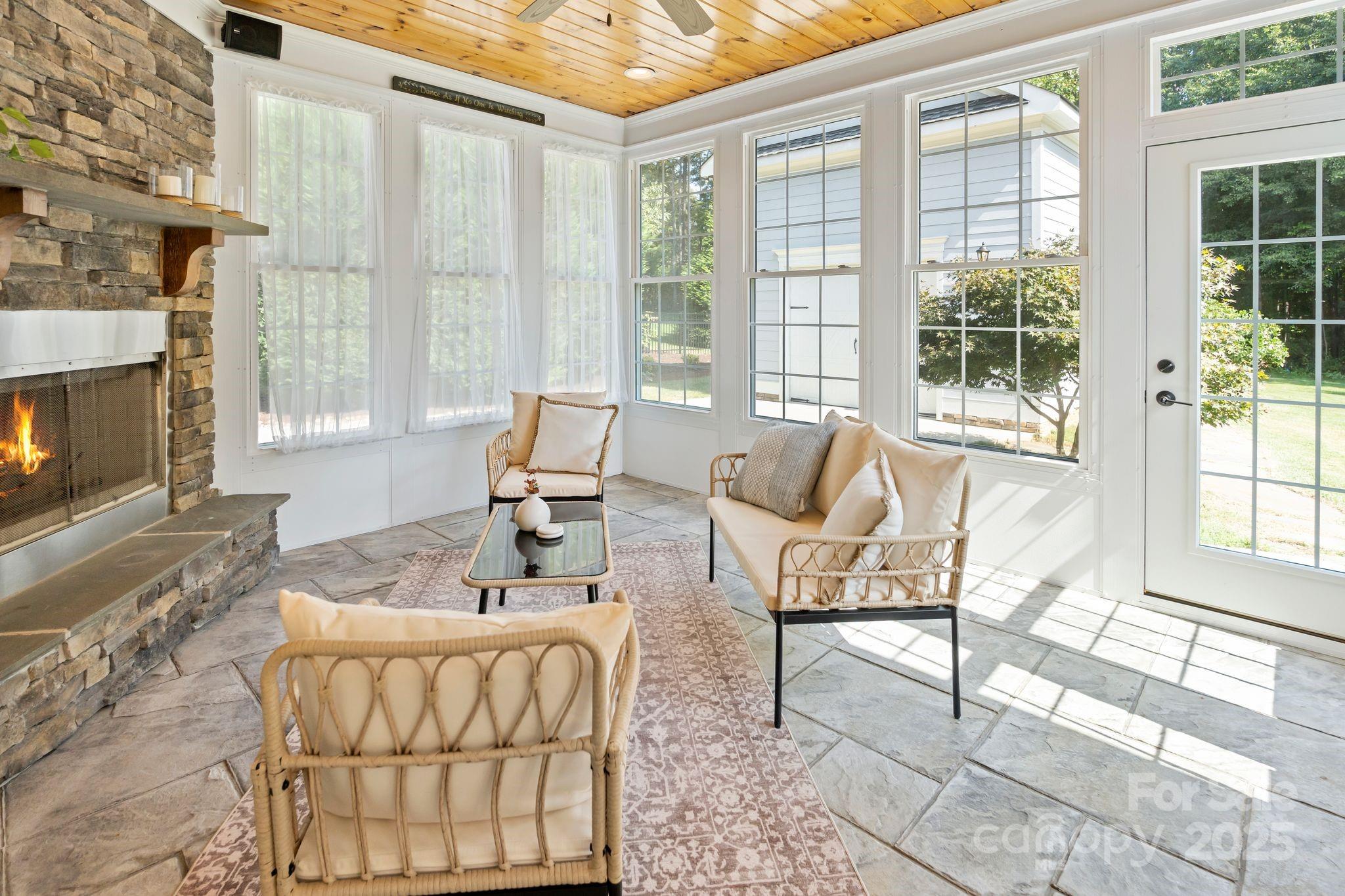 Discover a hidden gem in Mooresville’s quaint custom neighborhood of Bay Crossing! This impeccably maintained 4,145 sq ft home, lovingly cared for by the original owners, offers 4 bedrooms, 3 full baths, 2 half baths, with the primary suite and laundry on the main level. Step inside to the distressed pine wood floors throughout the main level, formal study with glass French doors, spacious dining room including a butler pantry as you enter the expansive kitchen which includes walk-in pantry, stainless steel appliances, nook area and vaulted keeping room warmed by gas log fireplace. The best part is a 2023 sunroom addition with a wood-burning fireplace with gas starter—perfect for year-round relaxation or entertaining. Upstairs, you’ll find 3 bedrooms, plus 2 spacious bonus rooms with attic storage. Enjoy an attached oversized 3-car attached garage, which is complemented by an expansive carriage house designed by Pippin Home Designs (2015). Ideal for boat or jet ski storage, woodworking, or a bonus garage, it also provides a second-level loft with abundant storage. This home is equipped with modern comforts including newer HVAC, hot water heater, a whole-house water filtration system, indoor/outdoor speakers, and an electric car charger. The flat, rectangular lot features a backyard with a cleared wooded area, outbuildings that match the house architecture, and plenty of space to enjoy outdoor living. A vapor barrier in the crawlspace adds peace of mind. Located near top-rated schools and just minutes from Stumpy Creek boat launch for easy Lake Norman access, this property offers a rare blend of convenience, character, and timeless design.