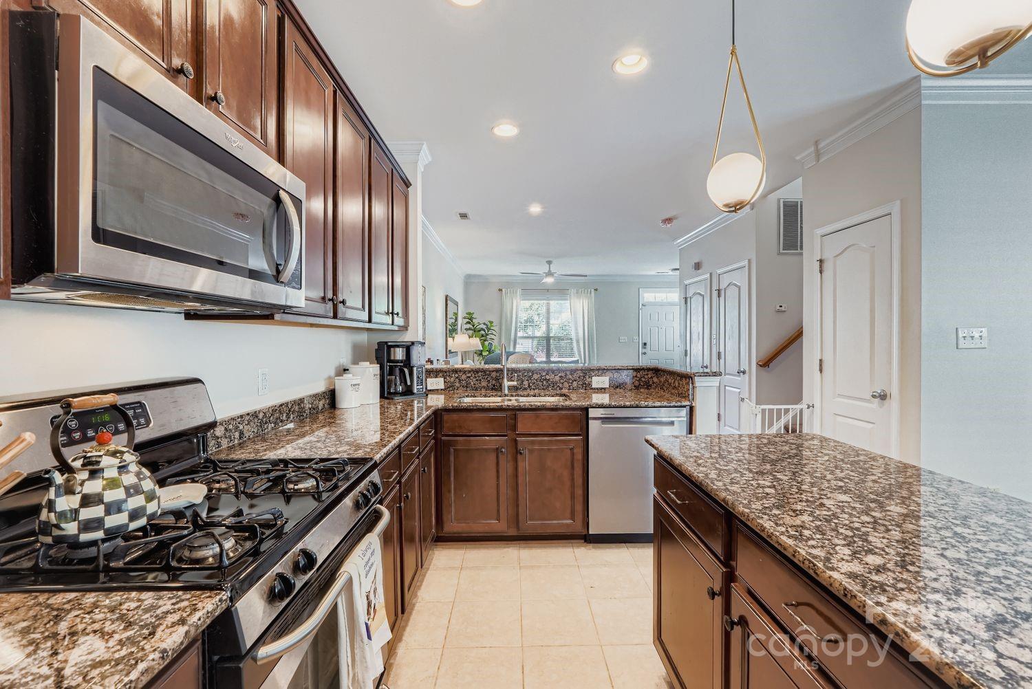 Outstanding end-unit townhome in an unbeatable location! This exceptionally clean and well-maintained home features hardwood flooring throughout the main level, ceramic tile in the kitchen and baths, and a beautifully updated kitchen with granite countertops, stainless steel appliances, and a spacious center island. Renovated private patio overlooking a wooded area is perfect for relaxing or entertaining. Two large bedrooms upstairs both with en-suite baths and walk-in closets. Walkable to restaurants and shops. Convenient, vibrant location close to everything Uptown Charlotte has to offer!