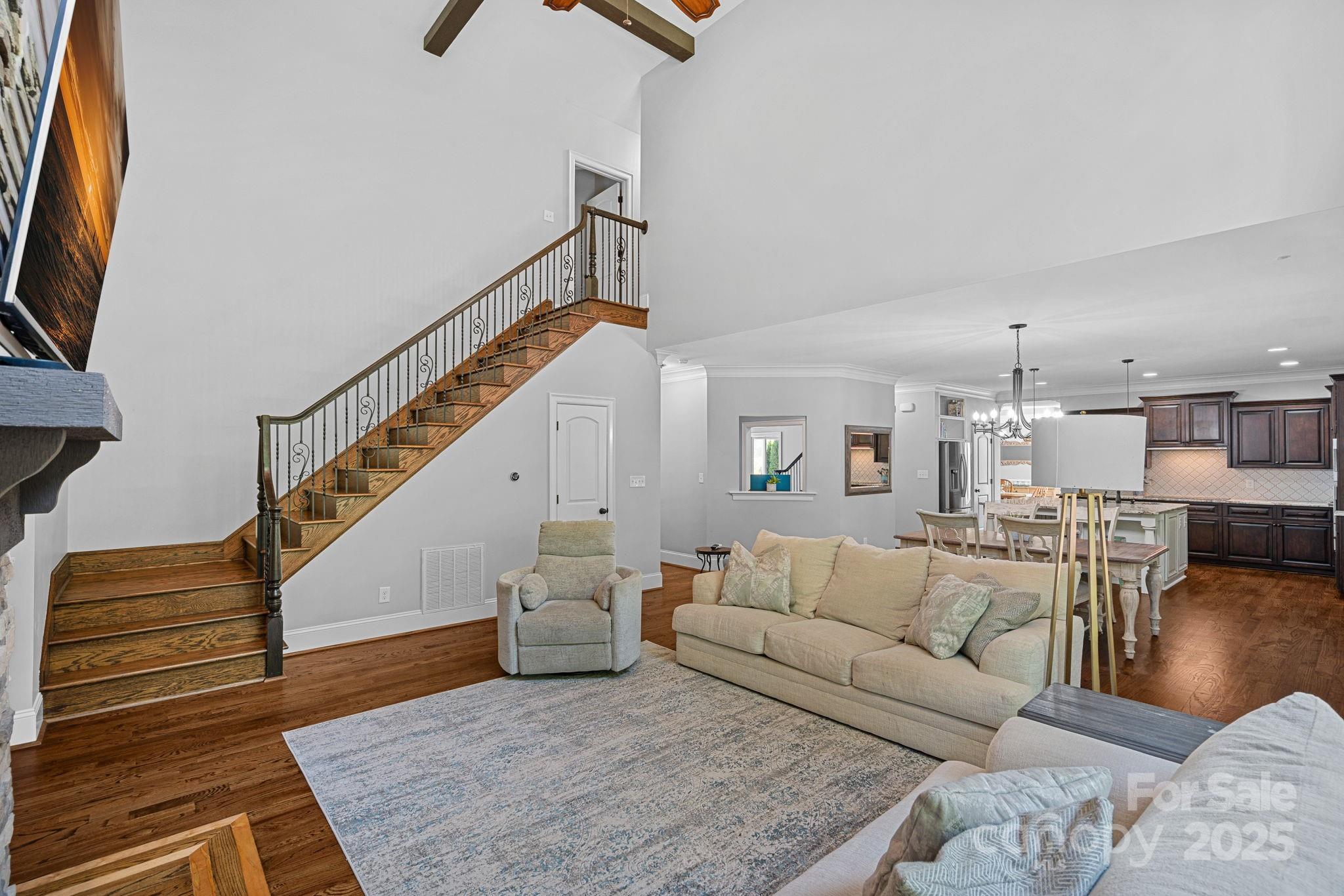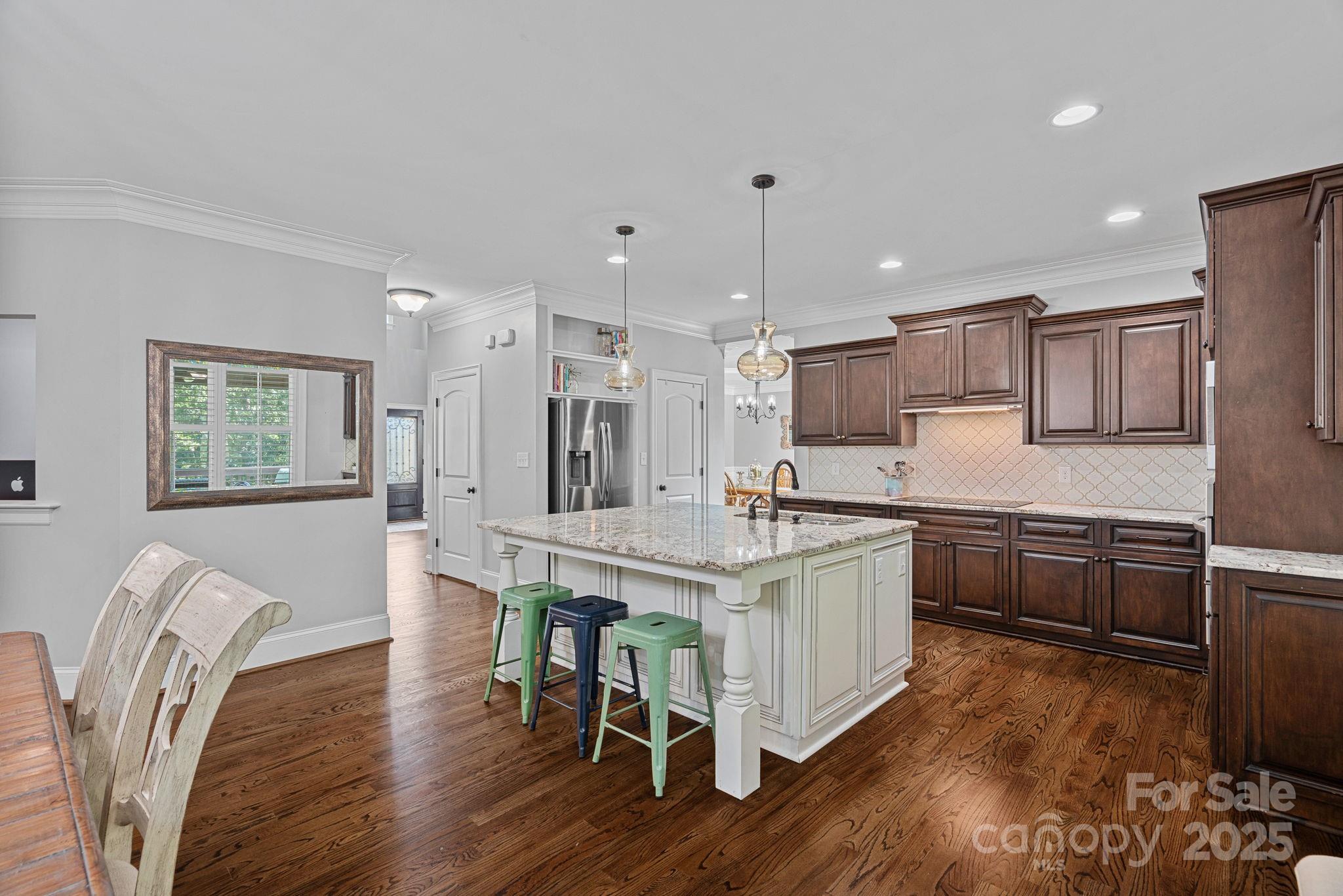 Tucked away on a quiet cul-de-sac street in Denver’s sought-after golf course community, Verdict Ridge, this home is perfectly set on a peaceful, wooded lot that feels private and spacious, yet just minutes from Lake Norman, shopping, dining, and easy routes into Charlotte. The main level welcomes you with hardwood floors, formal living and dining, study, office suite, and an open kitchen featuring stainless steel appliances, granite counters, and an expansive island; flowing into the breakfast nook and family room. The two-story family room includes a coffered wood-beam ceiling and a soaring stone fireplace, creating a cozy, yet grand space to gather. Upstairs, the primary suite is truly a retreat, featuring a tray ceiling with elegant moldings and, an abundance of glass for natural light. Dual closets offer plenty of storage, while the spa-inspired bath includes a jetted tub, separate shower, and dual vanities. The two additional bedrooms are joined by a convenient Jack and-Jill bath. The full, finished walk-out basement adds an entirely new level of living with its own private bedroom, full bath, kitchenette, media room, fitness space, and a generous entertainment area; perfect for guests, extended family, or multi-generational living. Outdoor living is just as inviting, with a screened porch and an expansive deck overlooking the tree-lined backyard; ideal for peaceful mornings, entertaining, or simply unwinding at the end of the day. Life in Verdict Ridge goes beyond the walls of your home, with amenities through an optional membership, including championship golf, tennis and pickleball, a resort-style pool, fitness center, and both casual and fine dining!