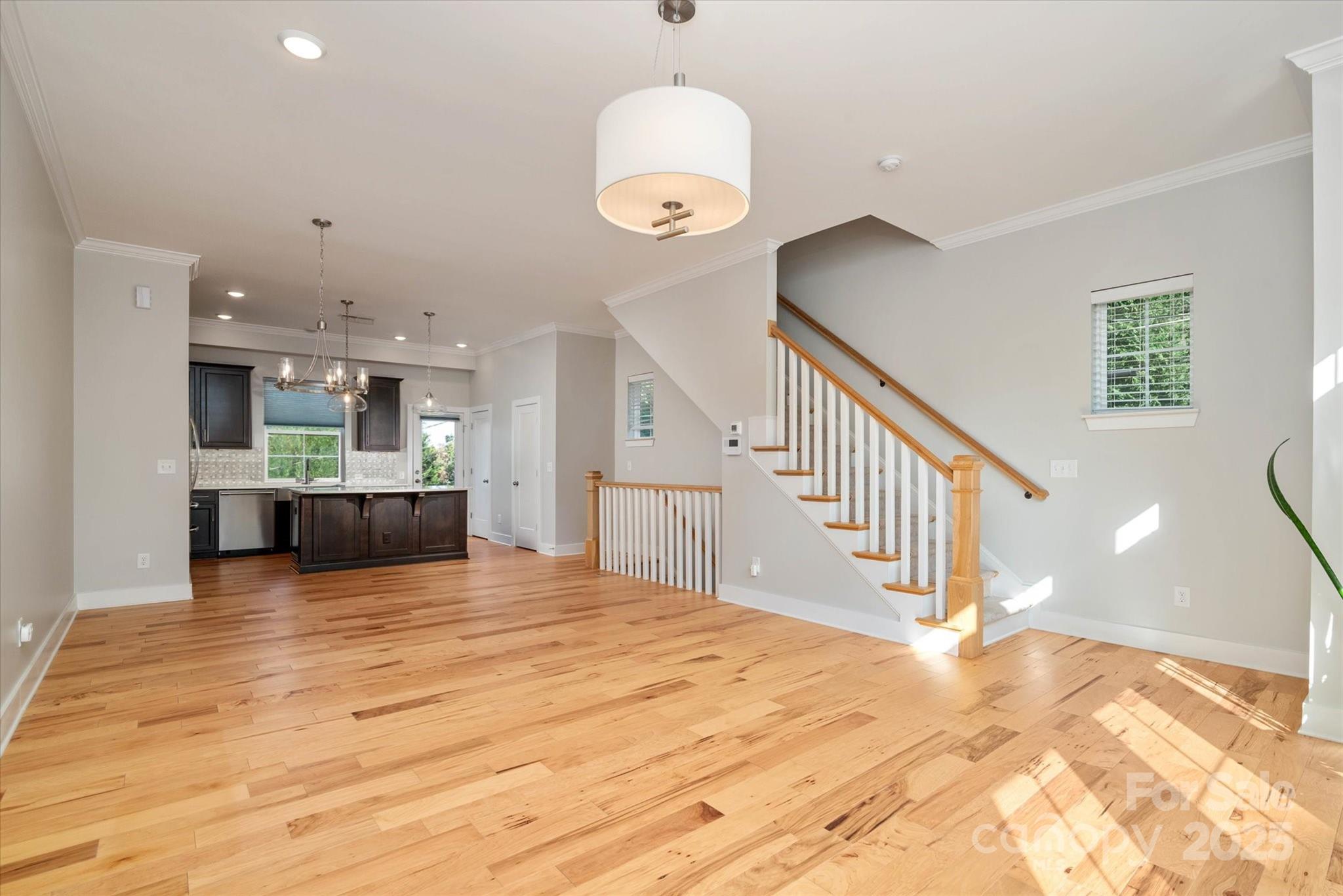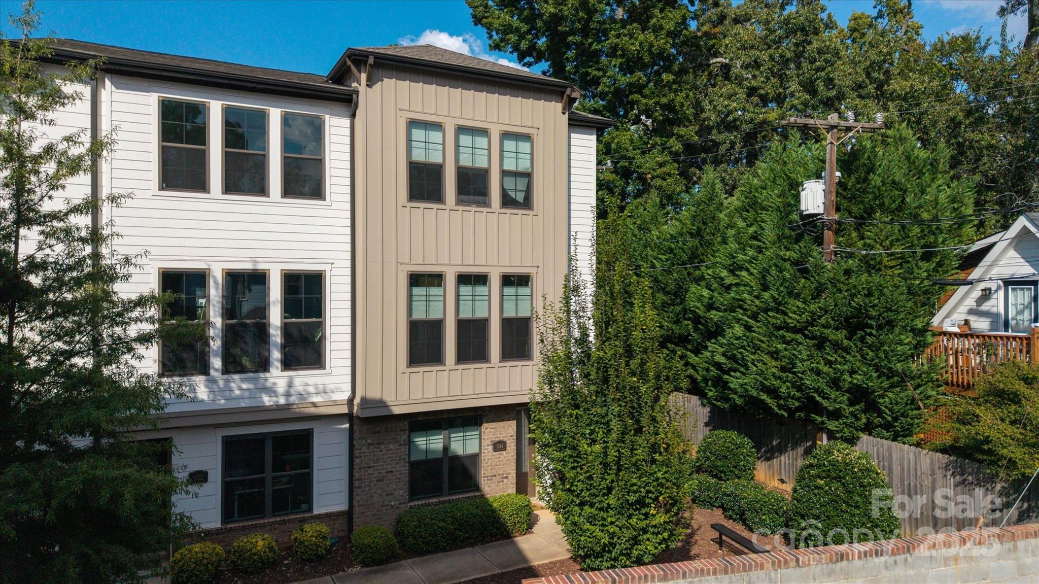 Welcome to 1624 Nandina Corners Alley, a modern end-unit townhome in the heart of Charlotte’s Plaza Midwood. Built in 2019 and offering just under 1,700 square feet, this home blends stylish finishes with an unbeatable location just steps from Central Avenue, Supperland, Harris Teeter, and a wide variety of local coffee shops, restaurants, and nightlife. The main level features an open layout with hardwood floors, tall ceilings, and large windows that fill the space with natural light. The kitchen is designed for everyday living and entertaining with a gas range, stainless steel appliances, dark cabinetry, a spacious island, quartz countertops, a tile backsplash, and direct access to a private balcony. The dining and living areas flow seamlessly, creating a comfortable space for gathering. Upstairs, you will find two well-appointed bedrooms, including a primary suite with a walk-in closet and private bath. A secondary bedroom offers generous closet space and access to a full bath. On the entry level, the third bedroom was converted to a flexible room with elegant glass doors and works perfectly as a home office, guest room, or media space. Additional features include a two-car attached rear-entry garage, a half bath on the main living floor, and the ease of low-maintenance living. The HOA covers exterior upkeep, lawn care, and common area maintenance. Set in one of Charlotte’s most walkable neighborhoods, this home delivers a rare combination of location, lifestyle, and convenience.