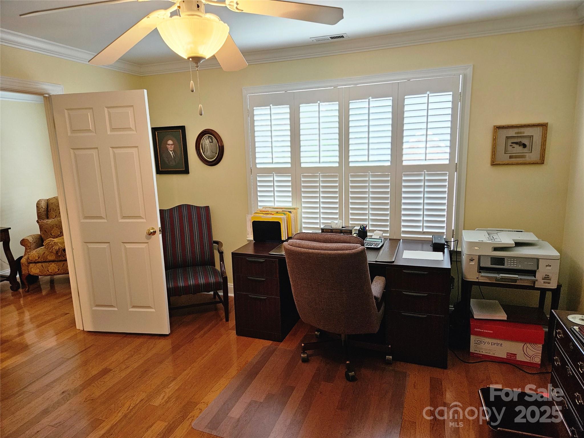 This lovely home in Warrington Place shows like a model home. Hardwood floors, plantation shutters, a designer kitchen and so much more. The sunroom is enclosed with it's own HVAC system so you can enjoy year round. Large primary bedroom on the first floor, secondary bedrooms upstairs. This gated community is private with easy access to shopping, restaurants and I-77.