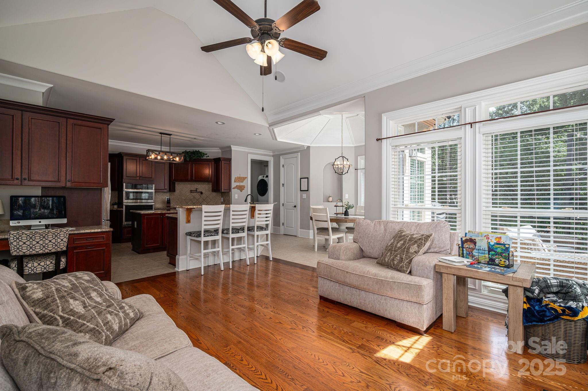 Discover Troutman - just outside of Mooresville - and this fabulous home - nestled on 1.35 landscaped acres. Be amazed by its quality - from the soaring entrance & breathtaking hardwood floors to the spectacular natural views through its floor to ceiling windows. The dining room boasts of a coffered ceiling, & the 2-story great room welcomes you with a cozy fireplace. The kitchen is spacious - with a breakfast bar, island, pantry, computer niche, & eat-in breakfast area accented by a lovely octagonal bead board ceiling. Picture yourself sipping a hot beverage by the fireplace in your vaulted ceiling keeping room - just off the kitchen. Step outside to the raised patio & enjoy the privacy & natural beauty of your backyard. The primary suite, on the main level, has a designer tray ceiling, floor to ceiling windows, separate closets, a soaking tub, shower, & double vanities. Climb the beautiful staircase upstairs to the bonus, 2 bedrooms sharing a Jack & Jill bathroom, a 3rd bedroom with en-suite bath, & a separate conditioned storage area. Also noteworthy is its 3-car garage, encapsulated crawlspace with de-humidifier, Culligan Water Softener System & custom 10x12 shed. Schedule an appointment today!