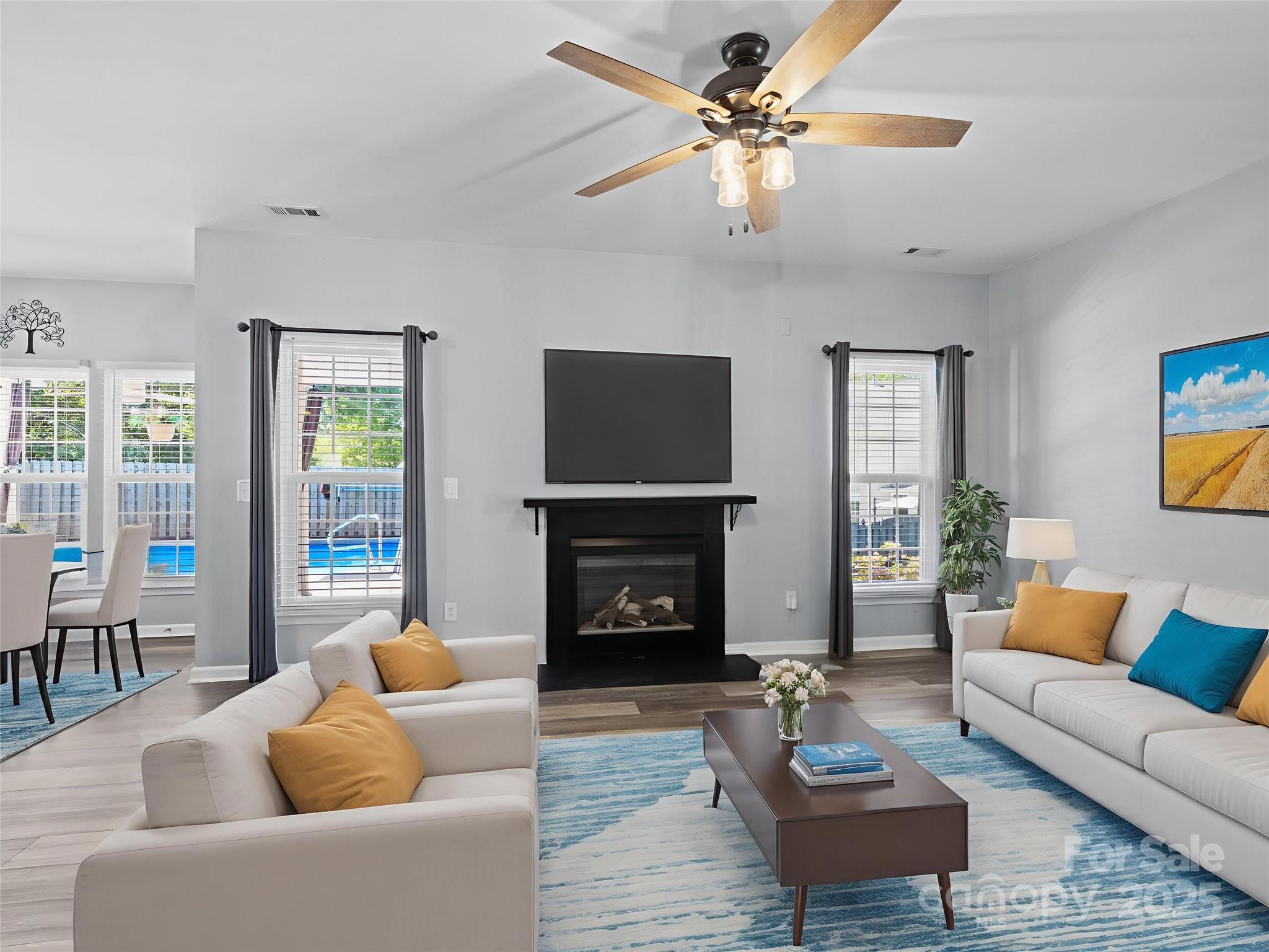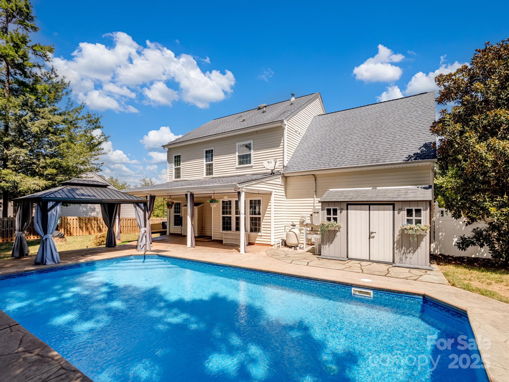 Beautiful Corner Lot Home and Outdoor Oasis, complete w/a privacy fence. Resort-style living w/a stunning 16x32 saltwater inground pool, large stamped concrete patio—perfect for relaxing or entertaining. Stay worry-free w/a Generac 22kW natural gas whole-house generator featuring automatic start. Enjoy evenings under the 24' covered porch w/dual outdoor lights and ceiling fans or gather around the covered fire pit. New 8x15 shed set on a charming flagstone patio. Interior modern updates throughout: LVP flooring on the main lvl. Kitchen featuring upgraded cabinet doors, granite countertops, and a new sink and faucet Remodeled bathrooms w/contemporary finishes. Newer windows and stylish light fixtures throughout This home is designed for efficiency w/a Trane 4-ton dual-zone AC system, attic fan, and more. The garage is a true bonus space—fully insulated and finished. Newer garage door and opener Portable 14,000 BTU AC unit Gladiator cabinets and workbenches for optimal organization.