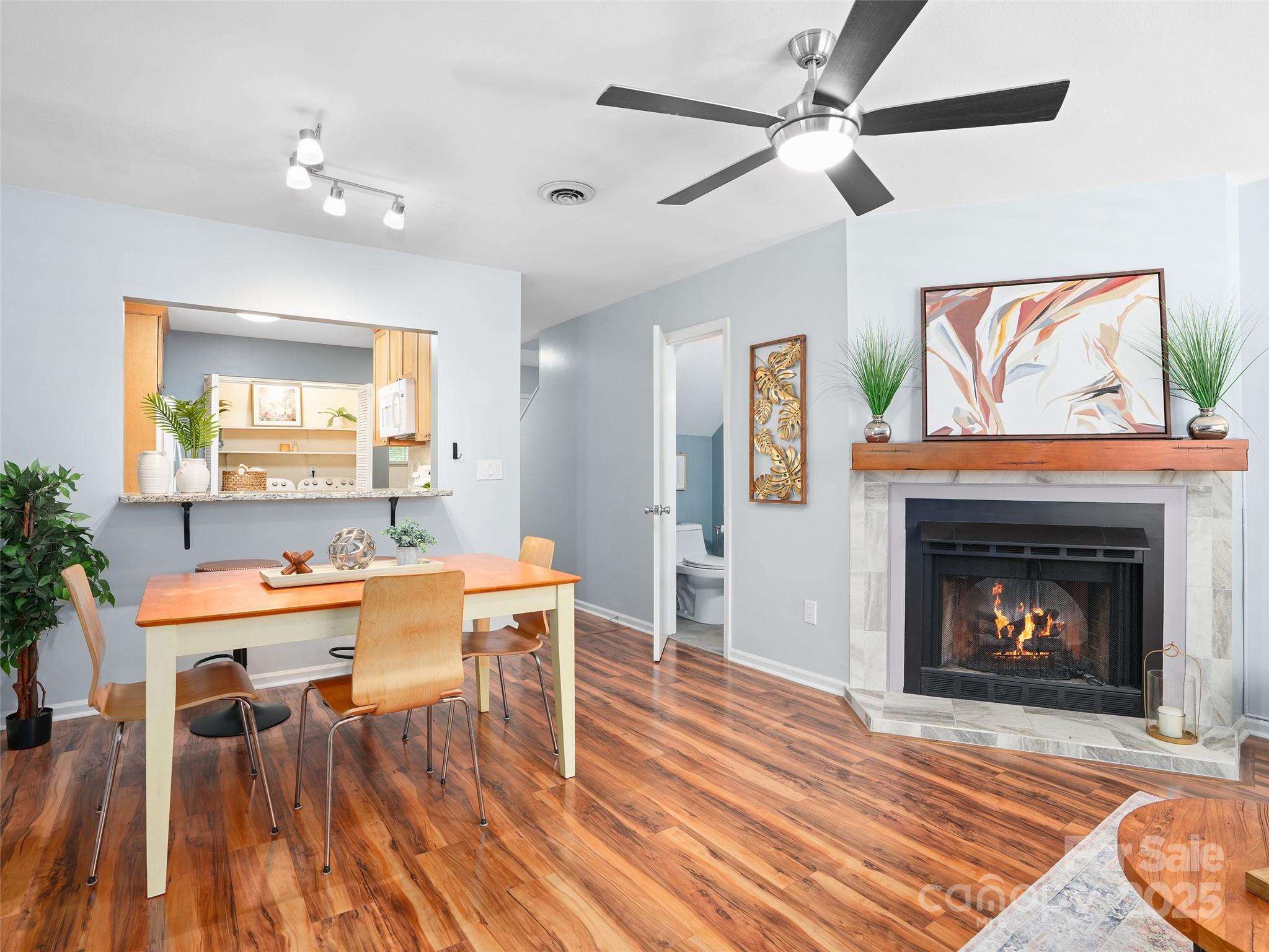 Nestled in a private wooded setting in a small, established community, this neat as a pin townhome is minutes to the Blue Ridge Parkway, all Tunnel Road/East Asheville amenities, and less than 10 minutes to Downtown Asheville. Enjoy winter mountain views from the covered front porch! The two-level home is light and bright with lots of updates, including kitchen and baths. Main level with open living/dining area with fireplace connects to the efficient kitchen with granite counters and laundry closet. A powder room completes the main level. Two generously sized bedrooms and full bath upstairs.
