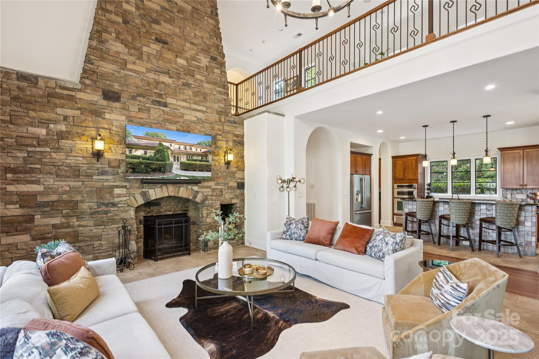 Experience the pinnacle of waterfront living with this extraordinary 4-acre estate boasting over 1,200 linear feet of pristine shoreline. Nestled atop a private ridge, this secluded sanctuary offers unmatched privacy, panoramic lake views, and resort-style amenities. Meander through the elevated garden, where a stone pathway leads to a serene fire pit encircled by 360-degree water vistas — the perfect haven for reflection and unforgettable entertaining. The meticulously landscaped grounds evoke a world-class retreat, featuring:- A luxury spa pool with integrated hot tub - A premium floating dock for water adventures - A secluded sandy beach area - A Japanese garden complete with cascading waterfall Inside, a stunning two-story stone fireplace anchors the sun-drenched great room, effortlessly connecting to a gourmet kitchen designed for gathering and culinary excellence. With five well appointed suites, the home is crafted to host moments both intimate and grand.
