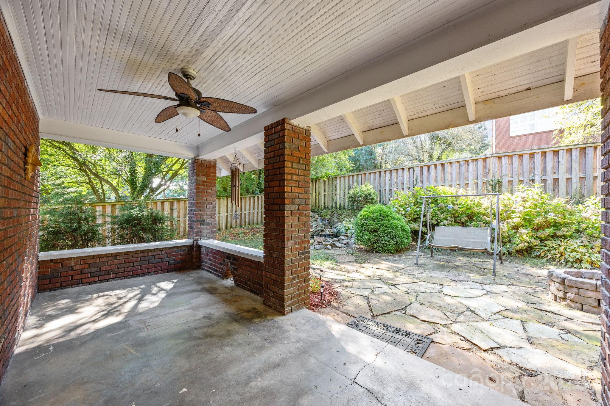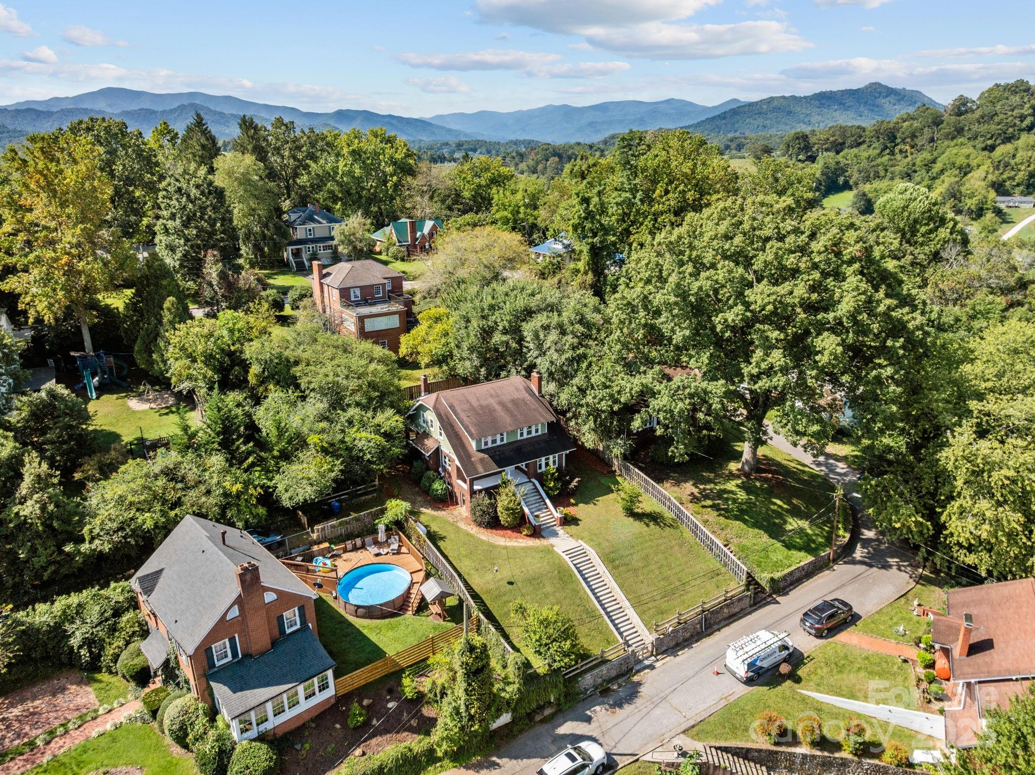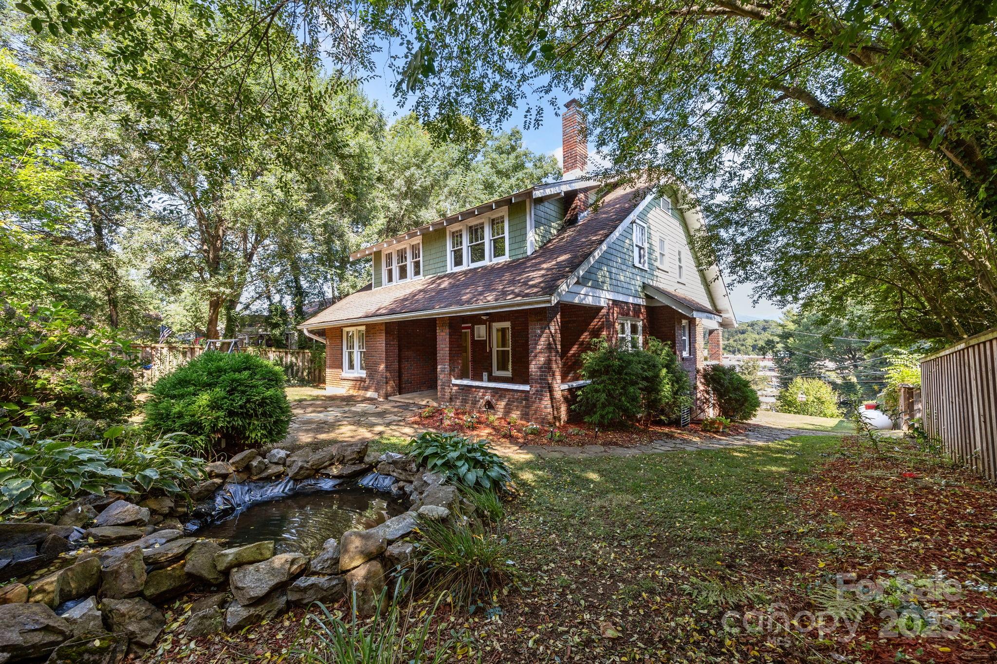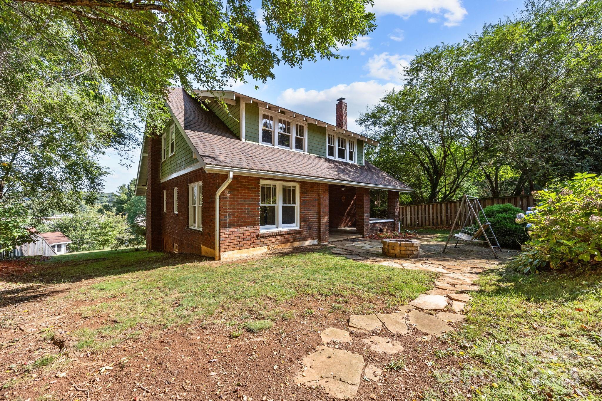 Location! Views! Charm! Welcome to this 1920 brick home brimming with character and modern comforts, ideally perched just one block up from Main Street in Canton. Set on a spacious .27-acre lot with additional driveway access, this beautifully maintained 4-bedroom, 2-bathroom home offers 2,150 square feet of inviting living space spread across two stories plus a basement. Step inside to a warm and welcoming living room with a wood-burning fireplace, perfect for cool mountain evenings. A cozy sunroom just off the living room captures lovely views and natural light, making it the perfect nook for reading, working, or morning coffee. The dining room and kitchen flow effortlessly for entertaining, and a main-level bedroom and full bath add versatility for guests or a home office. Upstairs, you'll find a surprisingly spacious primary bedroom with a walk-in closet, two additional bedrooms, and a dedicated laundry room with a storage closet. Original charm meets thoughtful updates with new windows (2022) that bathe the home in sunlight (with the exception of windows in 3 bedrooms not replaced), while vintage details like baseboards, lighting fixtures, and brickwork maintain the home's timeless character. Enjoy year-round mountain views from your covered front porch, or retreat to the covered back porch overlooking a fenced backyard complete with a firepit and tranquil water feature — perfect for entertaining or relaxing under the stars. The fully fenced yard offers peace of mind for pets. Nestled in a walkable neighborhood, you're just steps from Main Street's shops, restaurants, farmers market, seasonal parades, festivals, and the Pigeon River Scenic Walking Trail. Twenty minutes to Asheville. This is a rare opportunity to own a piece of Canton history with modern updates and unbeatable convenience. Homes like this don’t come around often — schedule your showing today before it’s gone!