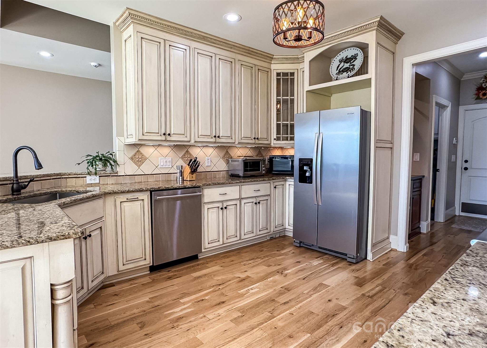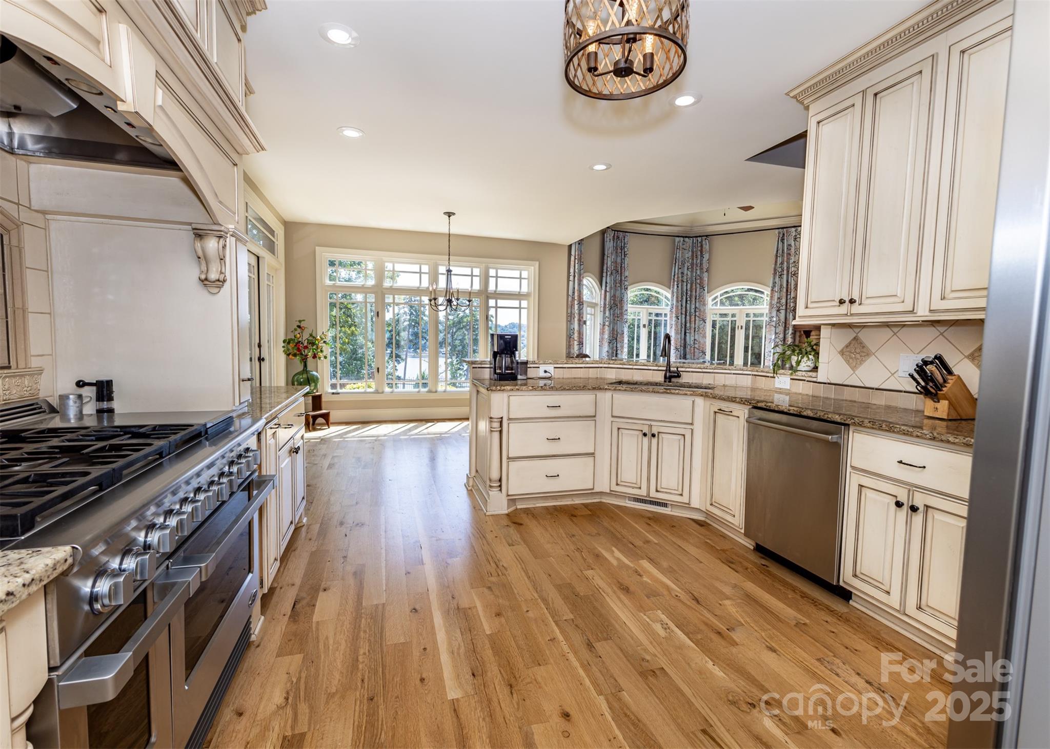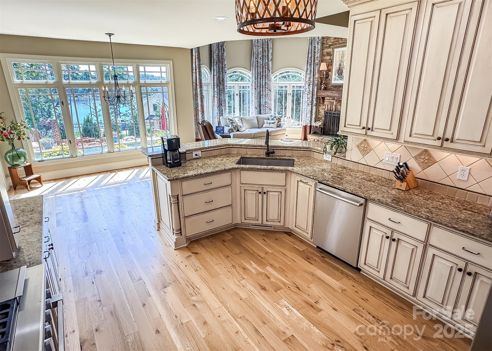 Welcome to living at its finest—where every detail has been designed for comfort, beauty, and time well spent with family and friends. Perfectly positioned with a view of Lake Hickory’s main channel, this home offers a lifestyle that blends everyday ease with resort-style relaxation, all within a sought-after golf course community. Inside, you’ll find 3 bedrooms, 3.5 baths, and inviting spaces that make you feel at home the moment you walk in. The living and dining rooms feature coffered ceilings, a cozy gas fireplace, and custom built-ins—all framing views of the lake. The gourmet kitchen is both stylish and functional, with custom cabinetry, granite countertops, and a professional-grade stove with 6 burners, 2 ovens, and griddle—ideal for everything from quick breakfasts to memorable gatherings. The primary suite is a peaceful retreat with tray ceilings, two walk-in closets, and a spa-inspired bath featuring marble tile, jetted tub, dual vanities, and a walk-in shower. On the main level you’ll also find a den (which could serve as a 4th bedroom with closet), a home office, and a second bedroom. Upstairs, an isolated third bedroom suite with full bath offers additional comfort. Step outside and enjoy your own private oasis. A heated saltwater infinity-edge gunite pool with waterfalls and hot tub overlooks the lake, while a charming brick cabana with stone fireplace invites you to gather, unwind, and take in the view. The home is positioned between two additional lots, creating a more secluded retreat where it’s easy to enjoy the soothing water views—rain or shine—and the everyday beauty of nature. Songbirds greet you in the mornings, cardinals and yellow finches play in the pool overflow, and deer, bunnies, and squirrels make frequent appearances. During the holidays, you’ll love watching the lighted boats parade across the water in celebration. Adding to the lifestyle is the separate carriage house/RV building. With its own drive, this 1,697 sq ft heated and cooled space features soaring 18’ ceilings, two levels, and a full bath. The carriage house offers endless possibilities—whether a game room, art studio, workshop, or hobby space. Outside, the deck with brick pillars and aluminum railing overlooks the lake, while a separate fire pit creates the perfect gathering spot. Just behind the building, a short trail leads down to a small beach and the lake, where summer days are filled with fun and relaxation. Life here goes beyond the home itself. As part of this vibrant golf course community, you’ll enjoy exclusive amenities including a members-only boat launch and landing with dock—making lake days simple and convenient. The clubhouse restaurant offers dining with friends and neighbors, adding to the sense of community and ease. And nearby, Wittenburg Access provides even more opportunities with its public boat launch, swim beach, and shaded hiking trails. From resort-style amenities to everyday comforts, this property is more than a home—it’s a lifestyle. Elegant interiors, peaceful natural surroundings, and a welcoming community make this the perfect place to enjoy life at Lake Hickory.