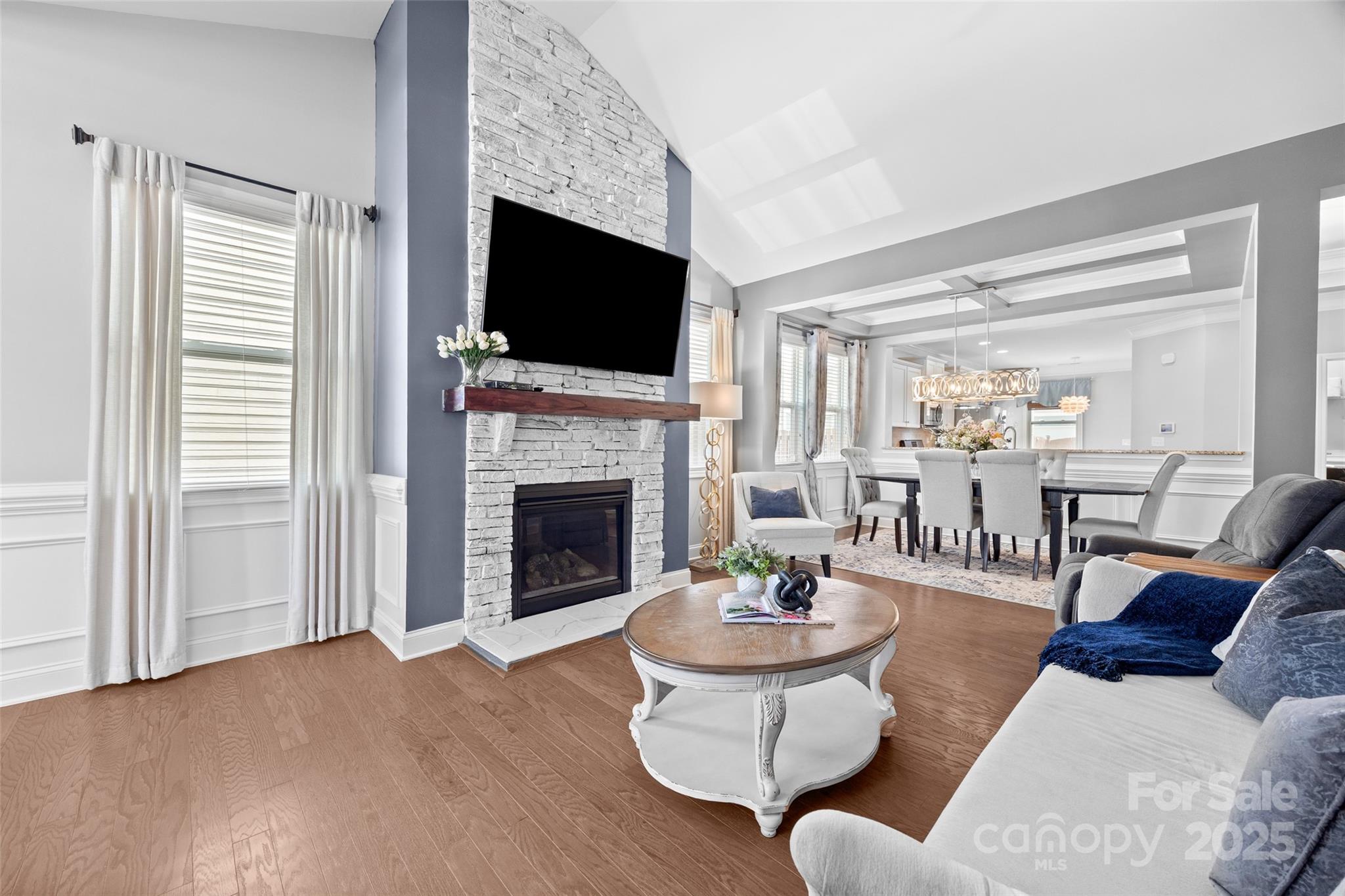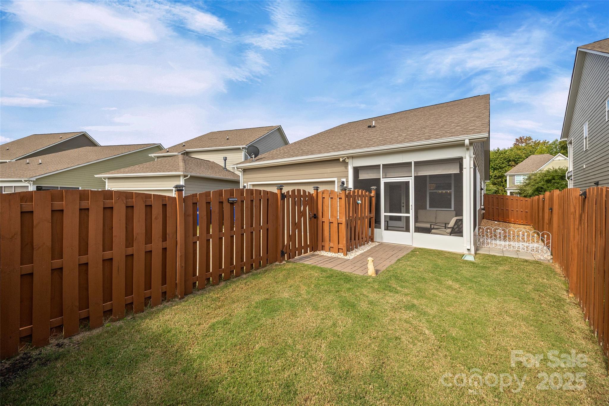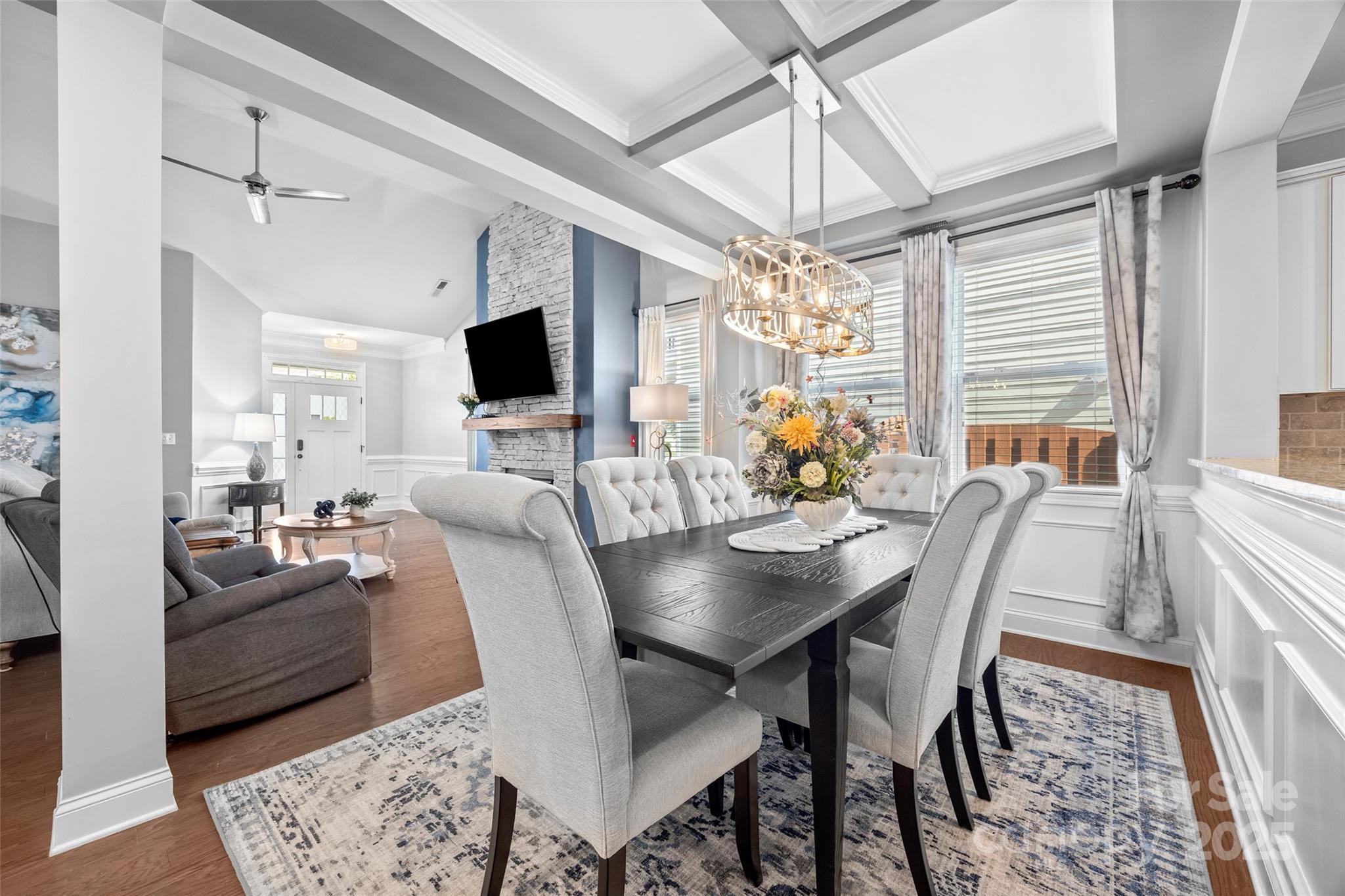 PRICE IMPROVEMENT - This picturesque, ranch home in the Arbormere community is sure to impress you with it's stunning designer details - a vaulted great room centered by a stacked stone gas fireplace, a coffered dining room ceiling, upgraded lighting, crown molding throughout, and custom closets and fans in all bedrooms! You are welcomed in from a rocking chair front porch onto hardwood floors that run throughout the common areas. The open floor plan provides tons of natural light and the the ideal layout for entertaining. The kitchen boasts gas cooking, stainless steel appliances, cabinet pull outs, double door pantry, granite counters, and more. The breakfast area looks into a serene screened porch with roller shades, and a fully fenced and private backyard (with hidden trash can area). The elegant primary suite has a tray ceiling, luxury carpet (in all 3 bedrooms), and a remodeled bathroom to include an extra large walk-in shower with tile detailing, double sinks, water closet, and a linen area. The 2 secondary bedrooms provide flexibility, and additional updated full bathroom has a granite counter. The 2 car garage includes details such as epoxy floors, finished walls, and extra storage space. And the home has a security system that features Ring doorbell, several cameras, and a smart thermostat and garage door opener. The Arbormere community amenities include an outdoor pool, playground, green spaces, and sidewalks, and is located just minutes from Lake Norman, shopping, the Novant hospital, and top rated dining - Welcome Home!