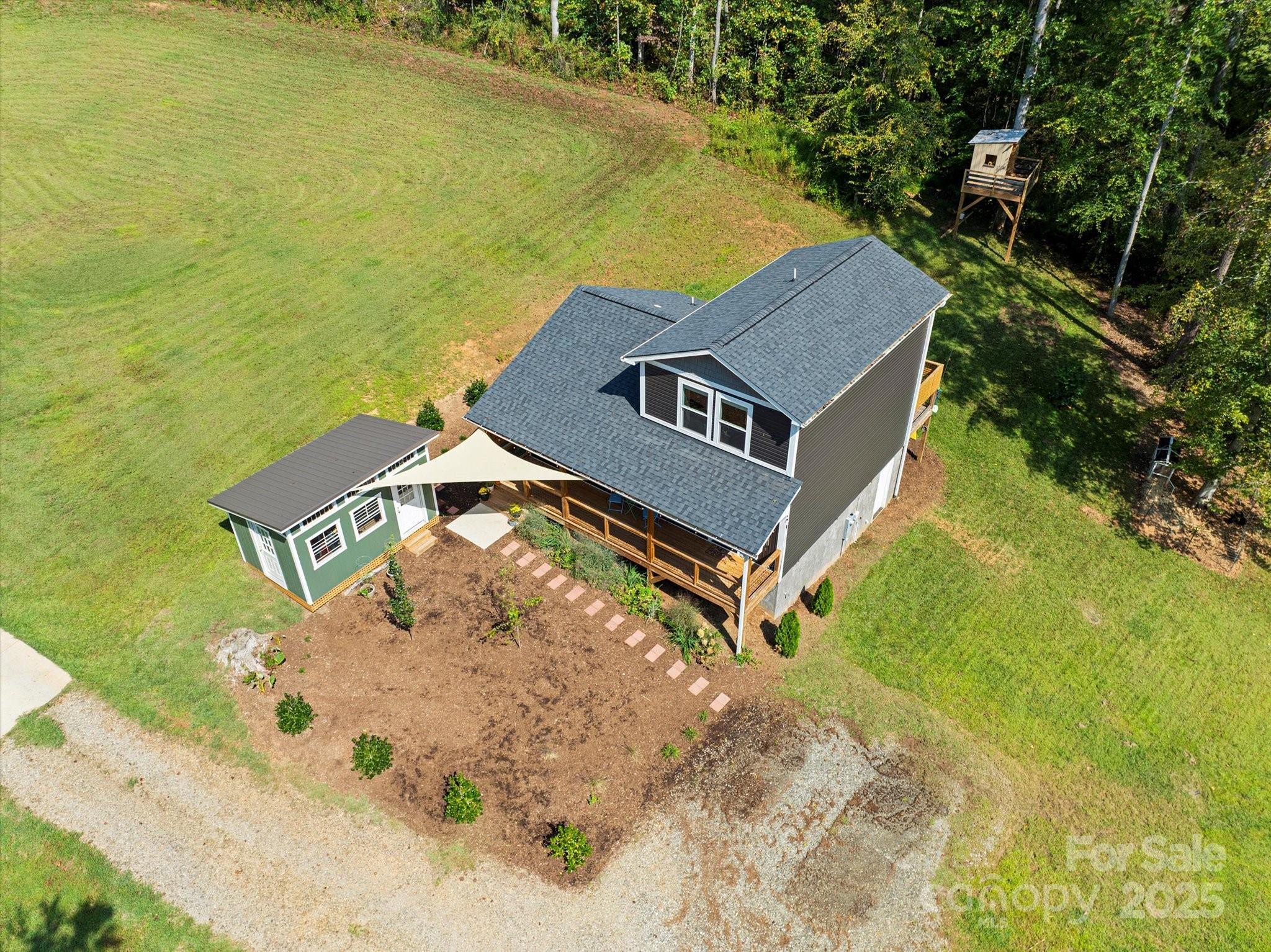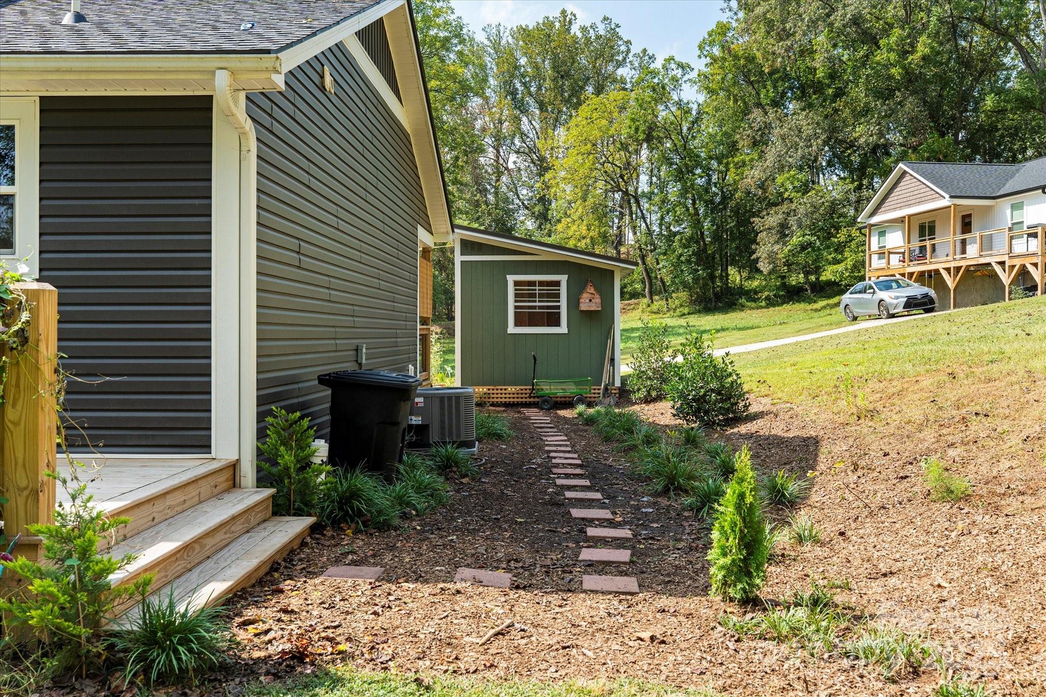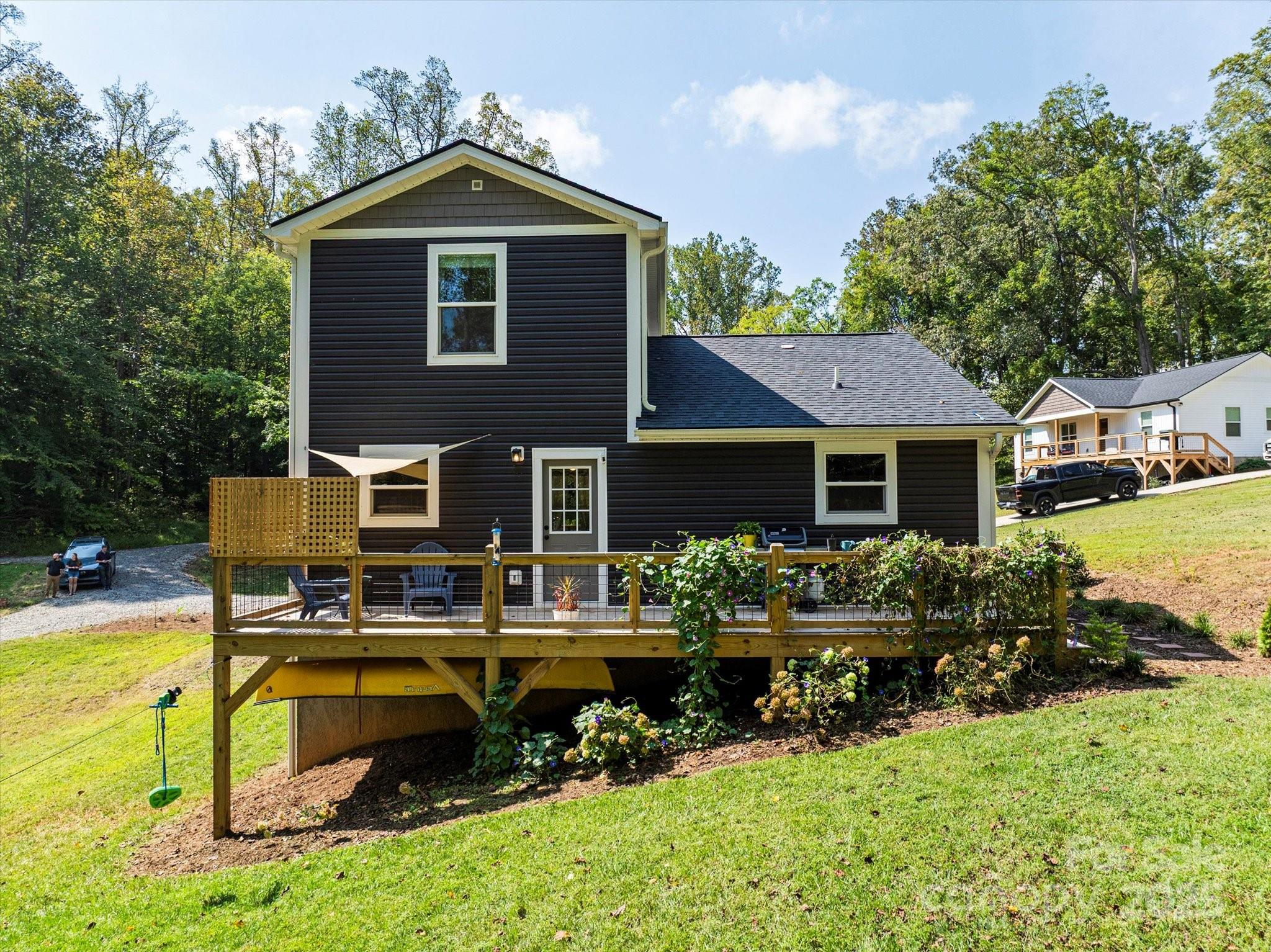 Discover this charming turnkey home in Alexander, a hidden gem just minutes from Asheville. Step into this beautifully updated 3-bedroom, 2-bath home in Alexander, where character and comfort come together seamlessly. From the moment you enter, you'll be captivated by the thoughtful details—like the antique wooden door that welcomes you into the spacious primary suite. Upstairs, you'll find two light-filled bedrooms flanking a pristine, modern bathroom. The open-concept living area is warm and inviting, anchored by a cozy brick gas log fireplace—ideal for relaxing evenings or entertaining friends. Outside, the property truly shines. Enjoy lush landscaping, cooling sunshades, a whimsical treehouse, and a versatile two-sided shed featuring a full workshop and abundant storage space. Whether you're sipping coffee on the porch or listening to birdsong and wind chimes, the outdoor spaces offer pure serenity. Dreaming of a sustainable lifestyle? This property includes three happy hens who provide fresh eggs daily. Plus, the fully encapsulated crawlspace with a dehumidifier ensures your home stays dry and protected year-round. All this tranquility is just minutes from convenience—only 16 minutes to downtown Asheville, 10 minutes to shopping and groceries, and located in the sought-after North Buncombe County school district. This move-in-ready home offers the perfect blend of mountain charm, modern updates, and peaceful living. Don’t miss your chance—schedule a showing today and fall in love with your new sanctuary! All this tranquility is just minutes from convenience—less than 20 minutes to downtown Asheville, 10 minutes to shopping and groceries, and located in the sought-after North Buncombe County school district. This move-in-ready home offers the perfect blend of rustic charm, modern updates, and peaceful living. Don’t miss your chance—schedule a showing today and fall in love with your new sanctuary.