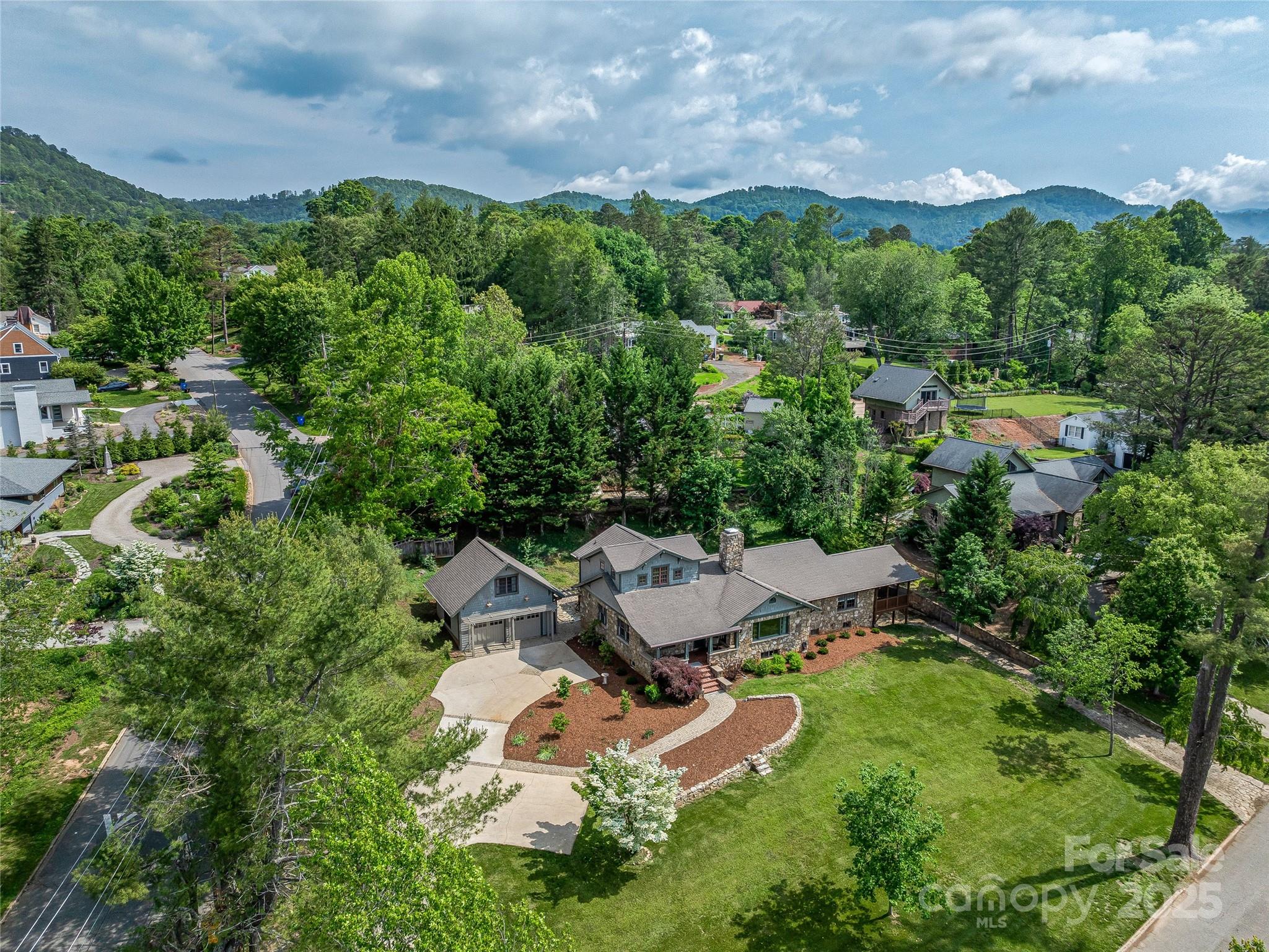 Welcome to 2 Fairway Rd, a sophisticated home located on the prestigious Asheville Country Club’s 4th tee box, and just steps from Beaver Lake trails and the serene bird sanctuary. This architecturally rich residence features keystone windows, an expansive corner lot with detached garage and studio, over 5,000sf of living space, and two driveways—ideal for boat or RV parking. Designed for effortless main-level living, the home includes a spacious primary suite with screened porch and ensuite bathroom. Modern upgrades like a ducted mini-split HVAC system and granite countertops provide an elevated living experience. A finished basement with outdoor access provides flexible space for guests, an apartment, workshop, or hobbies. Don't miss this rare offering that combines location, character, and luxury living in one of Asheville’s most coveted neighborhoods!
