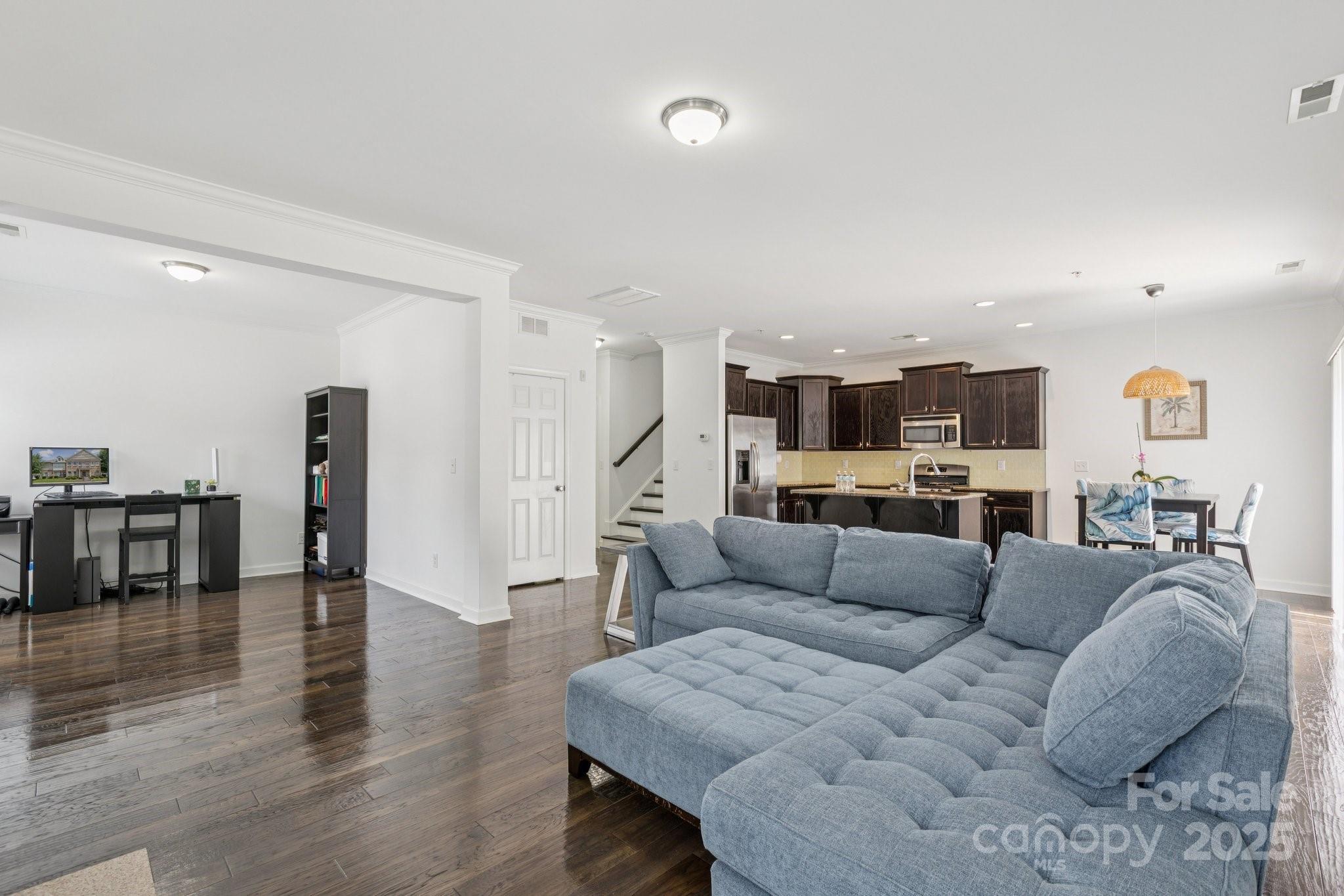 PRICE IMPROVEMENT! Welcome to your dream home in the heart of Charlotte’s desirable Ballantyne area! Nestled in a quiet neighborhood, this end unit well maintained home, built in 2014, is just minutes from top-rated schools, enjoy easy access to Ballantyne’s premier shopping, dining, and entertainment at nearby Blakeney and Ballantyne Village, as well as quick commutes to Uptown Charlotte via I-485. Main level boasts a bright living space, featuring gleaming hardwood floors, abundant natural light and a flex room for office or play room. The kitchen equipped with stainless steel appliances, granite countertops, a large center island. The primary suite is complete with a generous walk-in closet and a spa-inspired en-suite bathroom featuring dual vanities, a soaking tub, and a separate glass-enclosed shower. Two additional bedrooms provide plenty of space for a growing family, home office or guest accommodations. HOA includes pool, water/sewer, lawn care, trash, road maintenance.