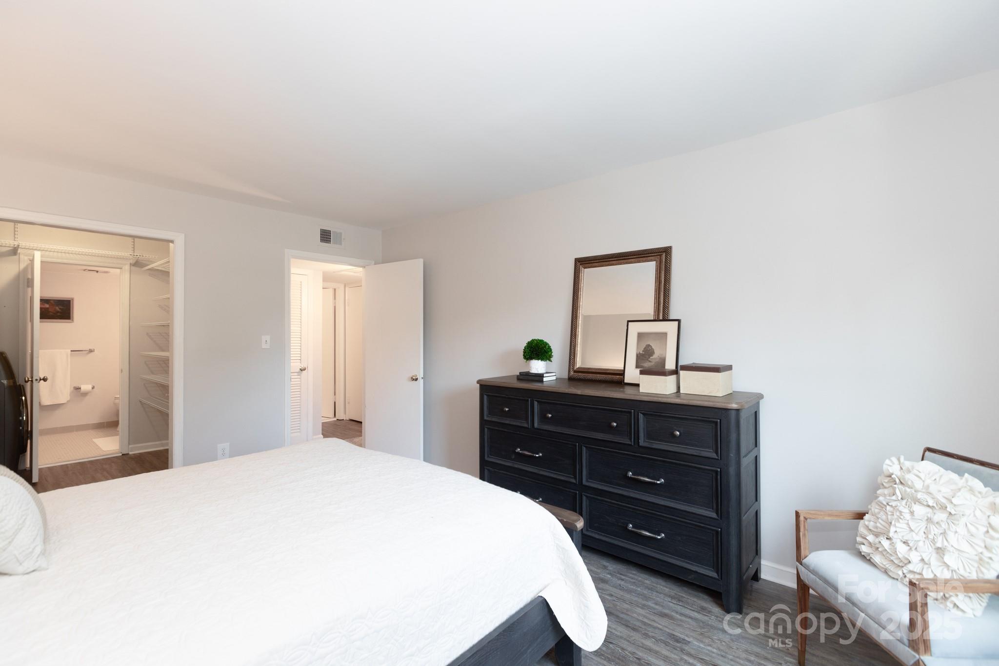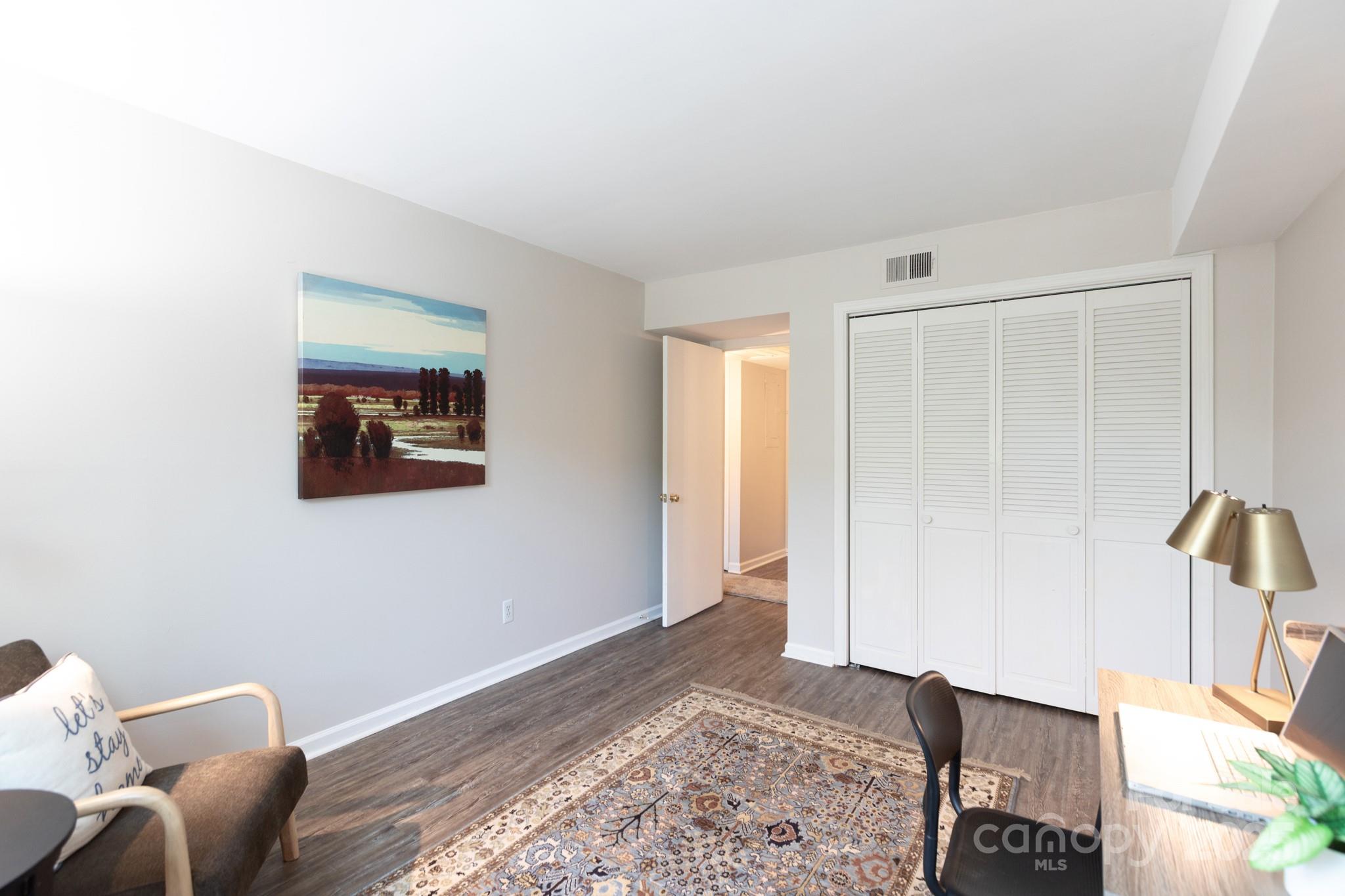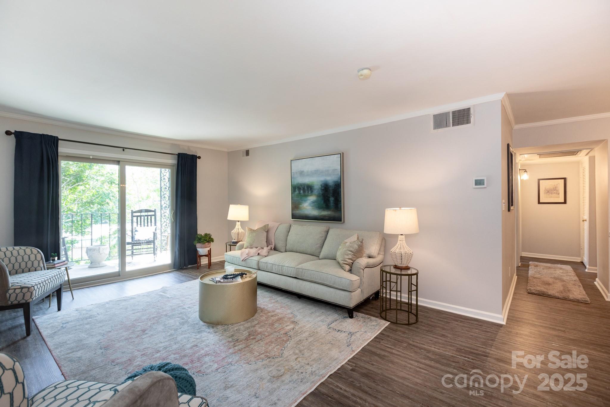 Unbeatable location in this top-floor, 2 bedroom, 2 bath near Park Road Shopping Center. Franciscan Terrace offers convenient condo living, with a community pool and direct entrance to the Little Sugar Creek Greenway. This top floor unit has LVP flooring & tile throughout (no carpet). There's a beautifully remodeled kitchen with soft-close cabinetry, granite countertops and tile backsplash. It opens to the spacious dining room, and the living room with sliding doors to a covered balcony. There are two bedrooms and two baths, including the primary suite with walk-in closet and laundry, and private bath. So many big things have been done here, including a new roof in June of this year, and new heat & air in May of 2024. Currently zoned to Selwyn Elementary, Alexander Graham Middle School and Myers Park High School. Welcome home!