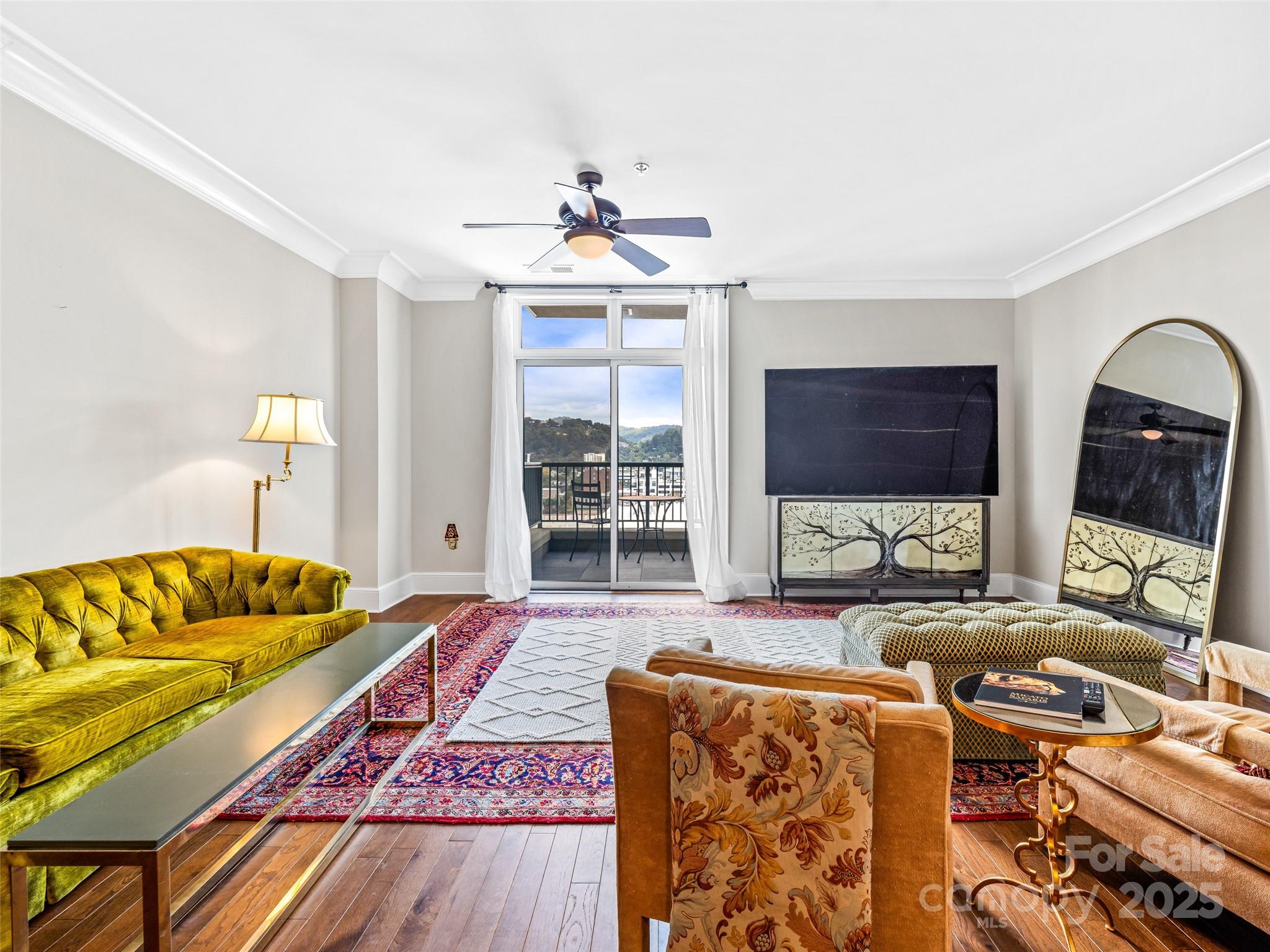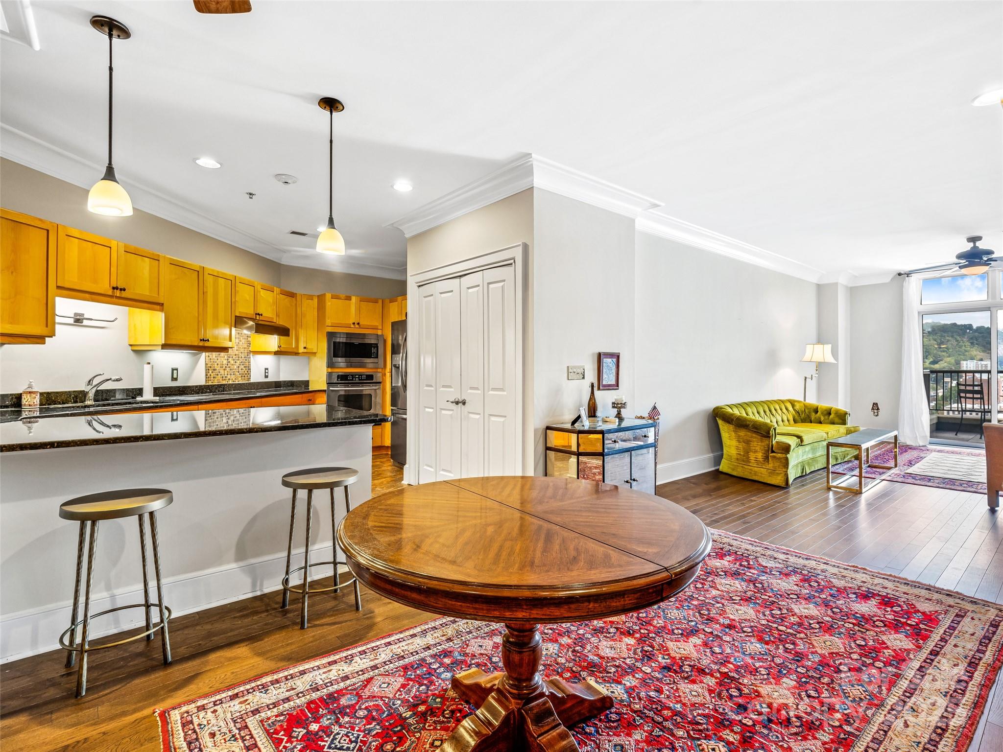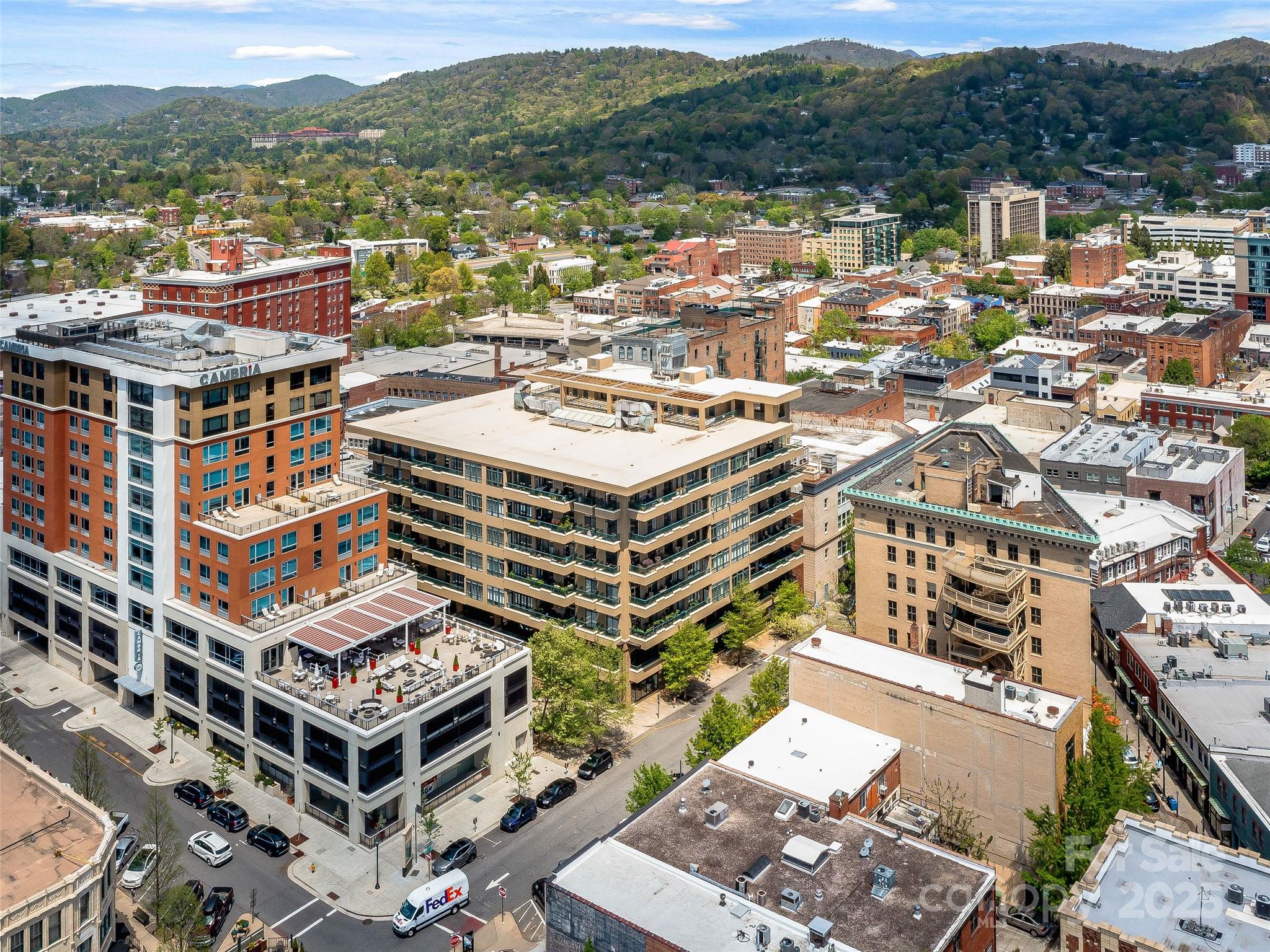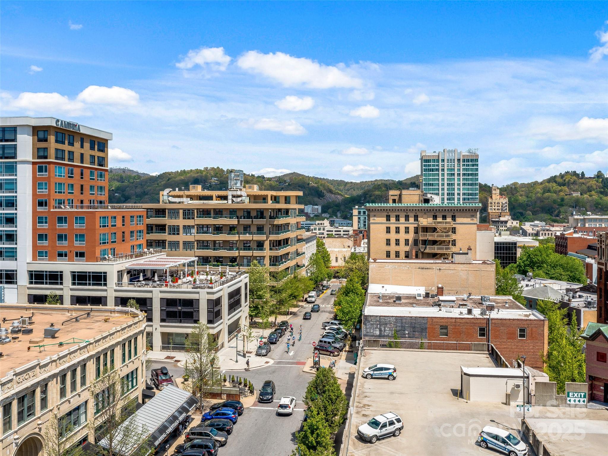 21 Battery Park is one of Asheville’s most premier condominiums, situated in the heart of downtown. Step outside your front door and immerse yourself with world-class dining, live music, boutique shopping, and vibrant nightlife. This large spacious one-bedroom residence is filled with natural light and offers an open, inviting floor plan. Primary bedroom flows to secondary space with access to the balcony, can remain a cozy guest room, or reimagined as a nursery, craft room or sun filled home office. Tiled shower, double sinks in bath. Large customized walk-in closet. A private balcony provides stunning views of downtown Asheville, the Grove Park Inn, and surrounding mountains making it the perfect spot for morning coffee watching the sunrises. Residents enjoy exclusive access to the rooftop terrace, complete with a fitness area, club room, and ample entertaining space. Additional features include a separately deeded, climate-controlled storage unit on 2nd floor and secure covered parking for ultimate convenience.