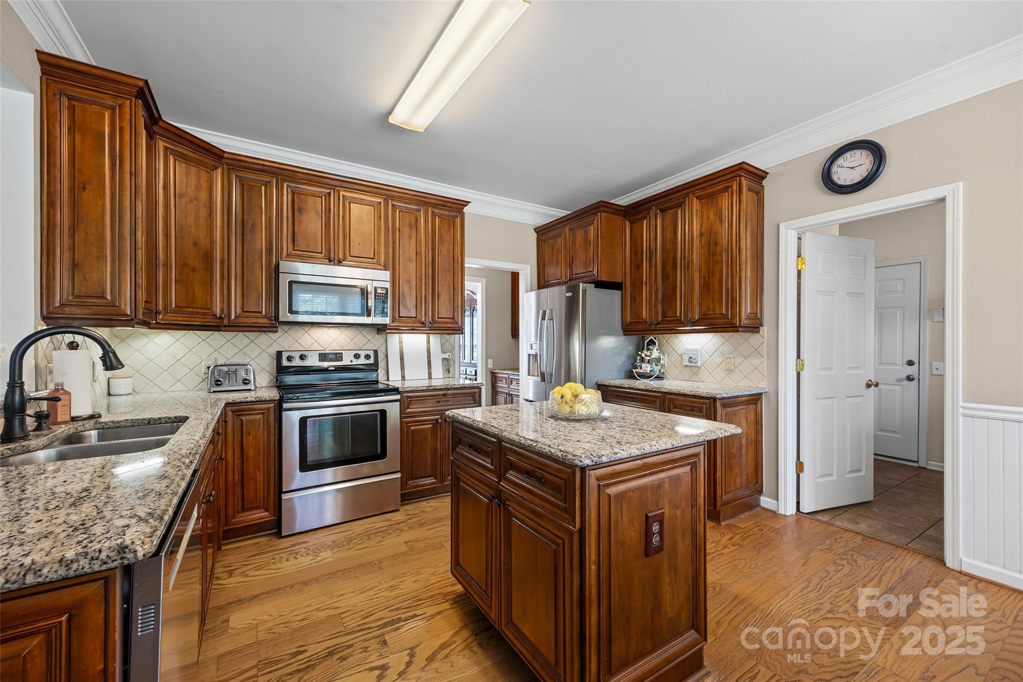 Welcome to this beautiful 5-bedroom, 2.5-bath home nestled on a cul-de-sac in the desirable Rocky River subdivision of Harrisburg. Step inside to the gorgeous formal living and dining rooms with gleaming hardwood floors and decorative molding. The cozy family room features a gas fireplace and abundant windows for lots of natural light. The updated chef’s kitchen boasts stainless steel appliances, refrigerator included, a kitchen island, butler’s pantry, and a sunny breakfast area. A main-level laundry room with washer and dryer included adds convenience. Upstairs, the spacious primary suite offers a vaulted ceiling, large walk-in closet, and a renovated bath with dual sink vanity, stand alone tiled shower, and relaxing garden tub. Three secondary bedrooms share a full bath, and a versatile bonus room makes a perfect media room, playroom, or 5th bedroom. Enjoy your privacy in the fenced backyard with wooded treeline. This home won't last long so don't wait. Kitchen Updated 2014, Primary Bathroom Updated 2020, Roof 2018, Dishwasher 2014, Kitchen Stove, Microwave, Refrigerator 2014, Garage Door & Opener 2022. NEW CARPET BEING INSTALLED 9/25