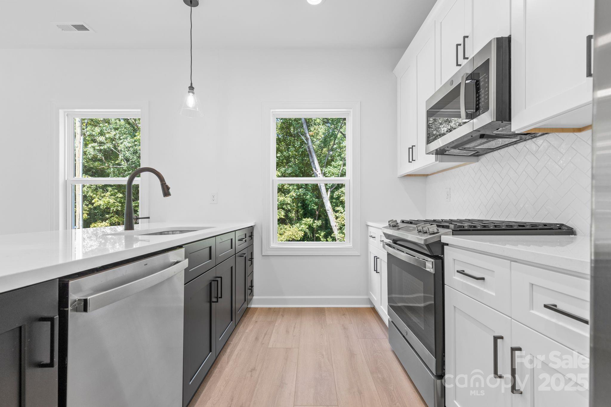 Come explore this exciting new townhome development in West Charlotte. Beautifully designed,2-story townhomes offering modern living space with two bedrooms, 2.5 bathrooms, and a full 2 car garage. LVP flooring throughout, plush carpet in the bedrooms, and bathrooms featuring elegant tile walls. Kitchens are equipped with quartz countertops, stainless steel appliances, and a gas range, and exterior with Hardie siding. Located just 2 miles from Uptown Charlotte, South End, and Charlotte Douglas International Airport, these townhomes are perfectly nestled in for work, entertainment, and travel. Quick access to I-85 and I-485. This community has no rental restrictions, making it an ideal opportunity for investors or homeowners looking to build a rental portfolio. Schedule your showing today! OPTIONAL BLINDS PACKAGE AVAILABLE TOO (Valued at $1000).