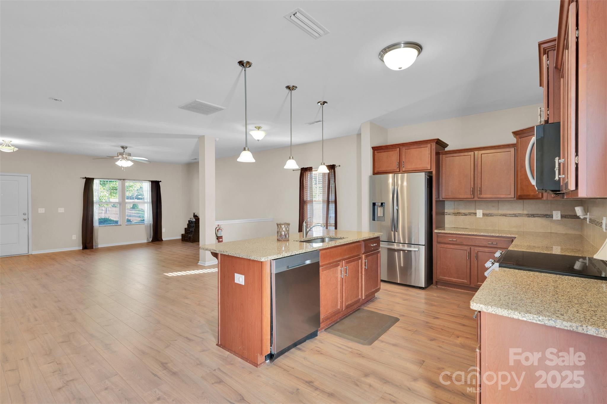 Spacious 4-bedroom, 2.5-bath home located in the Oaks of Landis community. This well-maintained property offers a versatile floor plan with an additional office/bonus room on the main level, ideal for remote work or flex space needs. The kitchen features a center island, stainless steel appliances, and ample cabinetry, opening to the main living areas for both functionality and entertaining. Upstairs, four bedrooms provide comfortable accommodations, including a generously sized primary suite. The exterior highlights include a fenced backyard, garden space, and patio, creating an inviting setting for outdoor enjoyment. Situated in a well-established neighborhood, this home offers curb appeal, convenience, and a welcoming community atmosphere.The property is vacant and move-in!ready, awaiting its new owners.