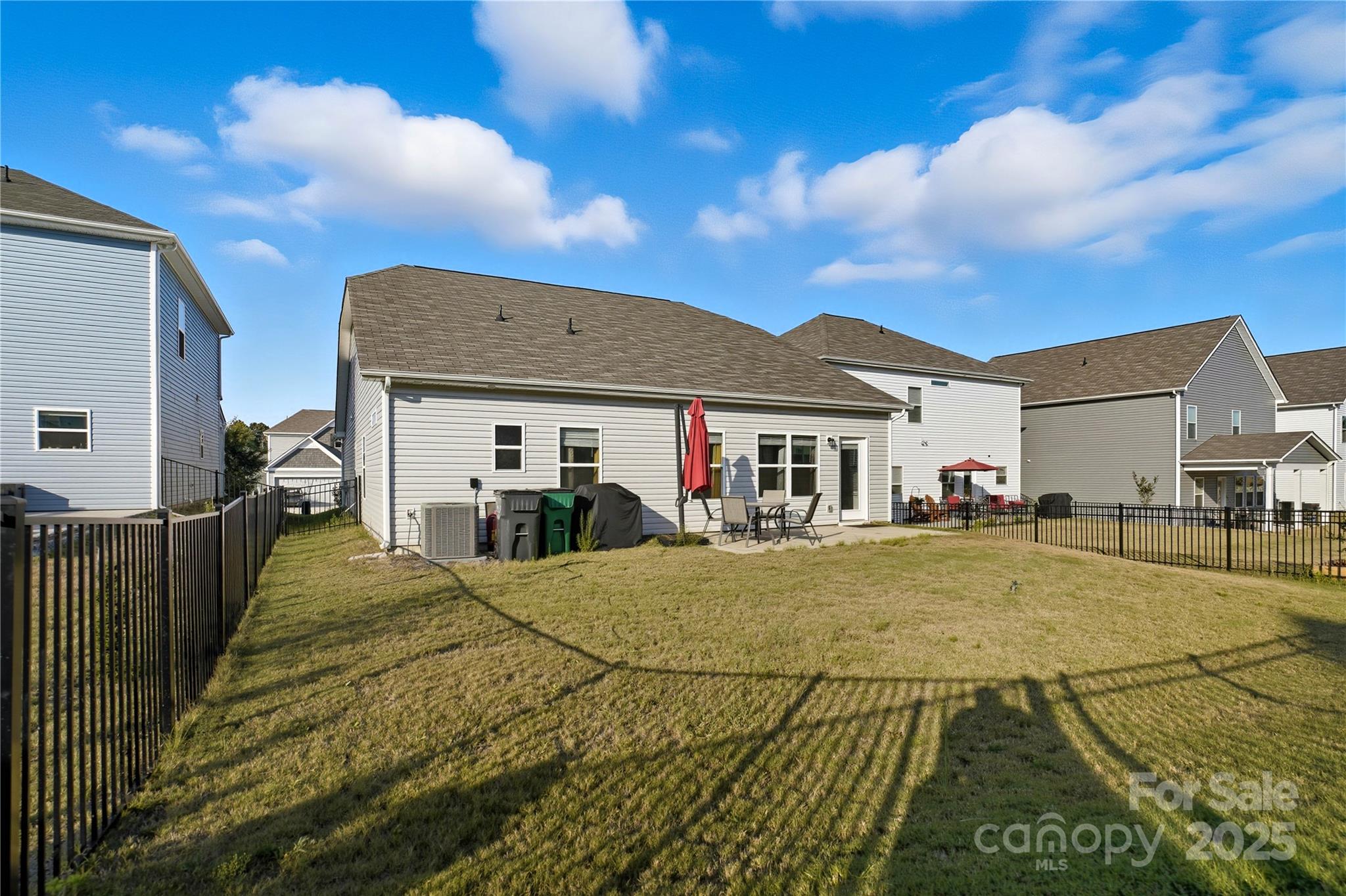 Welcome to this beautiful primary down, single-story home offering the perfect blend of style, comfort, and convenience. Built in 2023, this like new house sits on a quiet cul-de-sac lot with a fully fenced backyard and a welcoming rocking chair front porch. Inside, you’ll find a bright, open-concept layout featuring luxury vinyl plank flooring throughout. The kitchen showcases a large center island with granite countertops, stainless steel appliances, and an open view to the dining area and spacious family room, perfect for both entertaining and everyday living. The primary suite provides a relaxing retreat with a dual vanity bath and a large walk-in closet. Two additional bedrooms are thoughtfully designed, and a versatile flex space with French doors makes an ideal home office, study, or playroom. Exterior highlights include low maintenance vinyl siding with stone accents and a level backyard that’s perfect for gatherings, gardening, or simply unwinding at the end of the day. Located in the desirable Orchard Creek community, this home offers easy access to shopping, dining, and major highways making it truly the total package.