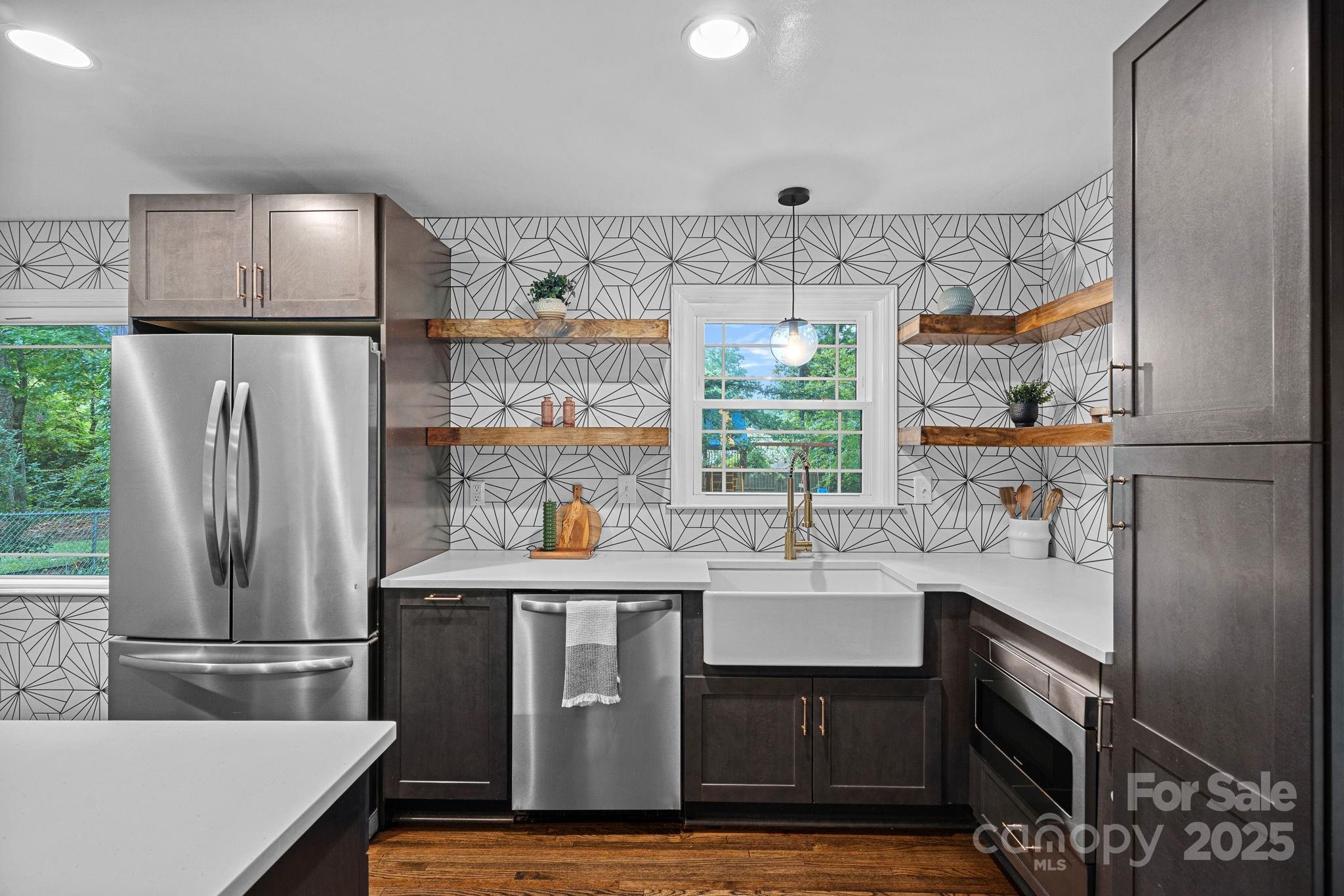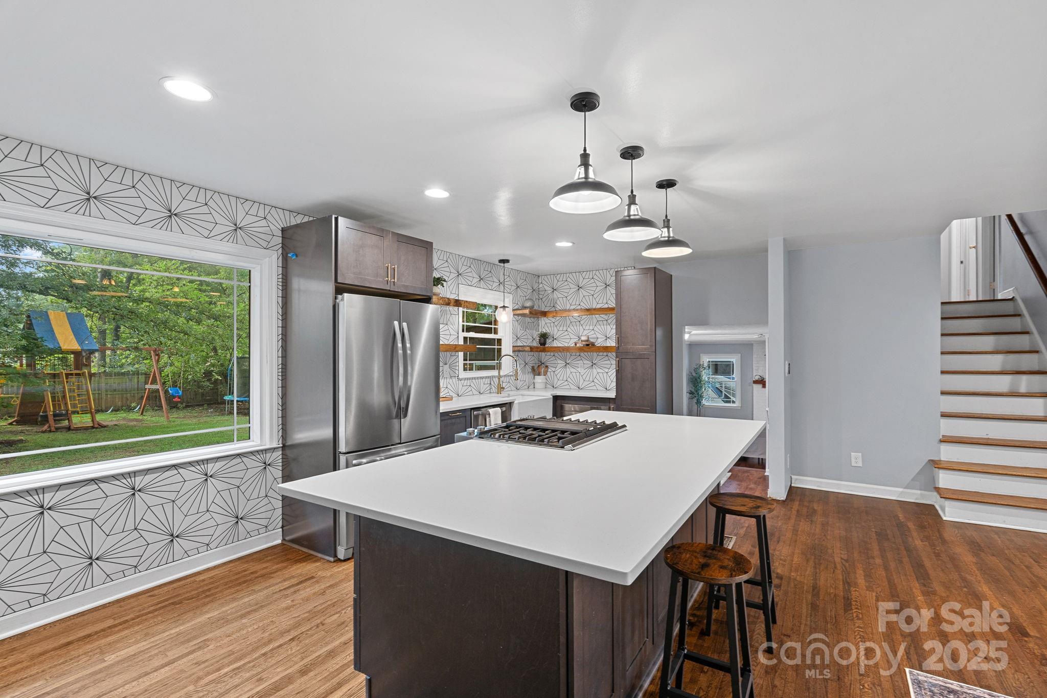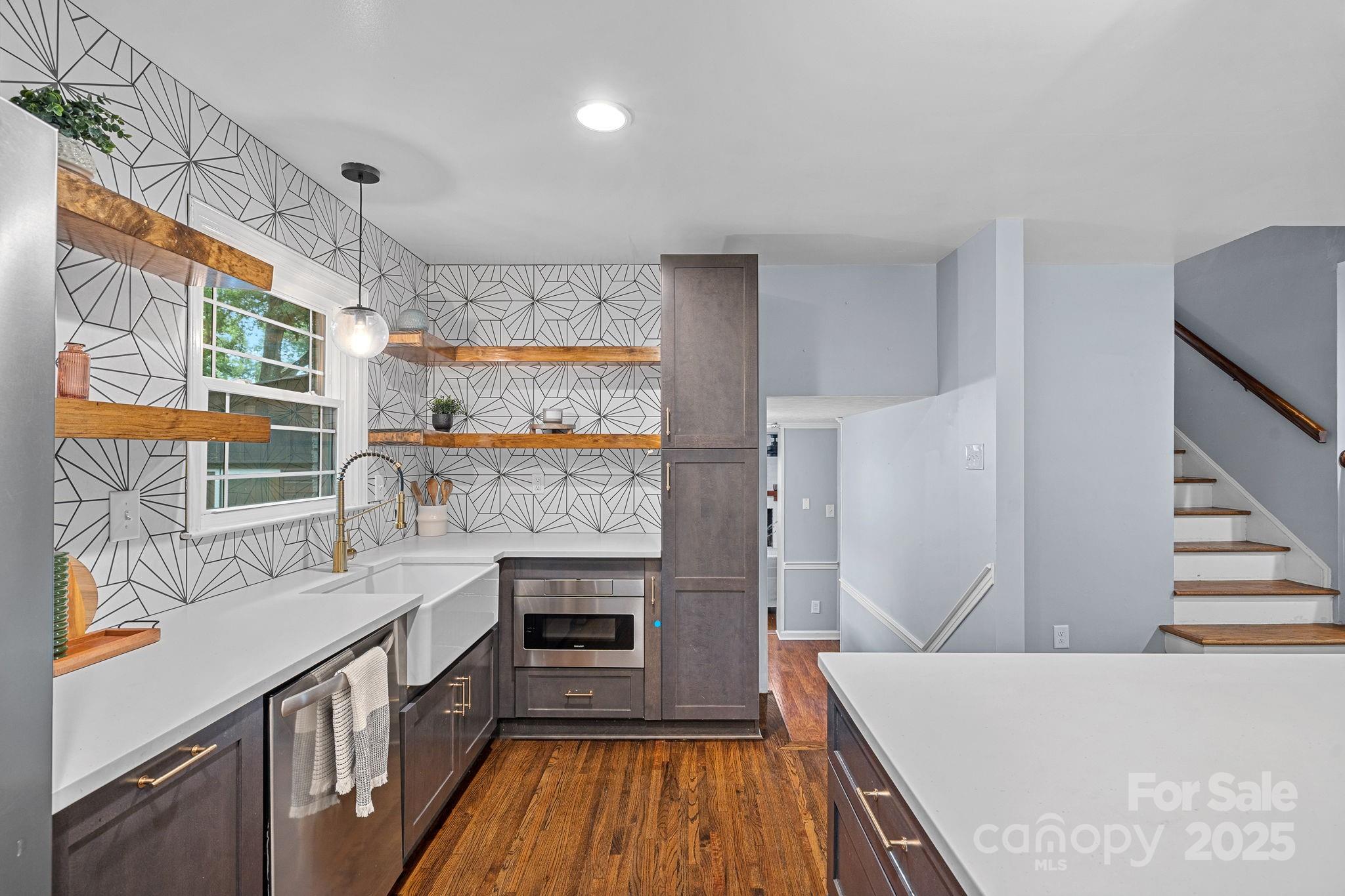 Welcome to 1108 Braeburn Road, a beautifully updated home in the highly desirable Stonehaven community of Charlotte. This four-bedroom, two-and-a-half-bath residence offers approximately 2,300 square feet of comfortable living space on a level 0.35-acre lot. Inside, the open floor plan creates an effortless flow between the living room, dining area, and renovated kitchen, where modern updates include stainless steel appliances, a center island, sleek cabinetry, and abundant counter space. Large energy-efficient windows fill each room with natural light, enhancing the bright and welcoming atmosphere. The inviting family room features a cozy fireplace and easy access to the sunroom, which opens to a spacious, fenced backyard perfect for outdoor relaxation, play, or entertaining. Upstairs, the home includes four well-appointed bedrooms and two full baths, offering flexibility for guest accommodations, work-from-home, or personal retreat. Beautiful wood floors, a refreshed laundry area, and thoughtful design details add both style and convenience. The property’s outdoor setting is equally appealing, with mature trees providing shade and privacy, a play set and sandbox for recreation, and plenty of open space for gardening or gatherings. A wide driveway and covered entry enhance curb appeal, while the home’s updates ensure modern comfort with classic charm. Conveniently located near SouthPark, Uptown Charlotte, and major commuting routes, the neighborhood offers easy access to shopping, dining, local parks and both public and private schools. Offering timeless design, 1108 Braeburn Road is a rare opportunity to enjoy modern living in one of Charlotte’s most sought-after established communities.