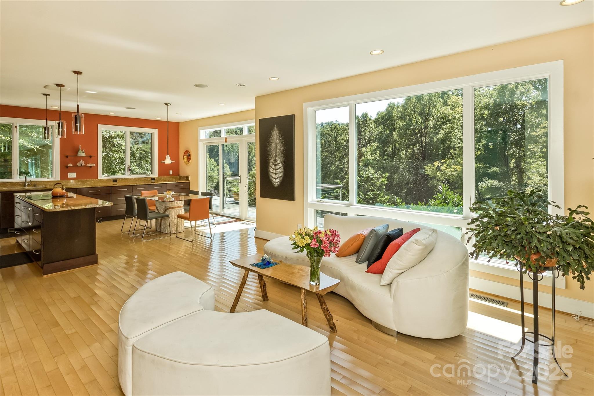 Thoughtful design and luminous spaces fill this Contemporary GreenBuilt NC home, perfectly placed on 5+acres just north of Asheville. Surrounded by nature above a meadow, picturesque views greet you in each room. With upgraded finishes throughout, attached greenhouse, on demand hot water, filtration system and generator, the concept of sustainability is artfully accomplished. The adjoining parcel included would be ideal for building a second family home. The southern exposure bathes this masterpiece in light year-round. Ample storage and closets help organize your life. Two offices, one on the main level with private entry, make work from home a dream. A sense of community is fostered at Mountain Meadows with shared organic gardens, and neighborhood events at the stylish Pavilion clubhouse. Shopping and dining are close by, with Weaverville just 15 minutes away, Asheville an easy 25 minute drive, and charming Mars Hill at your doorstep. Your new mountain oasis awaits, plan your visit!