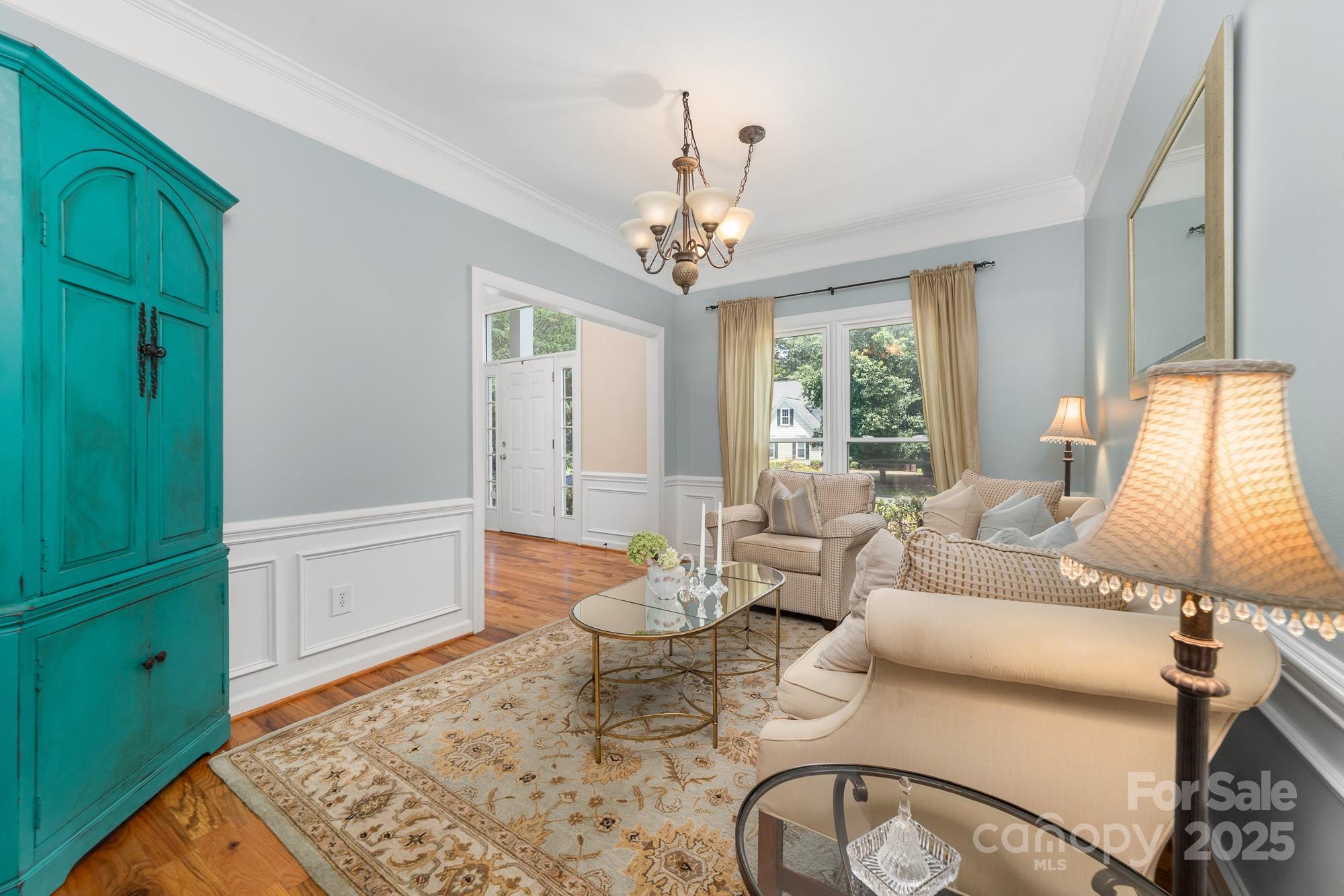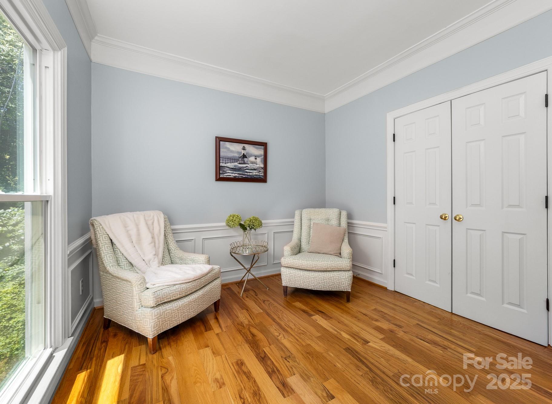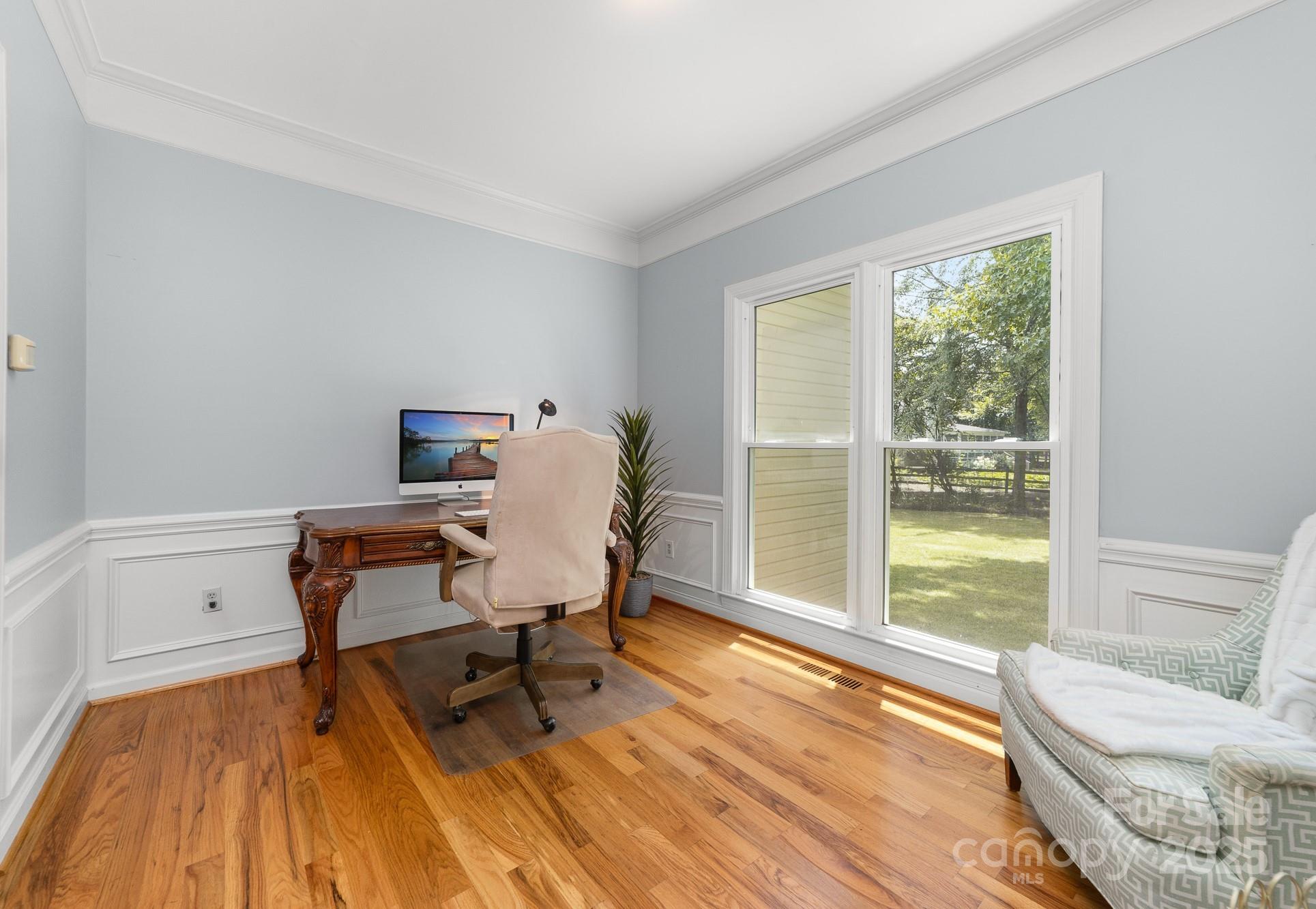 This 5 bedroom home is located in one of Ballantyne's most sought after neighborhoods with award winning schools. Upon entering, you are greeted with a two-story foyer leading into an open concept floor plan filled with natural light. The main level offers an office and sitting area along with an oversized two-story great room. Custom features flow throughout the home with pristine hardwood floors, heavy crown molding and wainscoting. The bright kitchen connects to a 400 square foot screened porch where you will spend most of your time relaxing or entertaining. Upstairs, the expansive primary suite offers a spa like en-suite with a soaking tub, oversized shower, dual vanities and a walk in closet. There are 3 additional bedrooms and an additional 4th bedroom/rec room. Enjoy outdoor living with this screened porch and .36 acres allowing plenty of room to install a pool. Located minutes from The Ballantyne Bowl, Waverly and I-485. New Carpet upstairs 2025