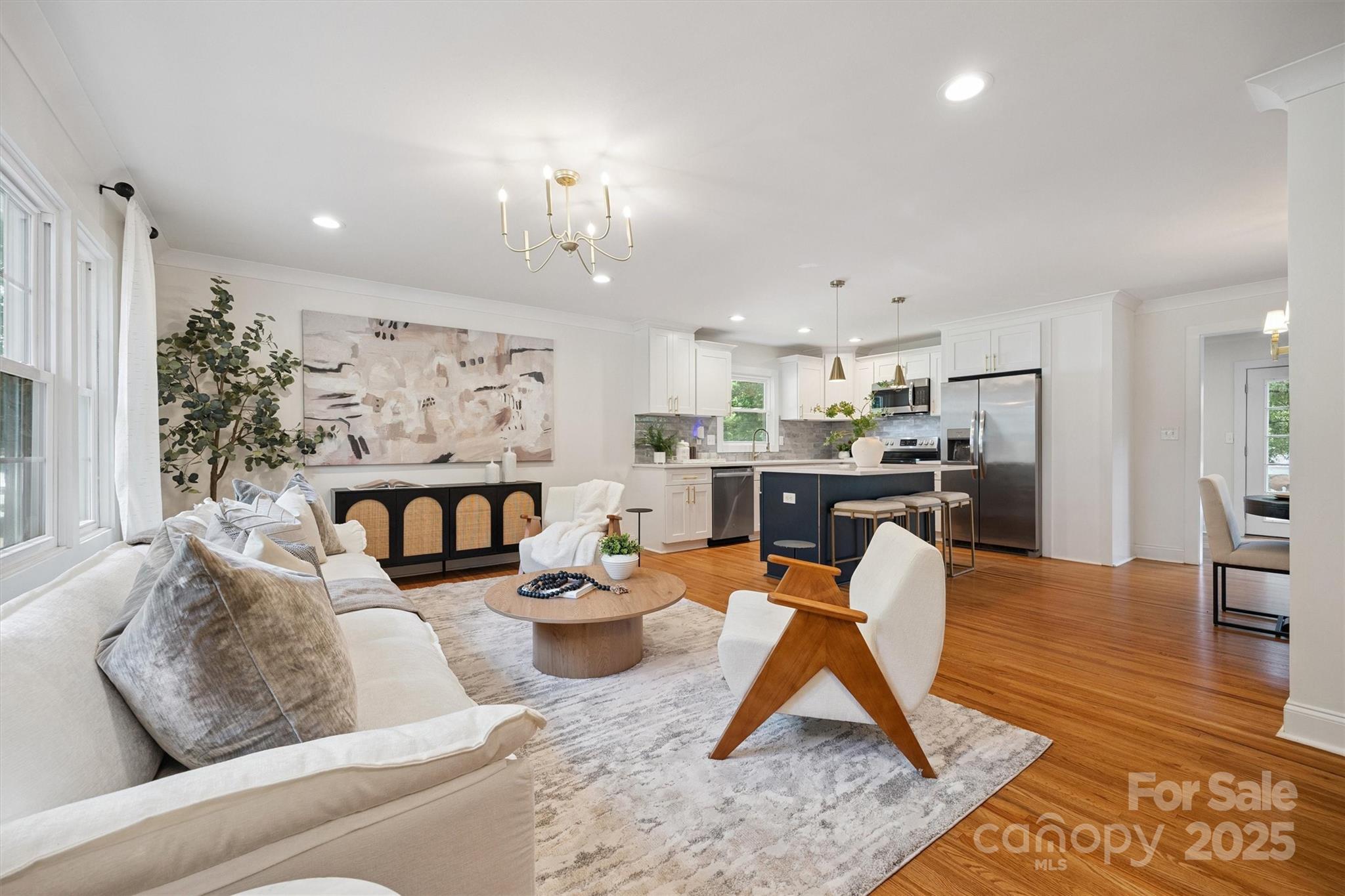 Experience the perfect blend of style, space, and location in this fully renovated 4-bedroom, 2-bath mid-century modern home just minutes from SouthPark Charlotte. Thoughtfully updated and move-in ready, this home offers a rare combination of timeless design and everyday functionality. The open-concept main level is ideal for entertaining, featuring a beautifully renovated kitchen with white shaker cabinets, quartz countertops, stainless steel appliances, and a large island. The kitchen flows effortlessly into the dining area, bright sunroom, and expansive back deck, creating seamless indoor-outdoor living. Both bathrooms have been fully renovated with custom tile and sleek quartz finishes. Major updates in 2022 include a new roof, water heater, deck, and driveway. Located in a quiet, established neighborhood near the Greenway and Park Road Park, with quick access to South End, Ballantyne, Uptown, and the Light Rail, this is Charlotte living at its best.