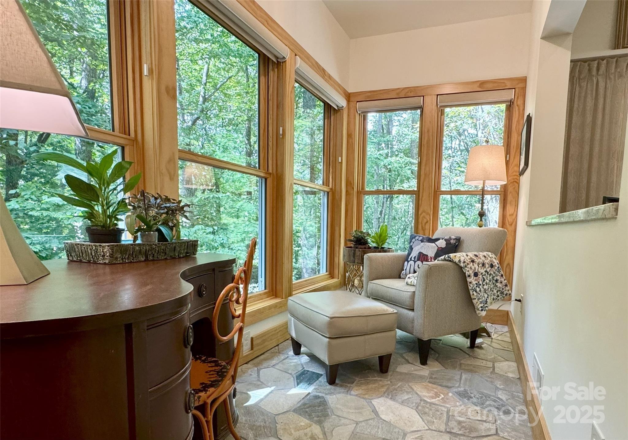 https://crosby-productions.aryeo.com/videos/019900f0-f97d-706c-bf80-fb99f5814ef0 For video copy and paste the link. Here's a rare opportunity to own a private, exceptional home featuring a beautiful main house, a charming guest cottage, and plenty of garage, workshop and storage space for your cars, bikes, kayaks, hobbies and any gear you need for mountain adventures. Surrounded by nature, this Green Built "treehouse" home is bordered on three sides by road, in the middle of 2.5 acres, leaving ample buffers for privacy. Natural grounds means no lawn mowing and more time to play or relax to the sound of the babbling stream below. The inside boasts all natural, quality finishes throughout, including hardwood and stone floors, with radiant heat everywhere. The exterior features cedar shake siding and Ipe decking to last a lifetime. The one level living spaces include three bedrooms, 3 and a half bathrooms, 2 kitchens 2 laundry areas, a flex/bonus room in the cottage and porches galore for lounging and entertaining. A bridge connects to the cottage that has everything you need for multi-generational living, guests or a separate home office suite. Below, there is a huge workshop, another hobby studio and a refreshing outdoor shower. Keep it all running efficiently with smart technology, all new mechanicals and a commercial generator that ensures the power stays on. Conveniently located between Hendersonville, Brevard and Asheville's Regional Airport, you'e in the middle of everything, but away from it all. Hit the Ecusta Trail just a minute away or head out to nearby DuPont or Pisgah Forest. Find multiple restaurants and shops just down the hill. Move here, relax and enjoy life. Street view on Zillow is inaccurate.