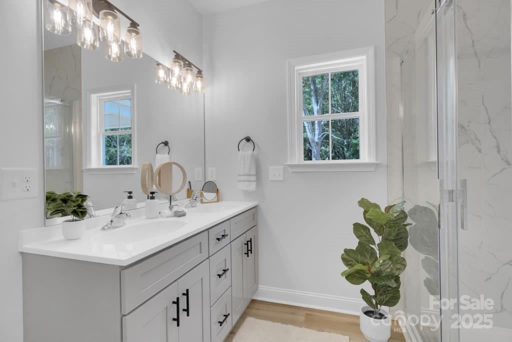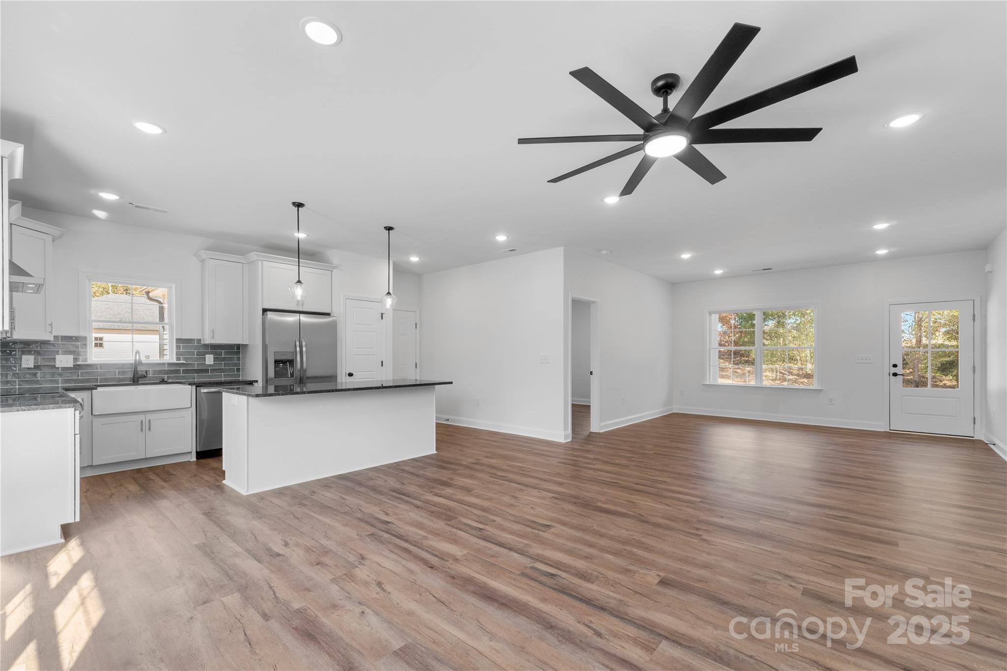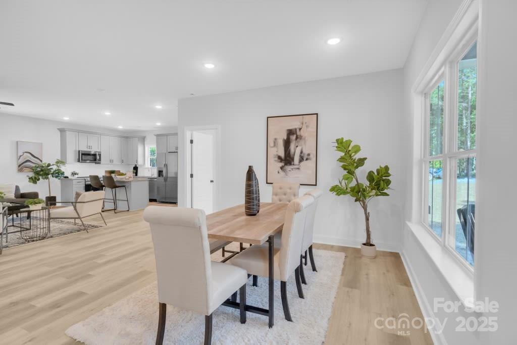 Discover the charm of this newly built modern farmhouse by Summit, perfectly set on a private 1.49-acre lot surrounded by trees. Tucked away just off Flowes Store Road, this home blends peaceful rural living with thoughtful design and quality craftsmanship. Inside, durable LVP flooring flows throughout the home, leading you into a warm and inviting living area highlighted by a shiplap electric fireplace. The kitchen features soft-close cabinetry, a center island, pantry, and a porcelain farmhouse sink with a window overlooking the backyard — a blend of beauty and function in every detail. The primary suite is designed for comfort with a tray ceiling, a spacious walk-in closet complete with built-in shelving, and a private ensuite bath. Two additional bedrooms and an additional flex room provide versatility for a home office, playroom, or potential fourth bedroom — tailored to fit your lifestyle. Summit is known for combining the timeless appeal of modern farmhouse style with high- quality finishes and attention to detail. With completion being finalized in October, this is your chance to secure a brand new, move-in ready home on a lot w/ a private well & septic (no water bill!) & no HOA. A rare find in this area!