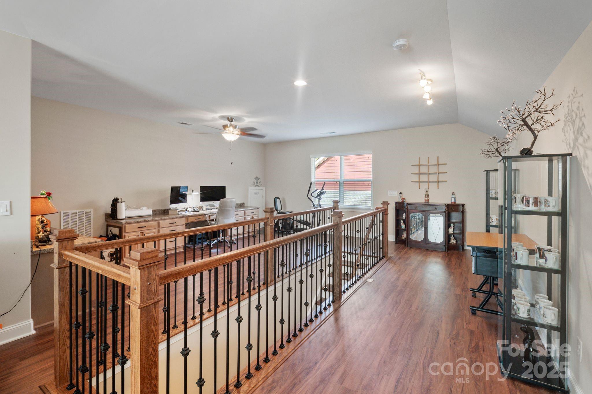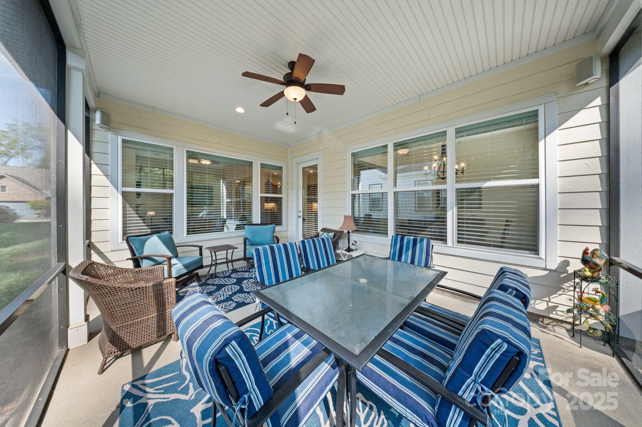 Beautifully maintained Ramsey/Loft model located on an established cul-de-sac street just steps from the clubhouse, gym, on-site restaurant, pool, pickleball courts, and concert stage. This home truly has it all—soaring 10-foot ceilings, rounded corners, and James Hardie siding for low-maintenance living. Inside, you’ll find hardwood floors throughout, custom primary bedroom closets, and a bright open layout designed for everyday comfort and entertaining. The upstairs loft is a showstopper—perfect for a massive crafting room, media lounge, or man cave—with a custom built-in desk/work area, plus an oversized walk-in storage area to keep everything organized. Outdoor living shines here too with a large covered screened-in porch that overlooks the private wooded backyard, ideal for relaxing or hosting friends. Additional features include surround sound with outdoor speakers, an HVAC air scrubber for clean indoor air, LeafGuard gutters, added cabinetry in the laundry room with utility sink, shelf storage in the garage, and natural gas hookup for patio grilling. This is your chance to enjoy resort-style living in a vibrant, active community where neighbors become friends and every day feels like vacation. Move-in ready and waiting for you to enjoy the good life—book your showing today! Full time activities director on staff, Gym, Indoor pool, locker, Art studio, Event Center, Pool, & Game room 5 miles of walking and biking trails. Lake Norman is 5 minutes away.