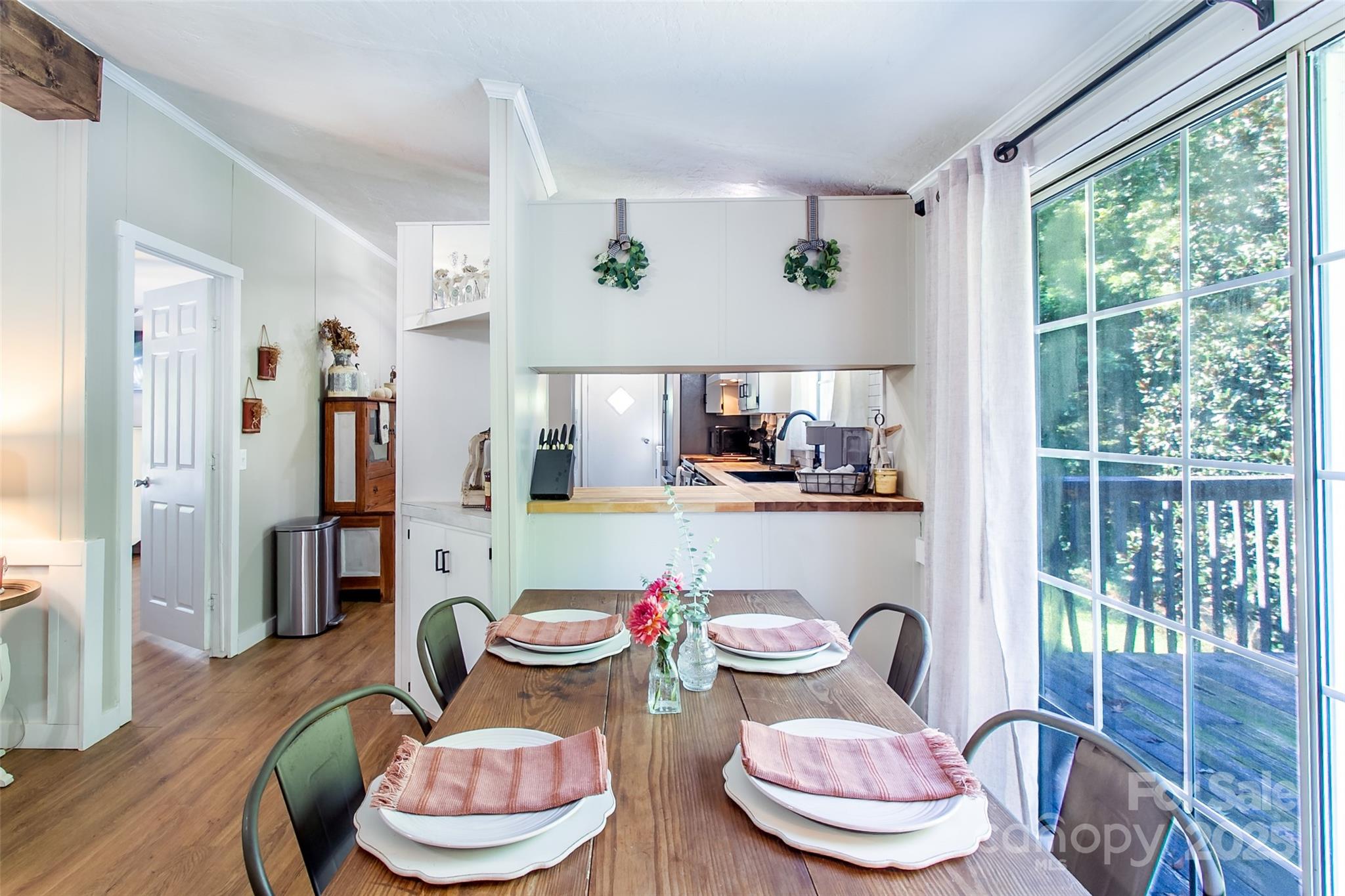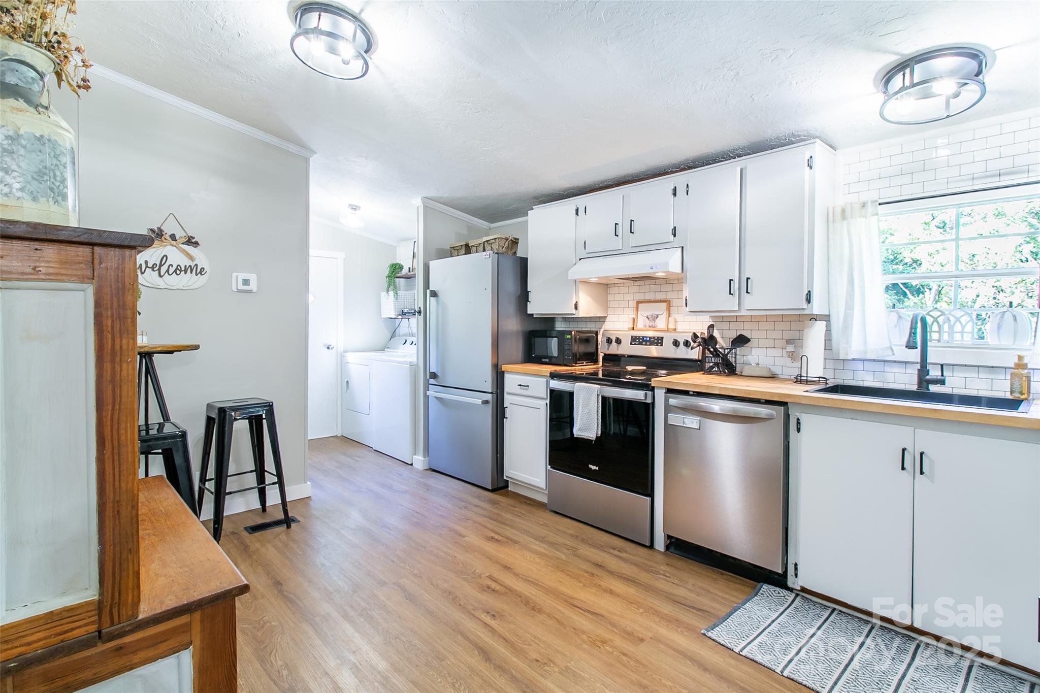 Such a charming setting! Imagine mornings with coffee in hand on the front porch, space for your pets to play in the open yard and a kitchen that feels both stylish and warm, with butcher block counters, stainless appliances, and a farmhouse sink. This 3 bedroom, 2 bathroom home has been lovingly updated to combine everyday comfort with modern touches. Updated fixtures throughout add a fresh, inviting feel, and the newly installed soaking tub in the primary bedroom is the perfect retreat after a long day. Home has newer metal roof, water heater, air conditioning unit, appliances, and paint. Need space for hobbies, projects, or storage? You’ll love the garage-style metal building (ideal for a gym, workshop, or studio) plus two additional sheds. The property is dotted with perennials and ornamental trees offering natural beauty in every season. Here, there’s truly room to live, play, and grow—all at a price that makes it not to be missed.