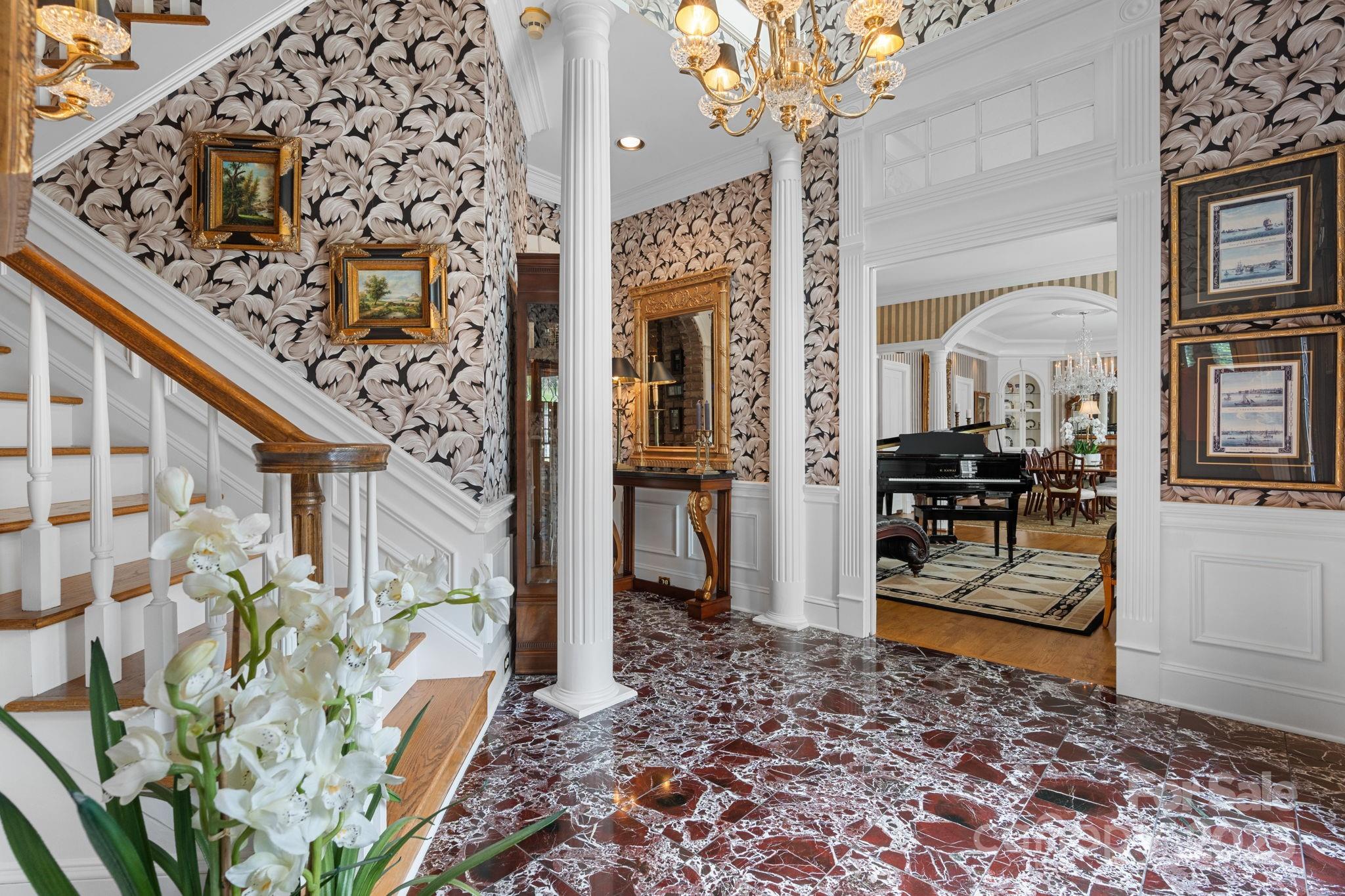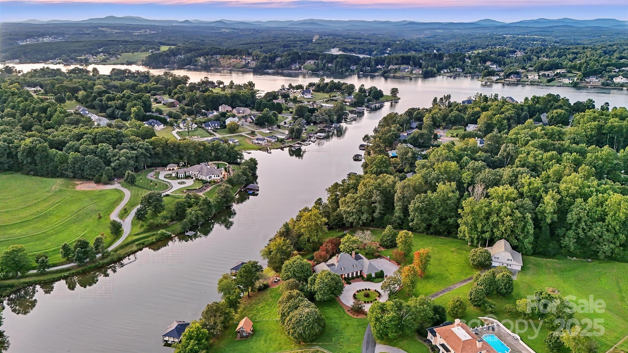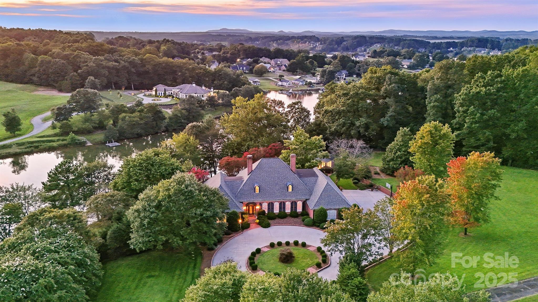 *Exquisite Lake Front Estate Offering Privacy in a Prime NW Hickory Location with No City Taxes or Restrictions* Nestled beyond a private gated entrance on a quiet cove just off the main channel, this remarkable lakefront estate encompasses 5.63 acres of tranquility, sophistication & unmatched amenities. Designed for both relaxed living & grand entertaining, this property seamlessly blends timeless architecture with resort-style features—creating a rare opportunity in one of Hickory’s most sought-after settings. Step outside into your private retreat. The gunite pool—with integrated hot tub, cascading waterfall & ornate gargoyle fountains—serves as a dramatic centerpiece, complemented by gorgeous gardens and a charming brick greenhouse which extends from the pool area. Additionally, there is a cozy lake side seating area with a fire pit just steps from the pool area. A covered boat dock with two boat slips, boat lift, a jet ski slip and floating jet port ensures effortless enjoyment of Lake Hickory. A versatile barn with four stalls, tack room, loft which could be finished for another living area (1,133 sq. ft.), full bath & oversized bays, provide an ideal area for equestrian use, off-season storage of boats, jet skis or additional autos. Adjacent to the barn lies an expansive pasture bathed in sunlight. The manicured grounds are supported by lake-fed irrigation, ensuring beauty & functionality year-round. Inside, architectural character abounds—arched brick doorways, coffered & tongue-and-groove ceilings, hickory-paneled walls & hardwood floors. Over looking the serene pool and gardens, the gourmet kitchen is a chef’s delight, featuring Thermador appliances, gas range, walk-in pantry, beverage cooler, ice maker, bar seating and lighted display cabinetry. The built in desk/drop zone is a generous space designed for efficiency offering an organized haven where items can be arranged & safely stored. A brick archway leads into the den, where custom built-ins, a beautifully crafted wood-burning fireplace & scenic views of the pool & gardens create a warm, inviting gathering space. The primary suite is a private sanctuary with two walk-in closets, dual spa like vanities, steam shower, soaking tub & bidet. Strategically placed between the primary suite & den, a versatile home office—once a nursery—provides a refined balance of privacy & convenience. A spacious guest suite on the main level enhances accessibility & comfort for visitors. The formal living & dining rooms embody timeless elegance with oversized moldings & exquisite detail. The living room features a gas fireplace with vintage mantle, while the dining room is anchored by illuminated corner china cabinets & a stunning chandelier adorned with genuine Strass crystals. Upstairs, two large bedrooms share a Jack & Jill bath, each with walk-in closets. Storage is abundant, highlighted by a 344 sq. ft. walk-in storage room accessed through one of the walk-ins (formerly served as a sewing room), dormer-to-dormer floored storage & a hall closet with custom shelving for linens & tableware. The expansive billiard room, accessed by both the formal winding staircase & a back stairwell from the kitchen, connects to a massive bonus room with tongue-and-groove ceiling & walk-in closet—perfect as a media room, gym, office or playroom. The well appointed laundry room includes a washer & dryer with a spacious folding counter above, custom cabinetry, utility sink & a full-size stand-up freezer surrounded by abundant storage & additional counter top space. An oversized 4 car garage with workbench & storage area adds practicality to the property, blending seamlessly with its luxury design. From sunlit mornings in the greenhouse to tranquil evenings by the fire pit, this estate captures the essence of comfort, privacy & prestige. With its premier location, exceptional craftsmanship & unparalleled amenities, it is truly a once-in-a-lifetime offering on Lake Hickory.