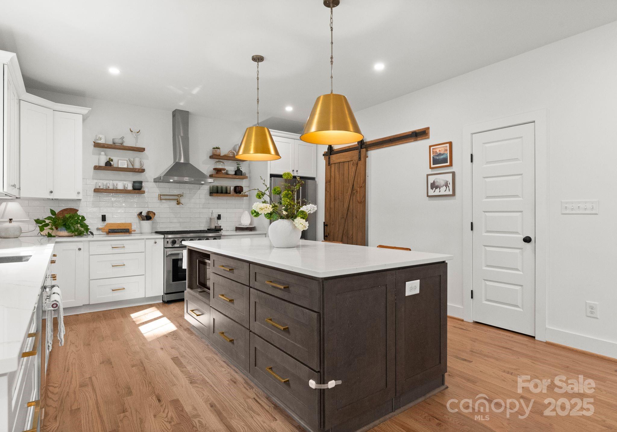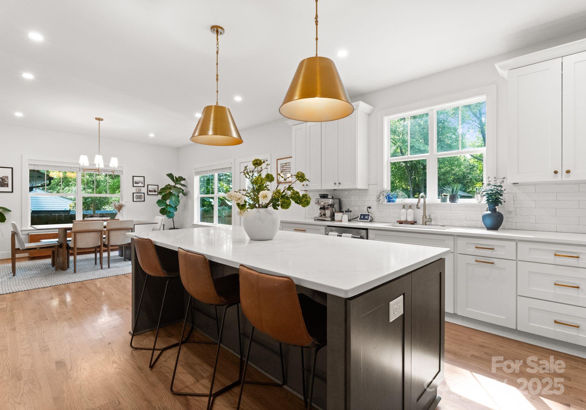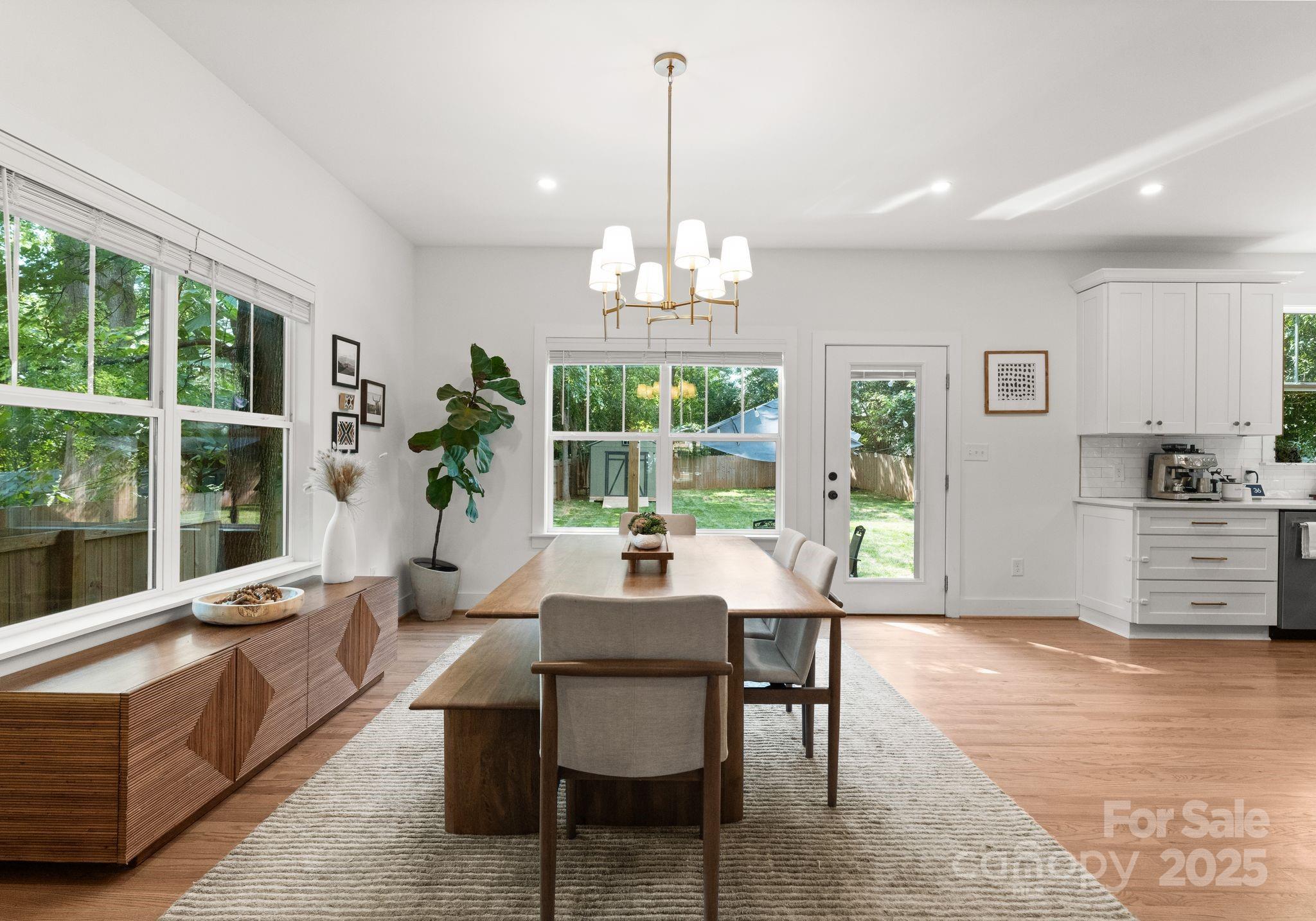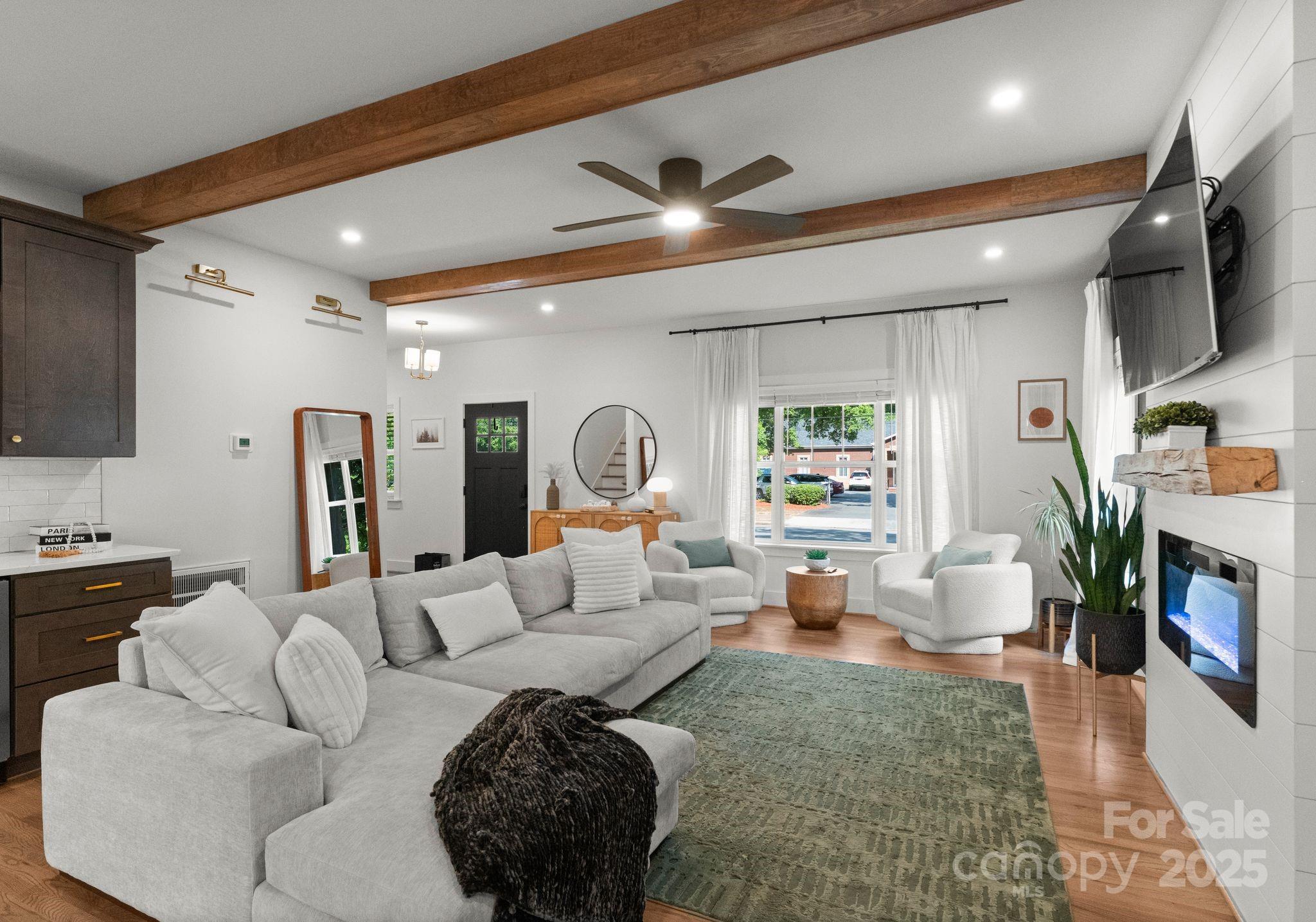 Stunning newer built Craftsman home just minutes from Camp North End & Noda! This rare gem blends modern luxury with timeless design. The attention to detail from striking, lush landscaping & exquisite Herringbone pavers sets the tone. As you step inside you'll be greeted with tons of natural light illuminating through the expansive windows creating a bright & inviting ambiance! The kitchen is a true showstopper featuring sleek quartz countertops, an oversized island perfect for entertaining, soft close cabinetry & premium stainless steel appliances! Designer light fixtures throughout adds a touch of elegance & sophistication! This open-concept living space boasts warm hardwood floors & exposed wooden beams adding character & charm. Relax on the covered front porch or fully fenced-in, level backyard with endless possibilities for outdoor living & entertaining! Enjoy cozy evenings by the custom built fire pit or create your own oasis! The possibilities are endless. Welcome Home!