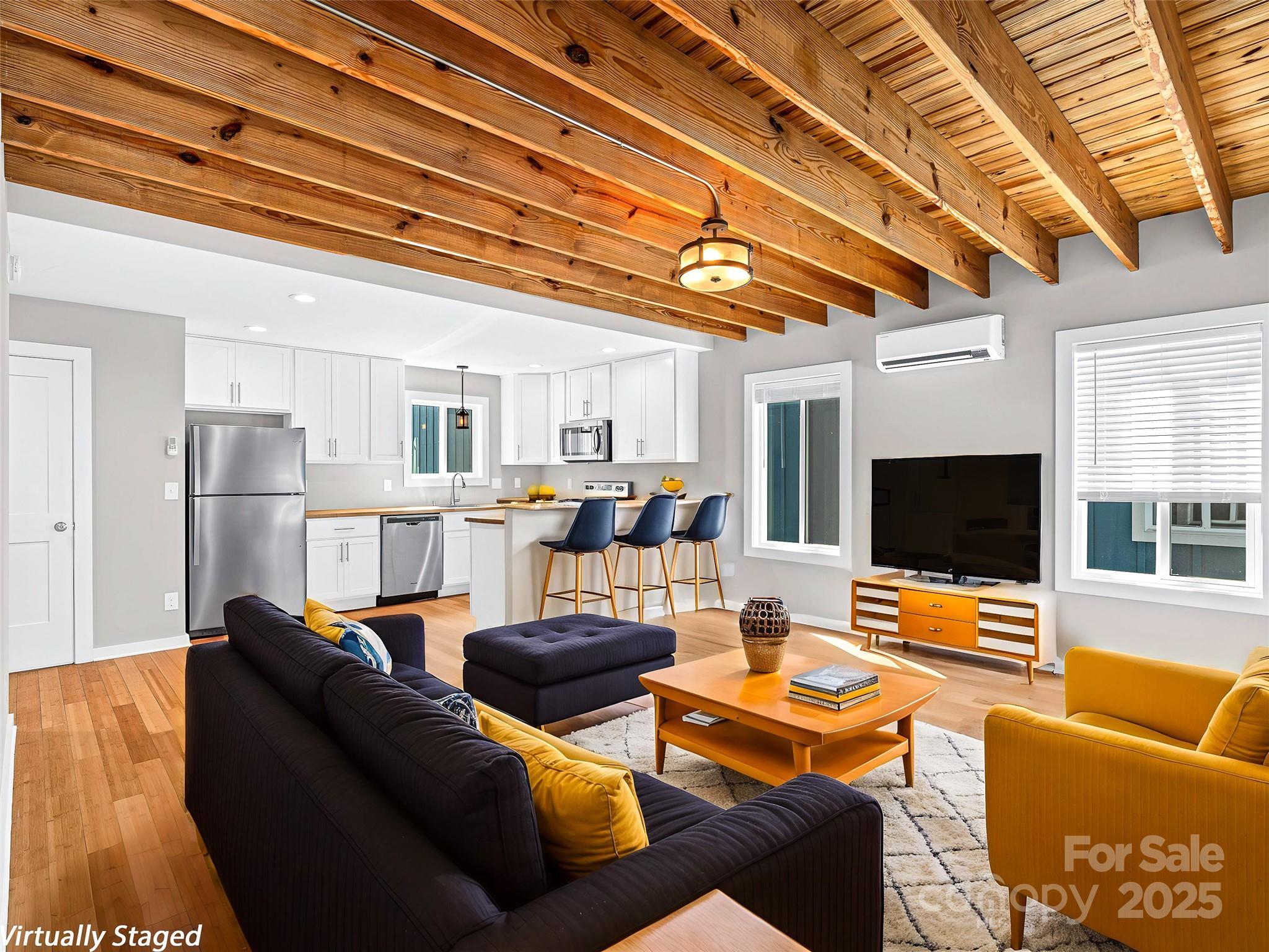Welcome to this modern 2.5-story modern design home in the Atkinsville community—one of South Asheville’s thoughtfully designed neighborhoods that is walkable to pilates, restaurants and more. Wood floors with tongue & groove ceiling and exposed beams. So cozy! This lock and leave community is easy living with all yard care done for you. The spacious carport can easily fit one car or you could park in your driveway and use the carport as your outdoor living space, combined with the small backyard area that can be fenced. Enjoy easy access to The Asheville Airport, Biltmore Park Town Square (for tons of shopping and eating options), the Blue Ridge Parkway, Lake Julian, shops, restaurants, & more—all just minutes from I-26 & less than 20 minutes to downtown AVL. This is easy living at it's finest. Yard care covered by HOA!