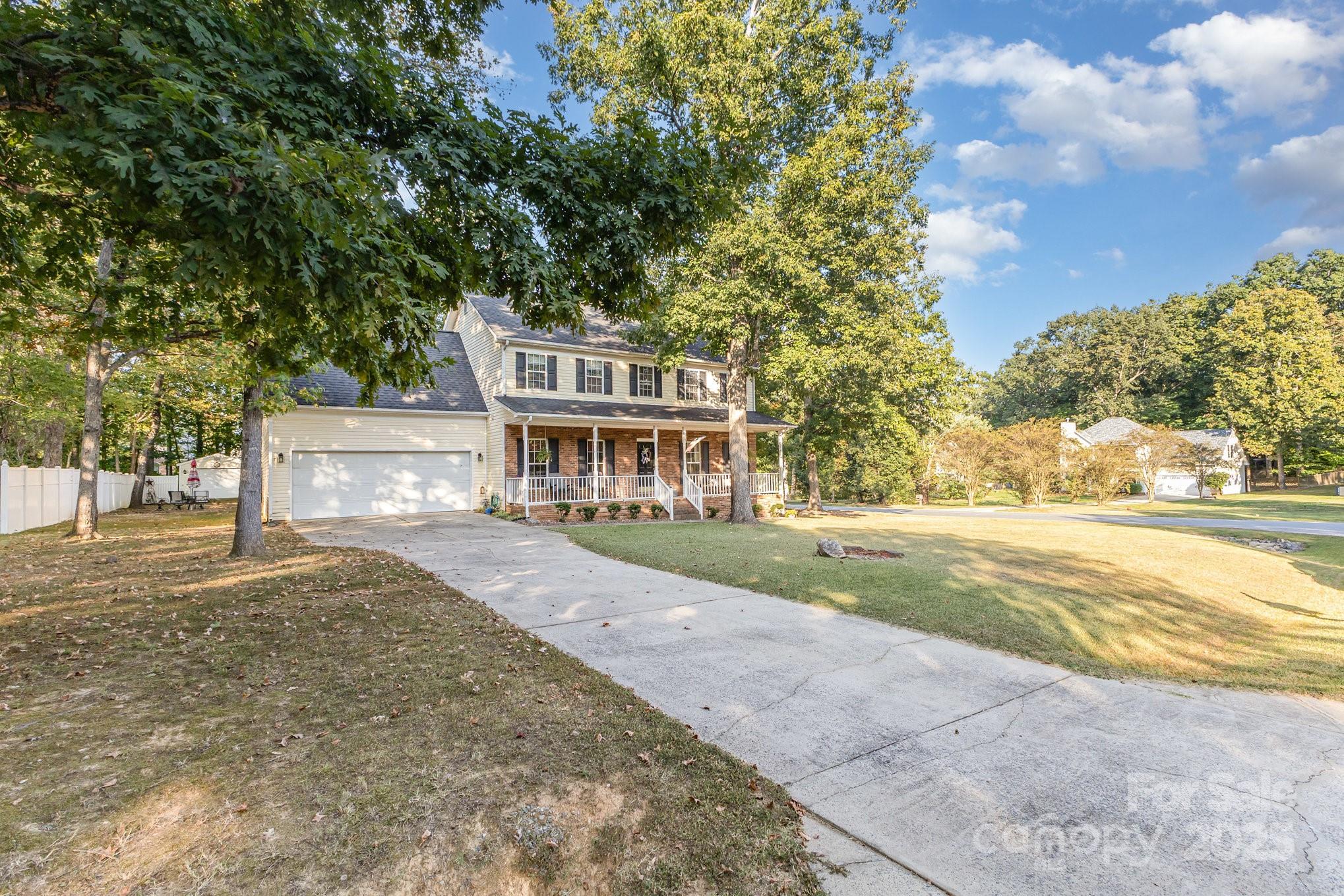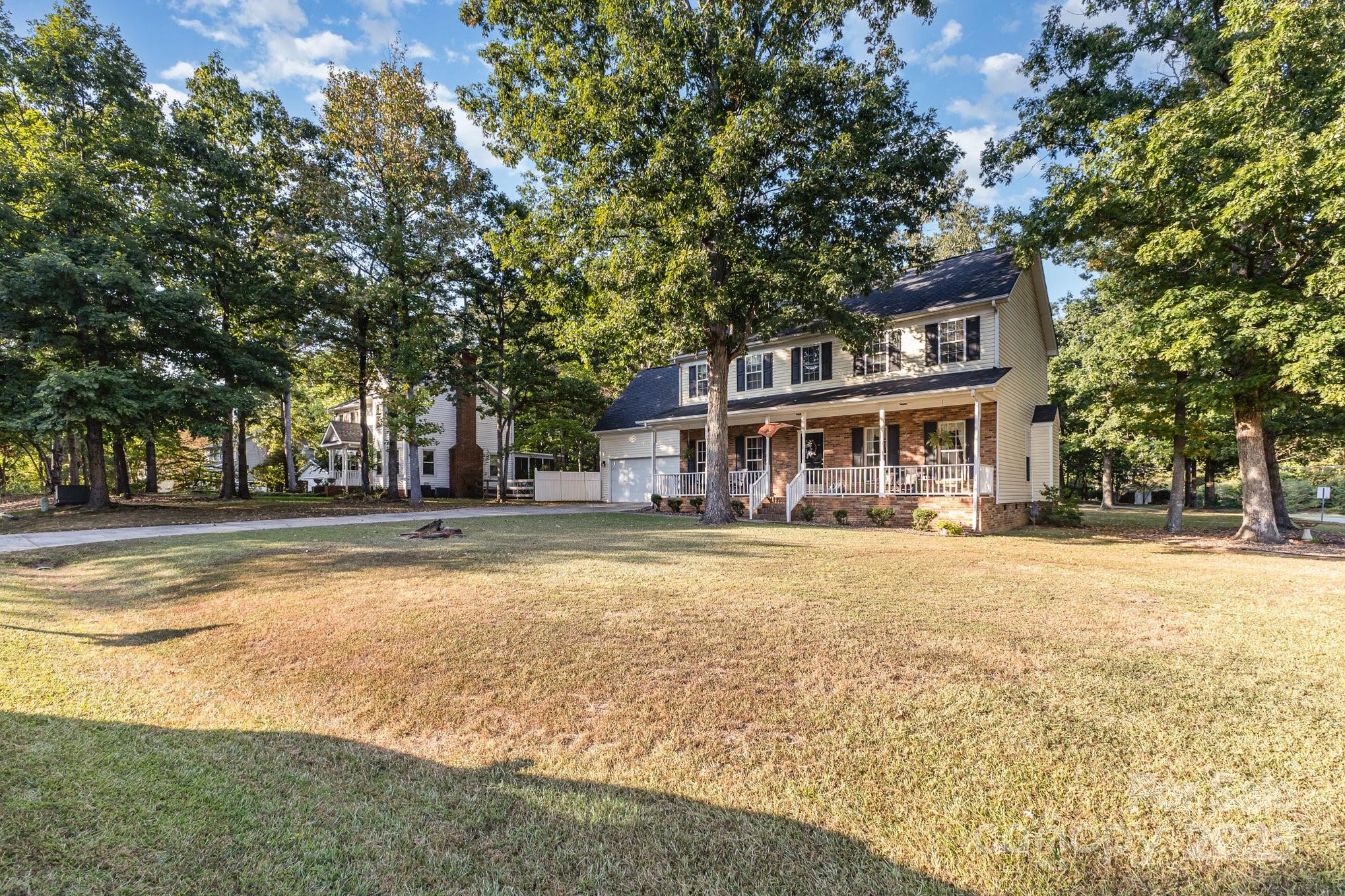 NO HOA! Welcome to this stunning home in the HIGHLY sought after area of Indian Trail. This spacious home features beautiful hardwood floors in the dining room and entryway along with real wooden cabinets in the ktichen, a building in the backyard that is divided into 2 rooms; a workshop and storage space both with electricity, huge laundry room upstairs, large master, beautifully re-done bathrooms throughout and a private backyard oasis. Excellent school district and conveniently close to shopping and I-485.