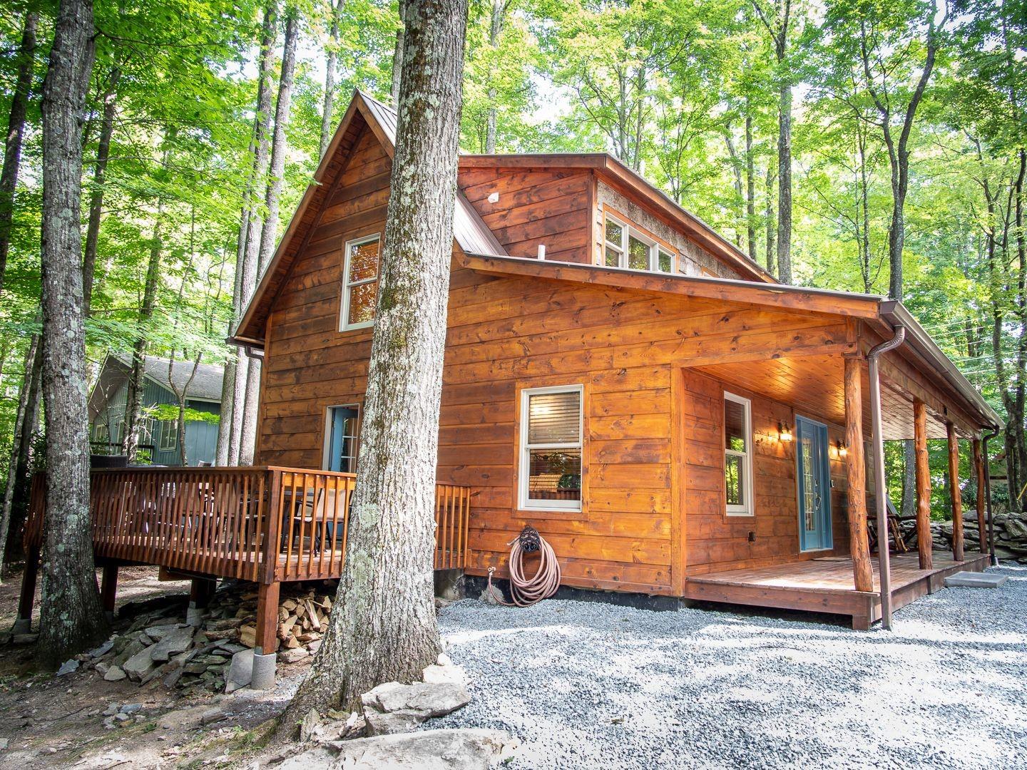 Stylishly Rustic cabin totally renovated in 2019. Great Room floor plan features inviting stone fireplace. Covered porch, open deck, and patio offers outdoor living areas. Perfect spot for vacation home or year-round living in the Blue Ridge Mountain of NC. If you enjoy all seasons, come to the BEECH. The mountain offers magical springs, cool summers, stunning fall colors as well as winter sports including skiing, snow boarding and tubing. Buckeye Recreational Center is 3 minutes away or if you prefer, a 30 minute walk. You'll want to check out membership in Beech Mountain Club which offers year-round amenities including golf, tennis, pickleball, community pool, fitness and cardio center, spa, restaurants, Ski Lodge, Summer day-camps and a variety of social activities.