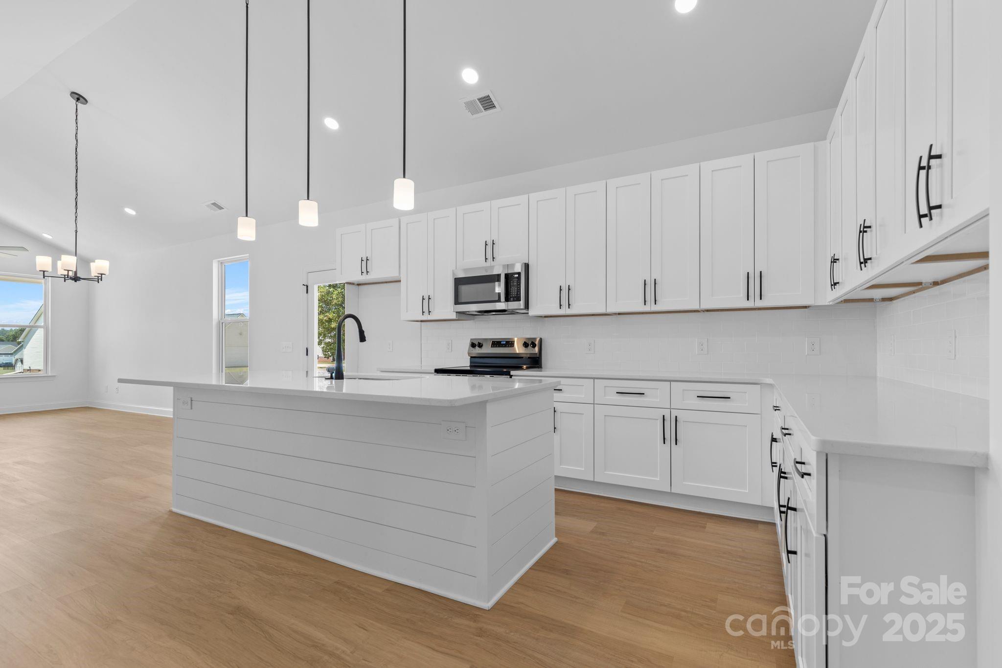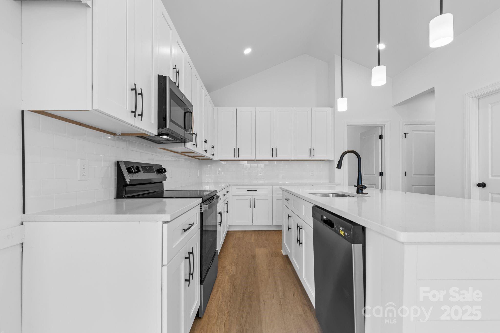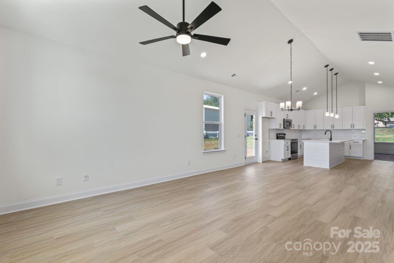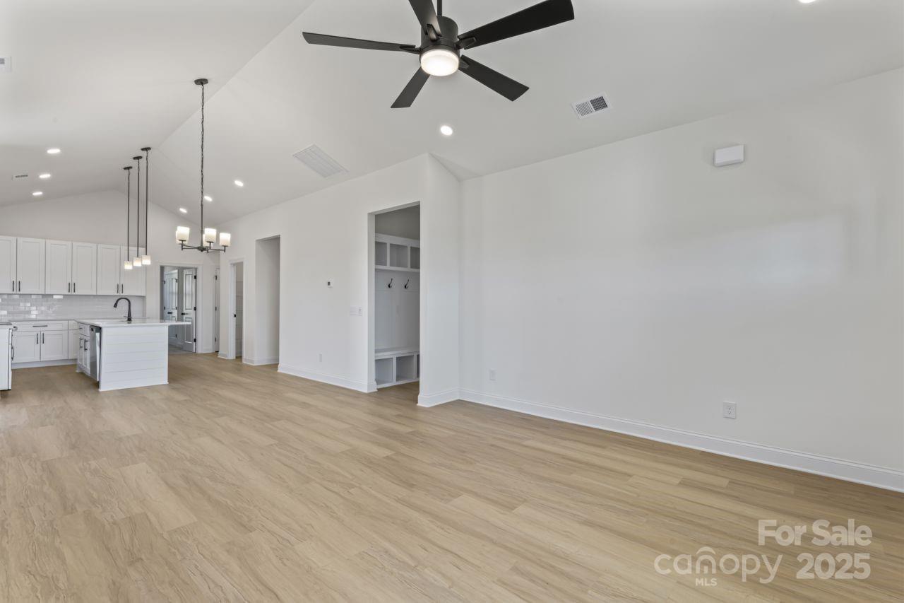 MAJOR price improvement by very motivated seller on this gorgeous new construction ranch in a wonderful West Iredell location. NO HOA and COUNTY TAXES ONLY !! Step inside and be welcomed by soaring ceilings in the living areas, luxurious vinyl plank and artistic black fixtures and accents throughout. The open floorplan is highlighted by the kitchen with its shaker style cabinets, quartz countertops, stainless steel appliances and bar top kitchen island with designer shiplap. Experience the ease of single level living that includes a convenient drop zone with built in cubbies. The primary bedroom suite is an oasis for relaxation - allow the worries of the day to wash away in the upgraded primary shower with floor to ceiling tile and a transom window to let in abundant natural light. All of this on a cul-de-sac half acre lot with a generous backyard located in the peaceful Celtic Ridge neighborhood and only 5 mins to I-40, grocery stores, restaurants and much more. Book your showing today before this one is gone !!