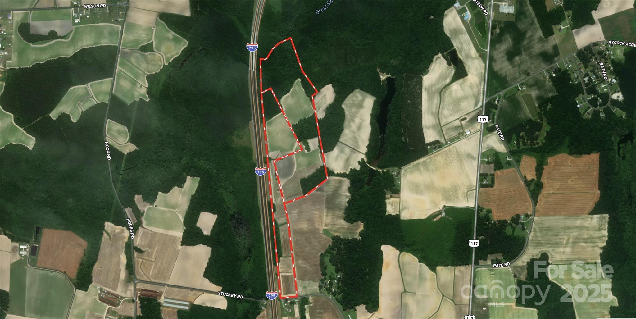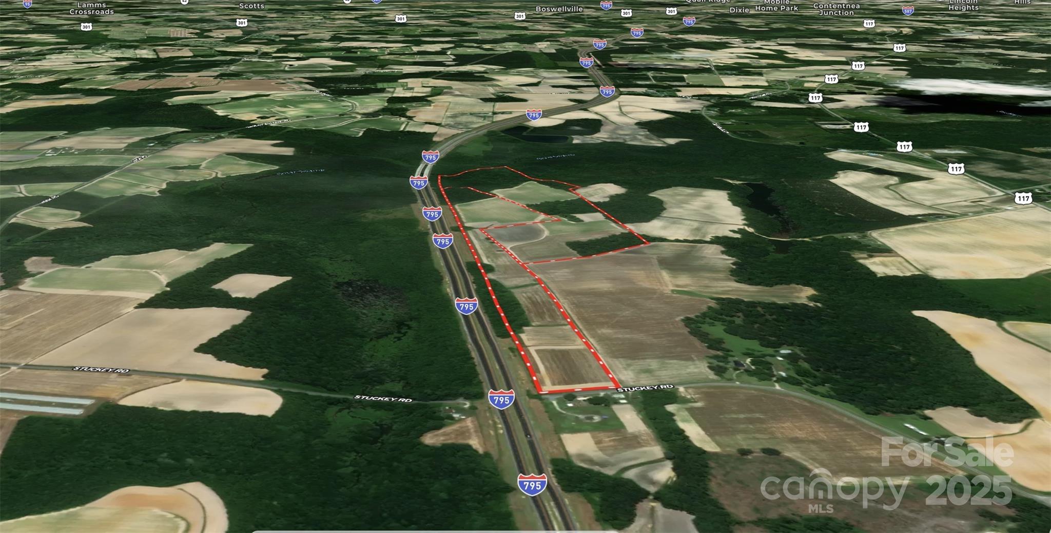 Easy access Rural development land near I-795 & I-95! Positioned just 3 miles from the Fremont I-795 exit and about 13 miles from I-95, this 76-acre farm offers the best of both worlds: peaceful country living with direct access to major highways. Located midway between Goldsboro and Wilson in an unzoned section of Wayne county, the property provides a versatile canvas for your vision—whether that’s building a family retreat, developing estate lots, creating a subdivision, or even establishing a private airstrip community. Currently farmed with well-drained sandy loam soils, this land has a long history of producing tobacco, soybeans, cotton, corn, and sweet potatoes. This farm has been in the same family for decades (listing agent has an ownership interest) and stretches nearly a mile north running parallel to I-795, includes a small pond, wooded buffers, and more than 420 feet of paved road frontage at the end of Stuckey Road—ensuring both privacy and convenience. Address is has not been assigned and is listed for GPS purposes only. Travel times are ideal: Raleigh in under an hour, Greenville in 45 minutes, Wilmington is roughly 90 minutes, and Morehead City or Richmond, VA, in about 2 hours. If you’re seeking a beautiful expansive rural building site with unmatched interstate access, this property is ready to meet your needs.