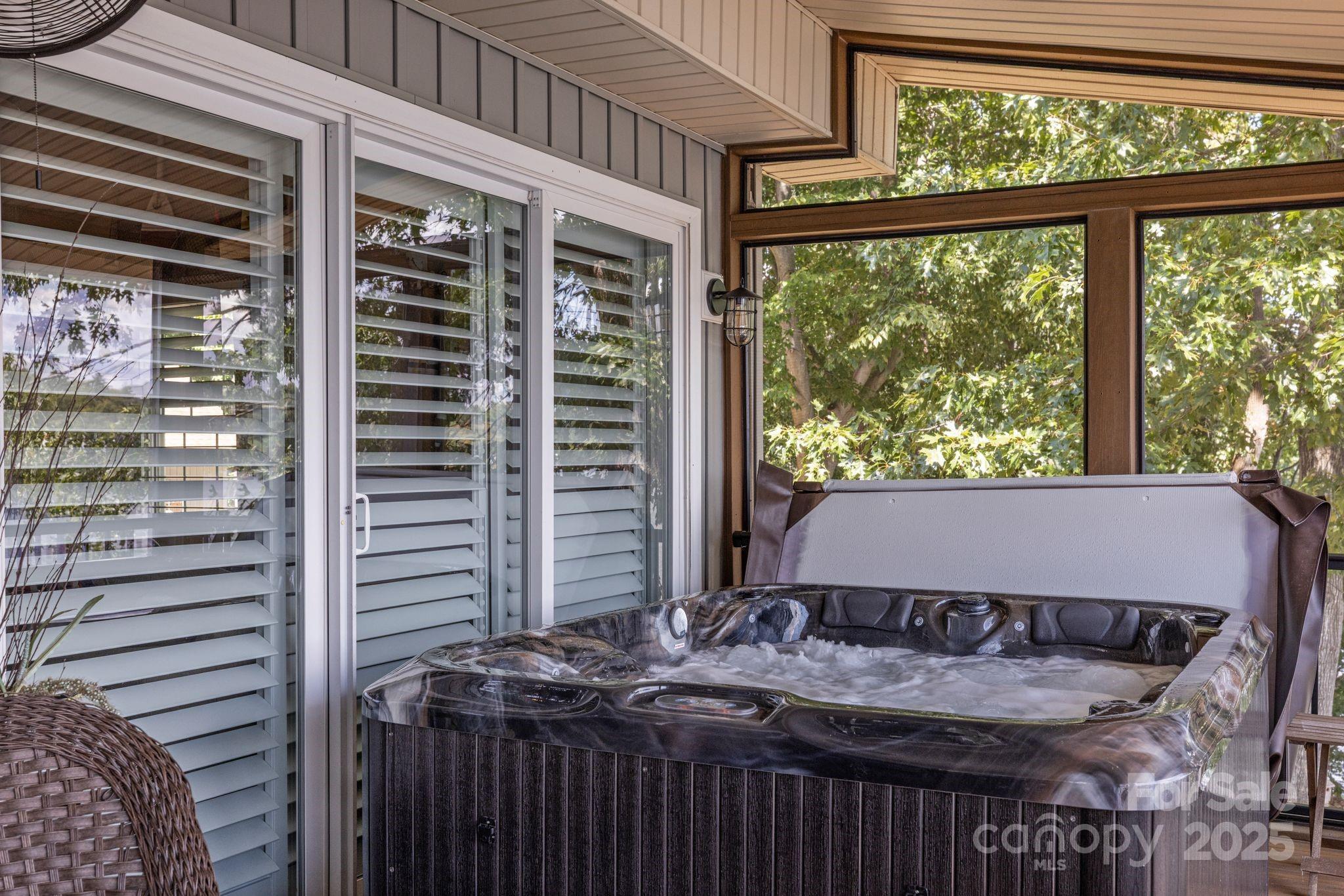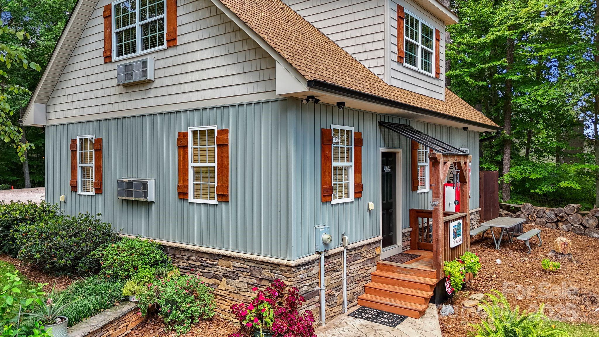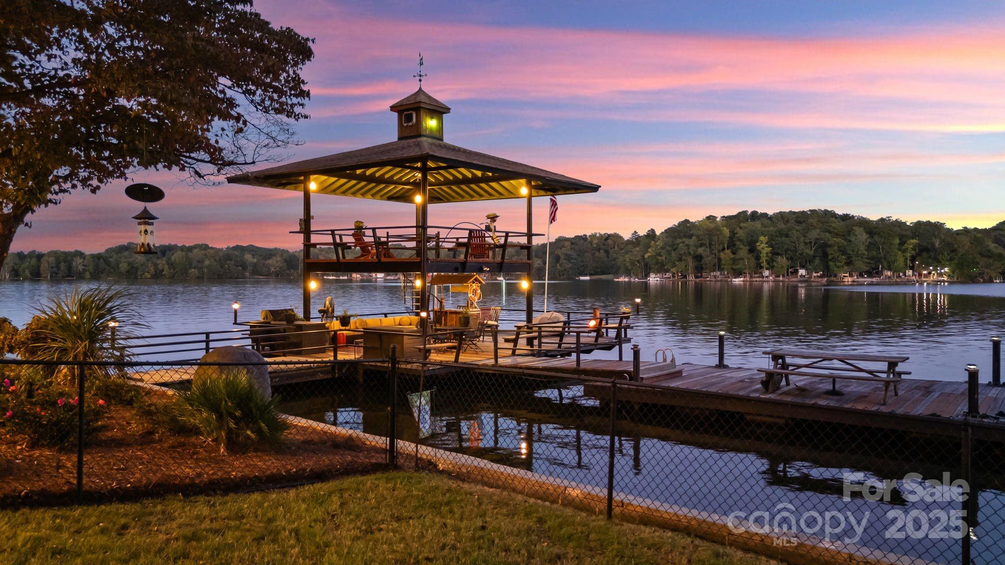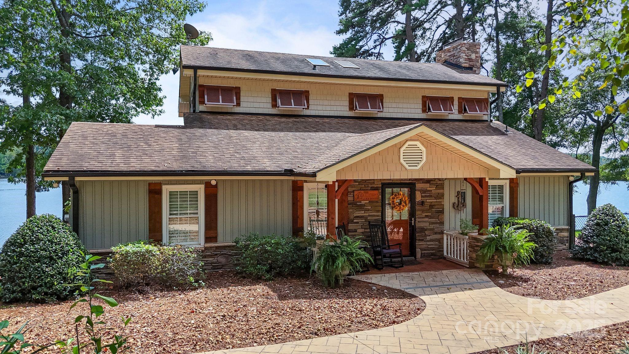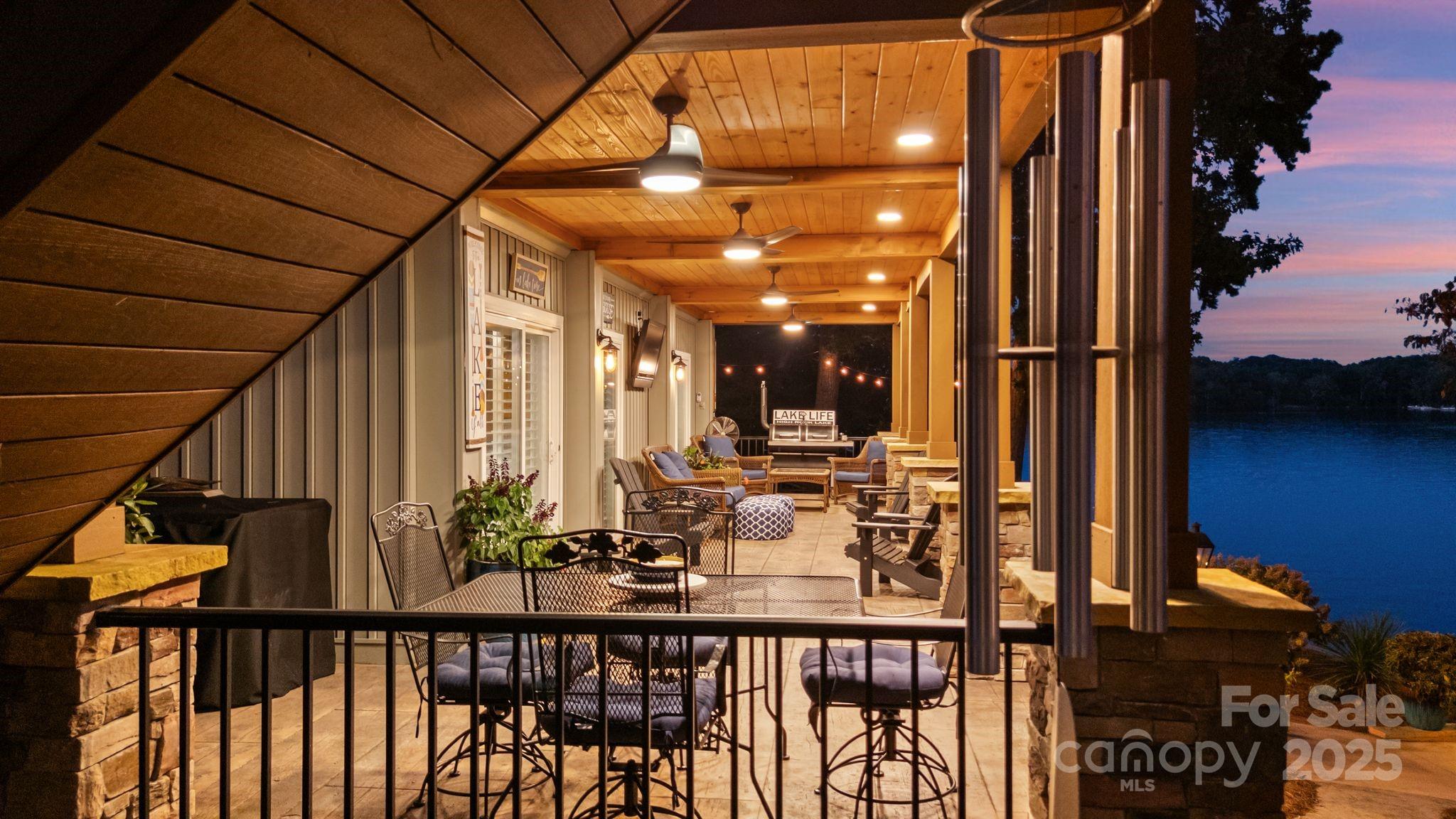 Lakefront EXTENSIVELY remodeled Home! Double Lot w/ 2nd Living Qtrs & Double-Deck Dock/Gorgeous LONG range VIEWS w/ manicured irrigated lawn & landscaping/Outdoor UPPER-LEVEL HOT TUB! PLUS 846 HTD sq ft 2.5 car detached garage PLUS 633 HTD sq ft apartment up + FULL BATH! Custom Plantation Shutters/Level 4 granite, matching lighting w/ copper sink & outdoor gas lights on stone pillars! Tankless water heaters! Garage/Apartment excellent for entertainment/AirBnB/Camper hookup for guests! Partial steel Frame home! HOT & COLD water outside for washing your TOYS! Deep water year around, excellent lighting, tiki bar, dock w/ power & water/16+ ft at full pond! Four porches, with TVs & can entertain 35 to 45 comfortably! Porches have moisture shield material & ducks-back flooring, stamped concrete. Upper screened porch - primary bedroom! Great fishing - release area from fishing tournaments nearby! Minutes from public boat launch & lakeside fuel for easy watercraft adventures.