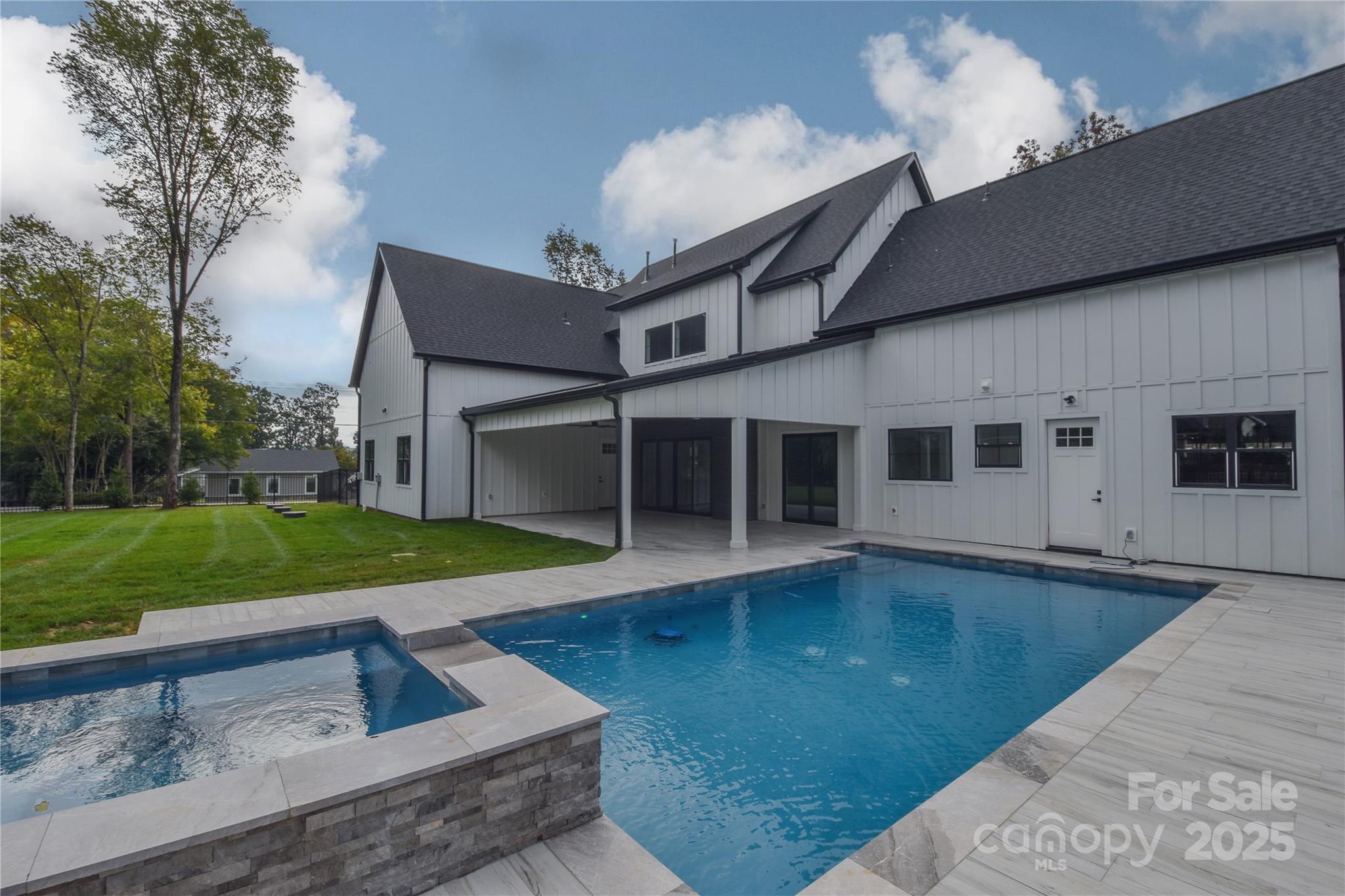Welcome to this extraordinary brand new custom home, a 5,000+ sq ft showcase of craftsmanship and comfort in the Lake Norman Golf Club community—where you’ll enjoy modern luxury, a gorgeous pool & spa, and no HOA, with partial lake views. Unlike most custom homes that require a 12–18 month build process, this home is fully completed and move-in ready—delivering true custom craftsmanship without the wait. Set on a half-acre corner lot, it allows for two separate driveways - one leading to a two car side load garage, and another to a private single car garage ideal for a golf cart, extra car, or workshop access, giving the home true estate presence and enhanced functionality. This custom home was thoughtfully designed to elevate both daily living and entertaining. Step inside and be captivated by the soaring great room, anchored by a designer crystal chandelier, custom built-ins, and a sleek linear LED fireplace. The gourmet kitchen is a showpiece for entertaining with its dramatic waterfall island, custom cabinetry, professional-grade range, hidden scullery with wine fridge & 2 dishwashers. Throughout the main living areas, pre-finished wide-plank hardwood floors provide seamless elegance—no carpet anywhere. The main-level primary suite is a true retreat, with heated tile floors, spa-inspired bath, and a huge custom closet. Additional spaces include a dedicated office with built-ins, mudroom with built in's, abundant storage, and two laundry rooms—one upstairs and one on the main level—for ultimate convenience. Upstairs, discover 3 bedrooms, a loft lounge with wet bar, and a large bonus room that can double as a 5th bedroom, wired for a sports simulator, gaming, or theater. Outdoors, the lifestyle continues: expansive covered patios with tile floors overlook your saltwater pool & spa with LED lighting and a level fenced in backyard perfect for entertaining. Pet lovers will appreciate the built-in wash station in the garage and custom feeding station in the mudroom, complete with built in bowls and a dedicated faucet. Thoughtful details include a water softener system, and custom closets in every bedroom. Two garages with separate ample parking driveway areas, energy-efficient systems, and floor-to-ceiling designer tile in every bathroom complete the package. Nestled at the end of a quiet peninsula, and within the Lake Norman Golf Club community (formerly Mallard Head), this home offers more than just a place to live—it’s a lifestyle. The club is open for play and undergoing extensive renovations that will transform it into one of the premier golf destinations in the area. Each drive to and from home takes you past the greens, and Spring Run provides one of Mooresville’s most popular walking & biking routes along the course. Ideally located just minutes from shopping, dining, and everything Lake Norman has to offer, this residence delivers the perfect blend of lifestyle, convenience, and prestige - all without the restrictions of an HOA. Move-in-ready custom homes like this are a rare find in today’s market. Don’t wait—schedule your private showing today before it’s gone!