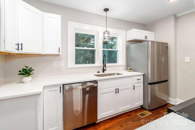 Beautifully Renovated 2-Story Home 4BR/3BA This fully updated home blends modern style with comfort across two spacious levels. The kitchen boasts a center island with overhead hood, quartz countertops, and brand-new cabinetry. Throughout the home you’ll find refinished wood floors, updated windows, fresh paint, new doors, and stylish lighting and fixtures. The layout features 4 bedrooms and 3 full baths, including a private master suite with a beautifully finished bath. Downstairs, a huge basement provides excellent storage or workspace. Outside, enjoy the welcoming front porch, brick accent fence, and a nice yard, perfect for relaxing or entertaining. Move-in ready and designed to impress