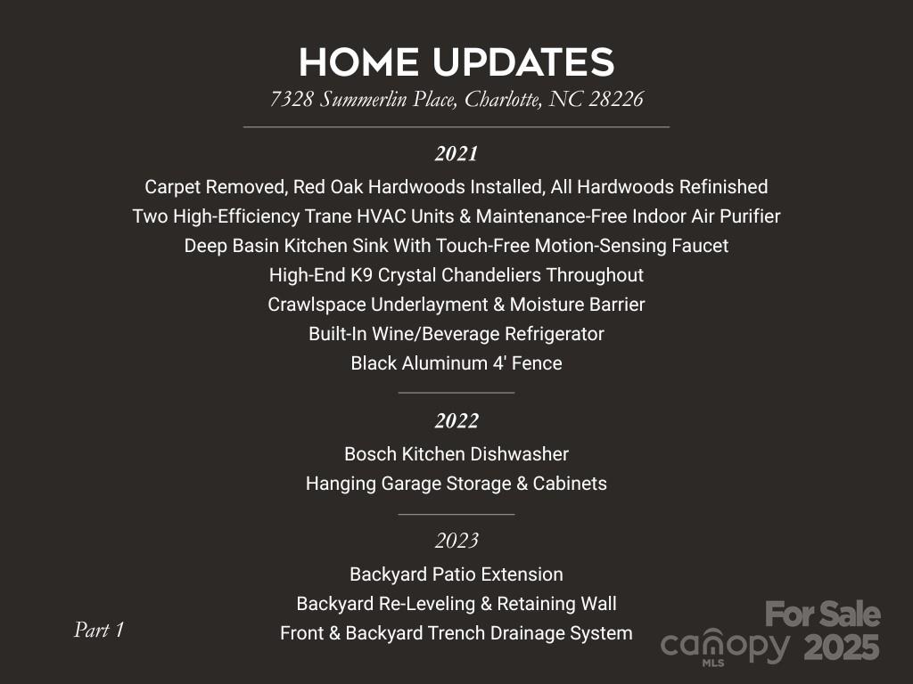 Executive Elegance Meets Everyday Comfort. This one-of-a-kind executive brick home, premium-built by Persis-Nova Custom Homes, offers over 4,100 sq ft of luxurious living space with 5 spacious bedrooms, 4 ½ bathrooms, and a finished 2-car attached garage—all nestled on a nearly 1/3-acre lot. From the moment you enter the beautiful radius iron front door, you'll be captivated by the dramatic two-story foyer, gorgeous hardwood floors, remarkable custom moldings, arched doorways, display-wall niches, 9-ft ceilings, and 8-ft doors throughout. Designed for both comfort and entertaining, the main level features AV wiring, guest or second primary suite with private bath, an elegant formal dining room, and a versatile formal living room that can serve as a flex/sitting area or second home office. The gourmet kitchen is a chef’s delight complete with a seated island, custom cabinetry, 5-burner gas range, double ovens, and a cozy breakfast nook that opens to the family room with a stunning coffered ceiling and stone fireplace. Enjoy a large laundry room with sink. Upstairs, an expansive owner’s suite offering a sitting area and spa-like ensuite with a dreamy open-concept closet. Three additional bedrooms offer generous space, and the library or home office showcases beautiful built-ins. A spacious 280 sq ft recreation/media/bonus room with a custom fireplace provides endless possibilities for work, exercise, or play. Relax in the enclosed porch or on the backyard patio with wood-burning fireplace—perfect for enjoying crisp fall evenings. Nestled on a quiet, private drive shared by just four homes, this property offers a peaceful setting with wonderful neighbors and a fun place to play outdoors. Walkable to Olde Providence Elementary and Colony Place with SouthPark, Arboretum, Uptown, golf, and private schools nearby. Welcome home!