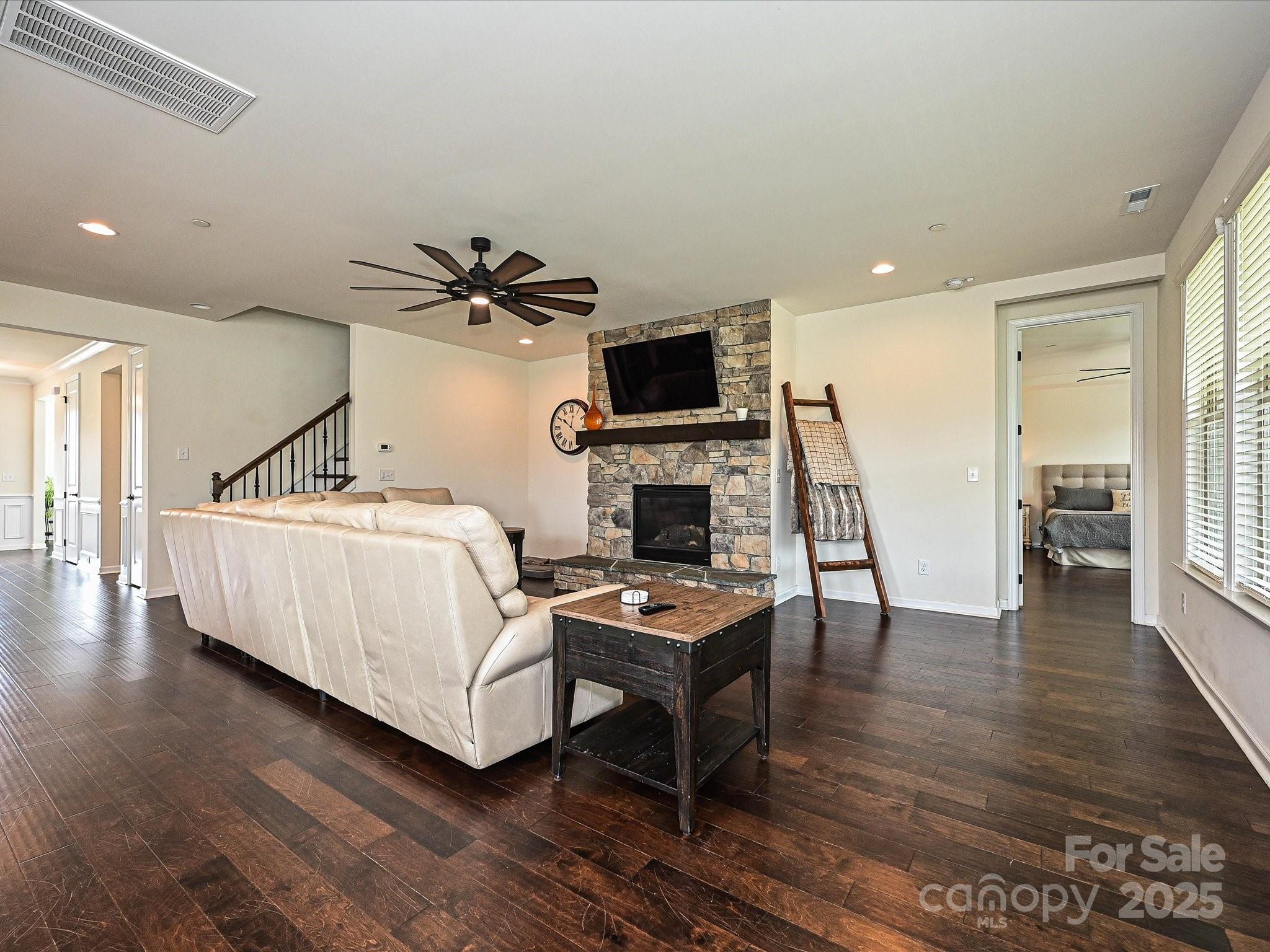 Welcome to an amazing home! Beautiful neighborhood and sought after Cox Mill school district. Open floor plan with large great room, breakfast area, butlers pantry, walk-in pantry, formal dining room, office or living room. Gourmet kitchen with upgraded cabinetry, premium appliances, and very large island/breakfast bar. Four bedrooms and a recreation/bonus room. Primary bedroom and bath are huge and on the main. Eight-foot doors throughout the main level. Mohawk hardwood flooring throughout and tile flooring in baths. Screened-in porch to enjoy fenced backyard nicely landscaped. Allen Mills subdivision offers a large swimming pool, play zone, two volleyball courts, and a clubhouse. The location is so convenient. There are so many upgrades in this home we have a list that will be available. Do not miss seeing this home!