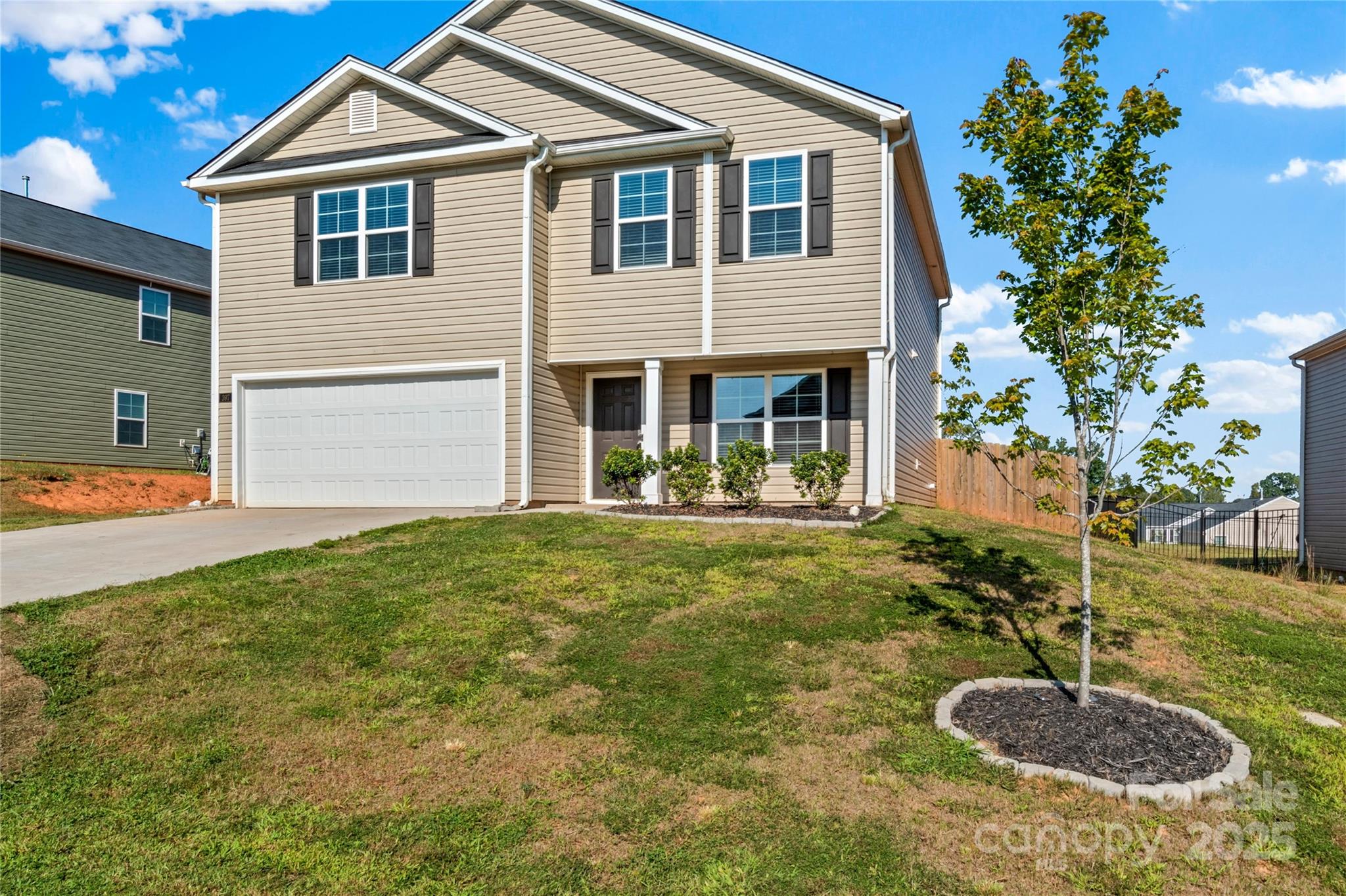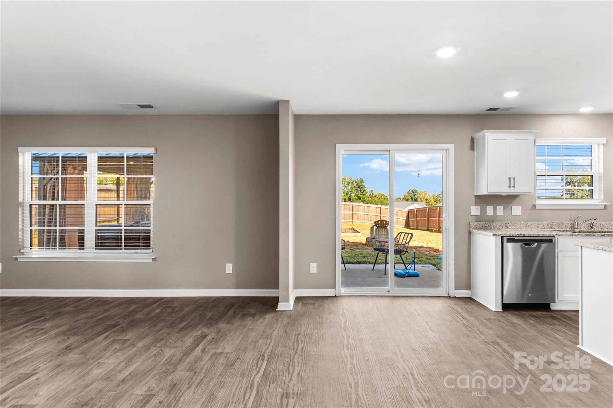 Enjoy the covered front patio ready for your cozy chairs to enjoy your morning coffee... Step inside to flex space for large dining area, office, or formal living room ... As you head to the kitchen, notice the large pantry .. Kitchen offers white shaker cabinets, granite countertops, and stainless appliances ... Nice window above kitchen sink with view of the fully fenced back yard ... Kitchen Island ... Open floorplan with view of spacious Living Room... Step upstairs to 3 bedrooms, loft/bonus area, and laundry room too ... Looking for a large Primary Bedroom? Well this one has it! Vaulted Ceilings, Adjoining Primary Bathroom with Double Sinks, Walk in Shower, Linen Closet and Walk in Closet ... Secondary Bedrooms both have large closets... Hall Bathroom with Double Sinks and Tub/Shower combo ... Laundry Room includes linen closet too ... Be sure to take a look at the backyard offering expanded patio, firepit, and playset too..2 car attached garage