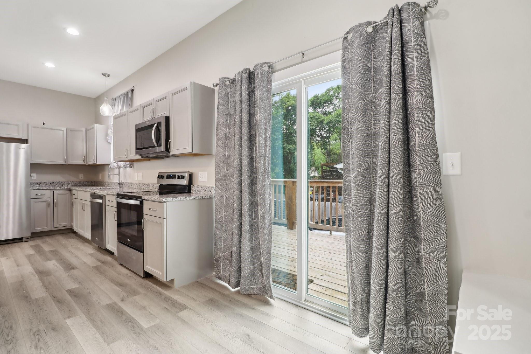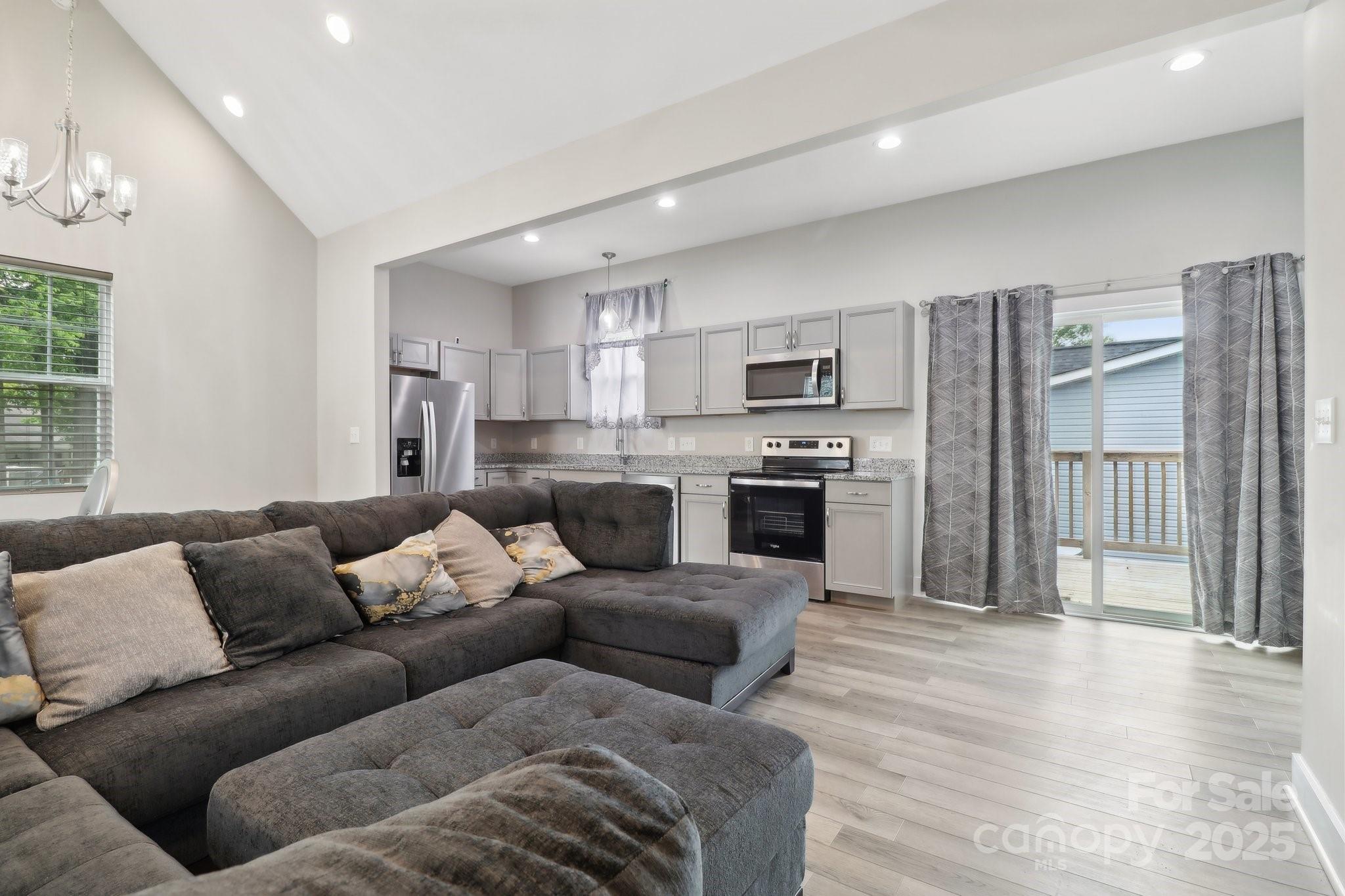 Welcome to this beautifully maintained 3-bedroom, 2-bathroom home perfectly situated in the vibrant heart of Downtown Concord! Preferred lender incentive: $1,500 credit towards buyer closing costs. Must use preferred lender to qualify - ask for details! From the moment you arrive, the classic rocking chair front porch invites you to relax & take in the neighborhood charm. Step inside to a bright, open-concept living space featuring soaring cathedral ceilings & an abundance of natural light. The modern kitchen showcases SS, granite countertops, & plenty of room to entertain. All three bedrooms are generously sized, offering comfort and flexibility for guests, or home office space. Enjoy peaceful mornings on the deck overlooking a fully fenced-in yard—ideal for pets or a garden oasis. This home blends character, comfort, and convenience all in one prime location. Don’t miss your chance to live just steps from local shops, restaurants, & everything Downtown Concord has to offer!