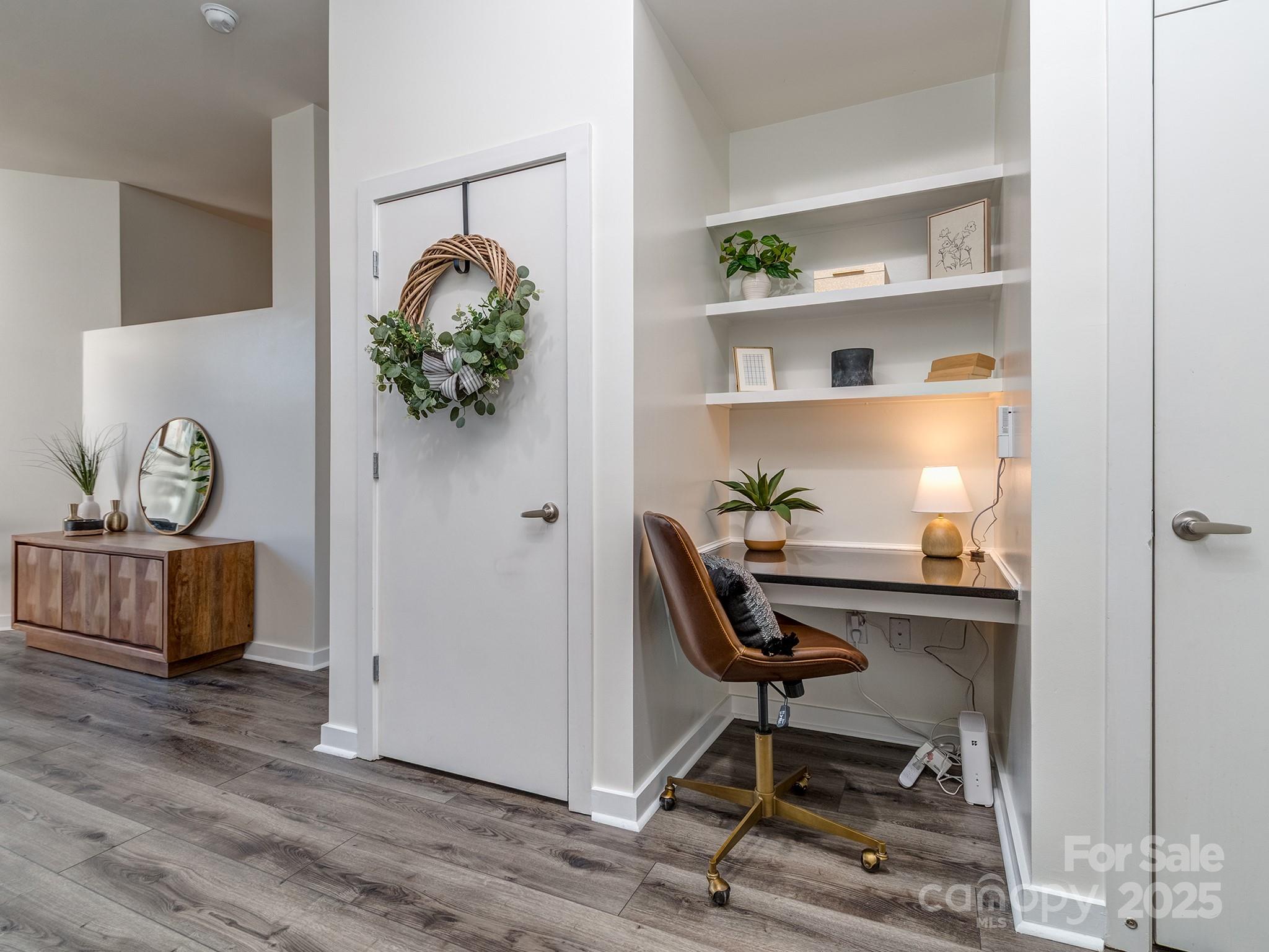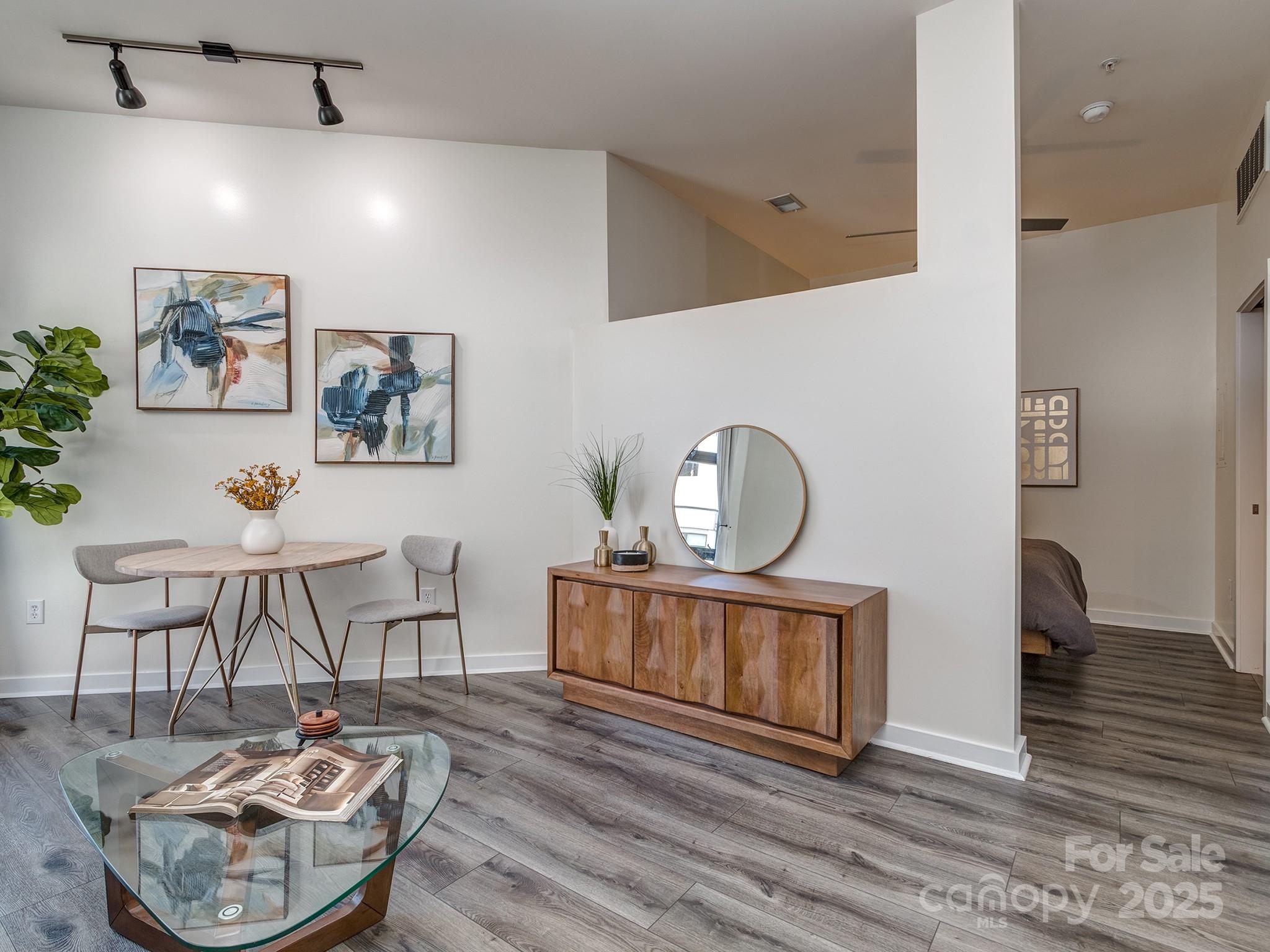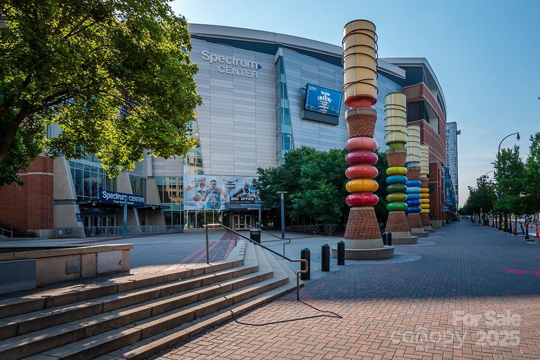 Uptown Studio with Smart, Low-Maintenance Living! This top-floor condo in the popular Court 6 community puts you right in the center of it all—just one block from the Spectrum Center and steps to dining, entertainment, and the light rail. Inside, you’ll find 10-ft ceilings, durable LVP flooring throughout, a built-in desk for work-from-home convenience, and a spacious walk-in closet. The kitchen and living area flow seamlessly, making the most of the studio layout, while the LG Wash Tower adds modern efficiency. Enjoy quiet courtyard views from your unit, along with the security of a gated garage and one assigned parking space. Perfect for those seeking convenient city living or an easy-care investment property!