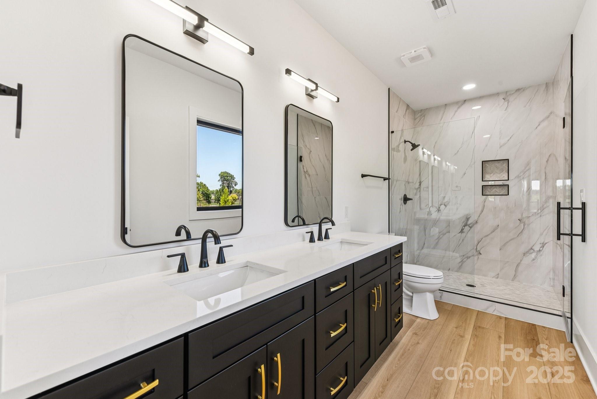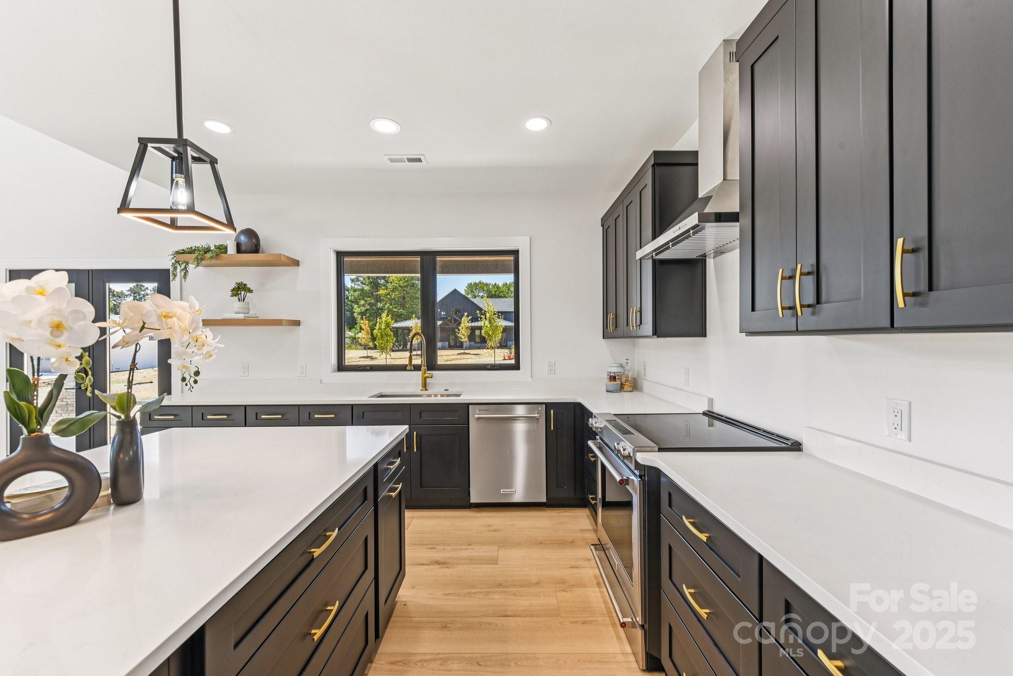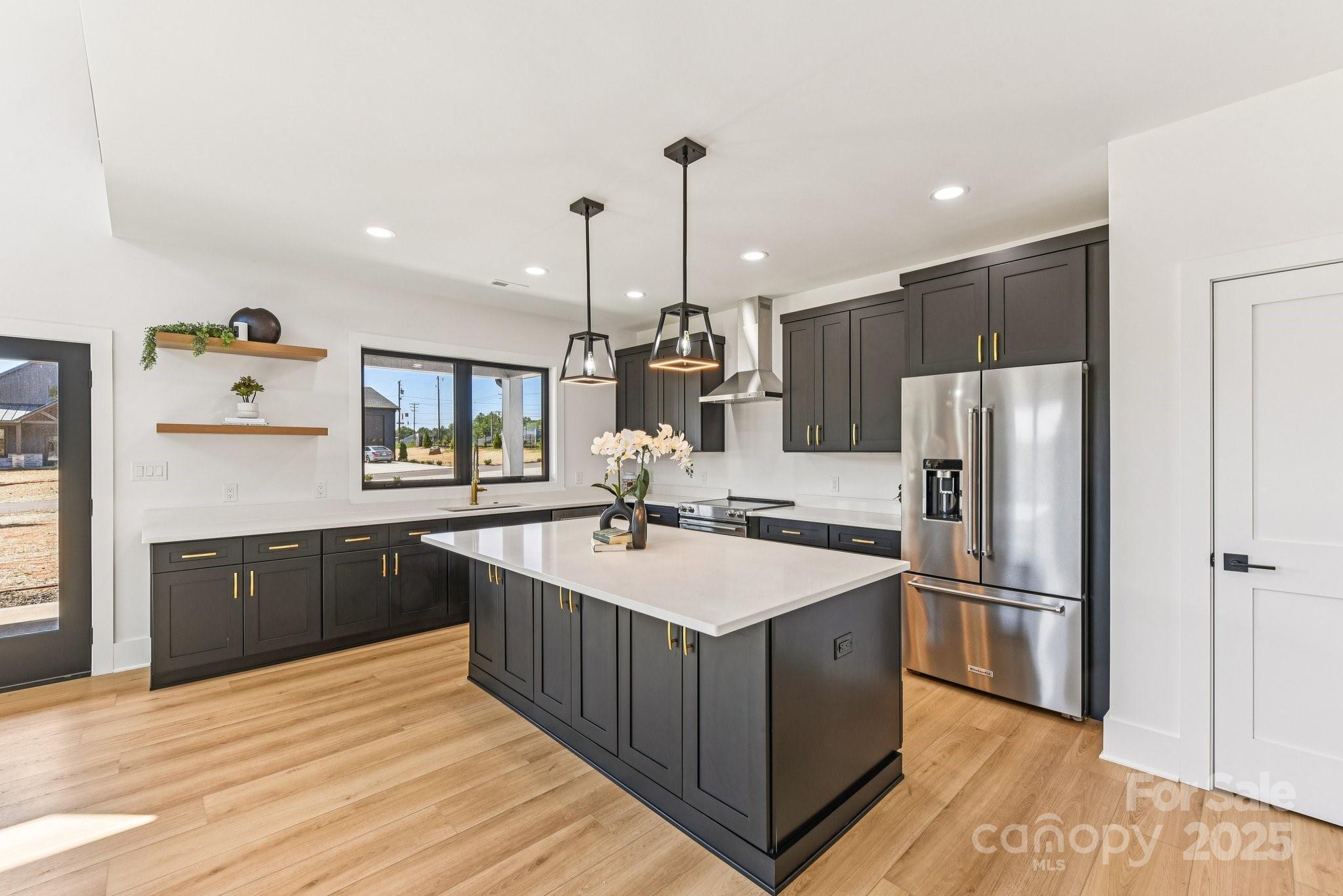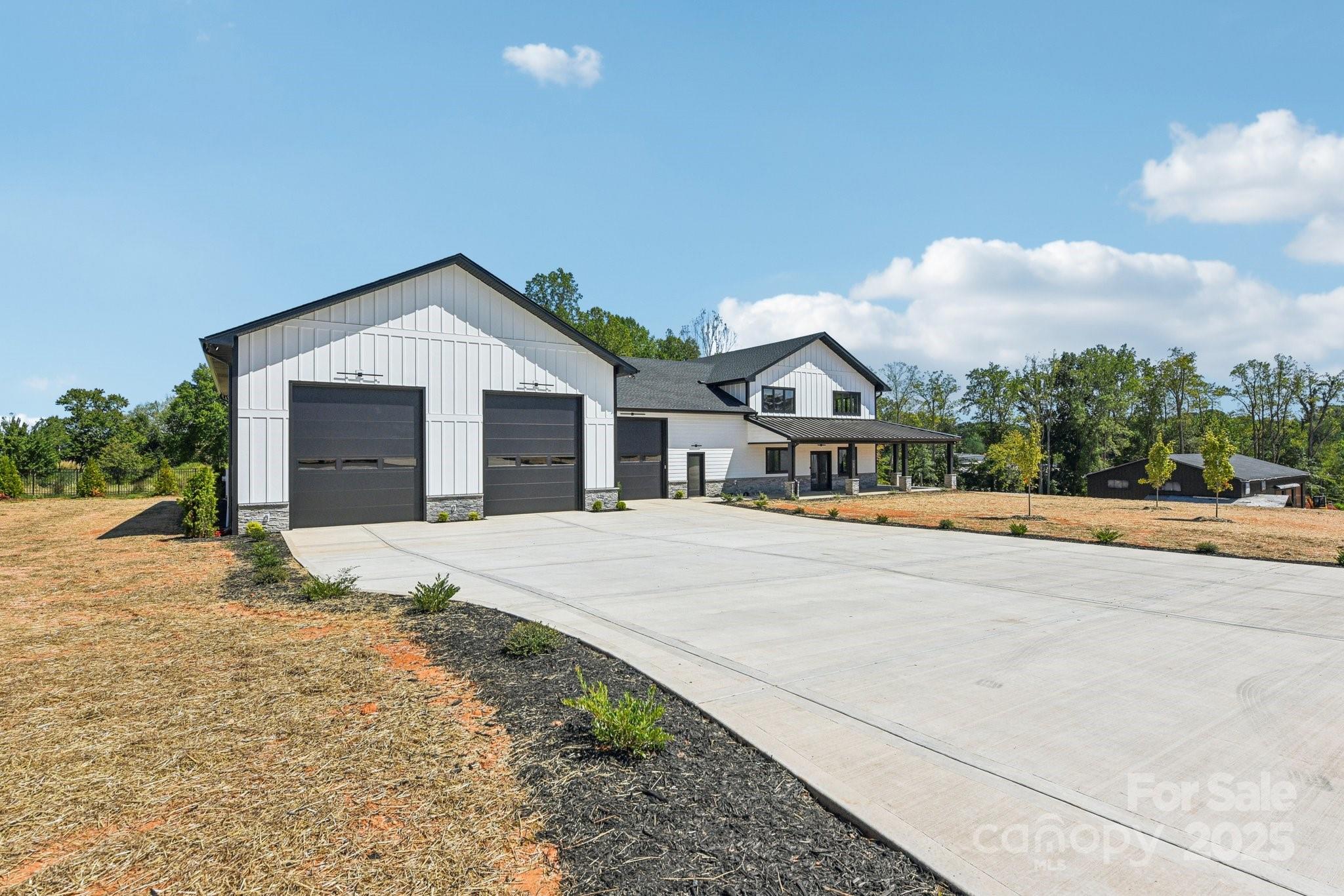 Welcome to Honeyman Estates, an exclusive gated enclave featuring just five luxury barndominiums—a rare opportunity to own one of the most innovative and desirable styles of homes in today’s market. More than just a residence, this property represents a new way of living: blending modern luxury with true practicality, designed for those whose lifestyle is as expansive as their vision. The garage is a masterpiece of its own, designed for more than just storage. With climate-controlled comfort, soaring 16 to 18-foot ceiling heights, epoxy-coated floors, and a powerful 400-amp service panel, this space is fully prepared to house your car collection, provide room for RVs and boats or even your very own indoor pickleball court! Spray foam insulation ensures year-round efficiency, while the impressive volume of the space allows for nearly limitless possibilities. This property offers not only the space but also the freedom to fully embrace your passions. From family living to hobby space, it redefines what home can mean. Step inside to find a stunning great room crowned by soaring vaulted ceilings that draw the eye upward and create an immediate sense of openness and grandeur. Vertical modern cable railing adds a sleek architectural touch, blending contemporary design with the rustic elegance of the barndominium aesthetic. The chef’s kitchen is a true centerpiece, featuring 42” shaker cabinets, quartz countertops, floating shelves, and premium appliances, crafted for both everyday meals and grand entertaining. Luxury vinyl plank flooring flows seamlessly throughout the home, leading to a striking 72” linear fireplace that anchors the living space with warmth and modern sophistication. Outside, the home’s timeless board-and-batten fiber cement siding pairs perfectly with architectural roofing, accented by standing seam metal for the covered porches, to create an aesthetic that is both classic and forward-thinking. Every detail has been considered, from the materials to the craftsmanship, resulting in a property that delivers enduring value and style. This barndominium is not just a home, it is a statement. A practical yet luxurious way of life that merges passion, functionality, and elegance under one roof. Honeyman Estates offers something incredibly rare: exclusivity, sophistication, and space to live life without compromise.