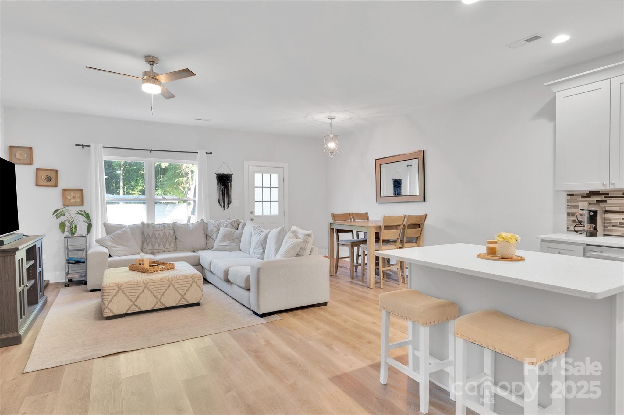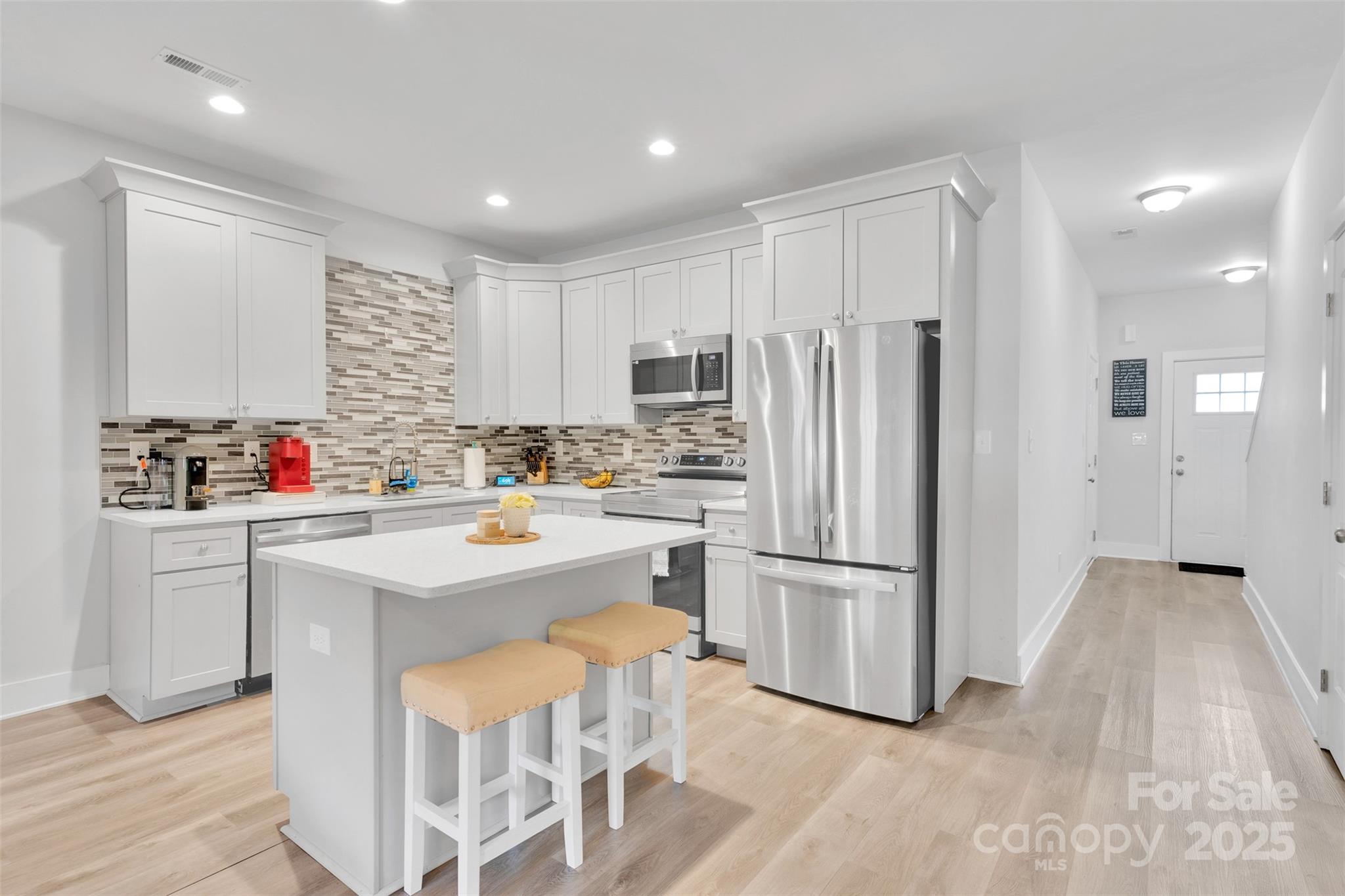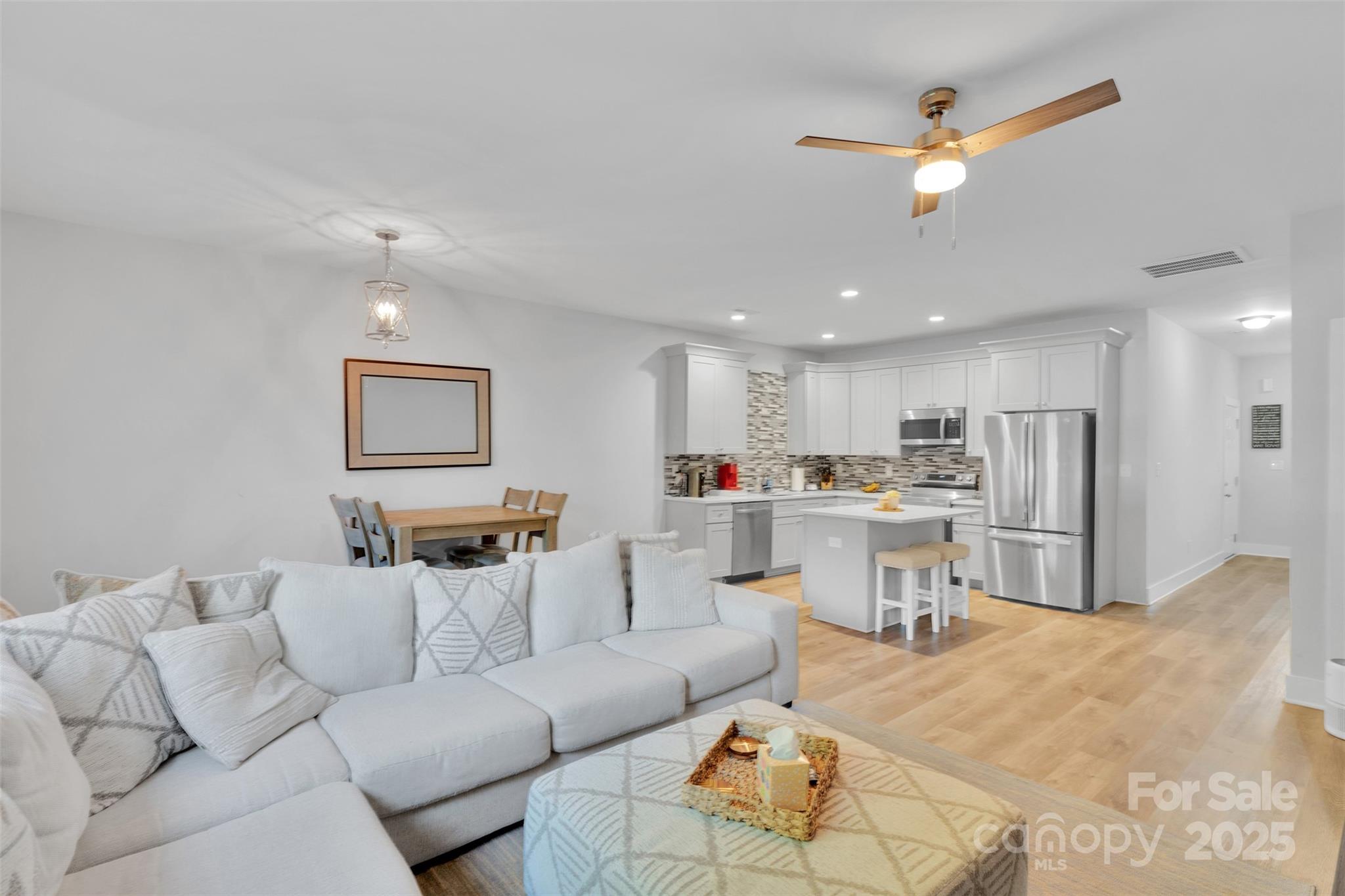 Discover modern living in this stunning two story townhome in Kannapolis! Nestled close to the heart of Kannapolis, this inviting two-story townhome offers the perfect blend of comfort, style, and convenience. With three spacious bedrooms and two and a half beautifully appointed bathrooms, and an open living concept on the main level, this home is ideal for both relaxing and entertaining. Step inside to find a bright and airy living space bathed in natural light, featuring laminate flooring throughout for easy maintenance and a cozy and modern aesthetic. The heart of this home in the open kitchen with granite countertops, with a large island that provides ample space for meal prep and casual dining. This open floorplan seamlessly connects the kitchen to the living area, dining area, and easy access to the back patio, which is perfect for hosting gatherings with friends. Upstairs, you'll find all three bedrooms, including the primary suite that offers a generous walk-in closet with plenty of storage space for your things, and a stunning attached bathroom with tiled walk-in shower. The laundry area is situated upstairs, conveniently located where the three bedrooms are, making your chores a breeze! The additional bedrooms are both spacious and versatile, perfect for guests, a home office, or a hobby room. When you step outside to your backyard oasis, you will find a partially fenced backyard that has a firepit that stays for you, making it ready for your s'mores this fall, allowing you more space to entertain. The quaint, covered front porch offers a charming spot to relax and enjoy the outdoors, rain or shine. This townhome is conveniently located close to the heart of Kannapolis, providing easy access to shopping, dining, entertainment options like the Gem Theater, and the Loop where you can exercise and enjoy the scenery that downtown Kannapolis has to offer. You're also close to the Kannapolis Amtrak train station, which gives you a spectacular travel option to consider. Copmmuters will appreciate the proximity to the major roads and highways, making it a breeze to get to work or explore the areas. Don't miss out on this incredible opportunity to make this charming townhome your own. Schedule your private tour today, and prepare yourself to experience the perfect blend of modern living and small-town charm that this incredible townhome and Kannapolis have to offer!