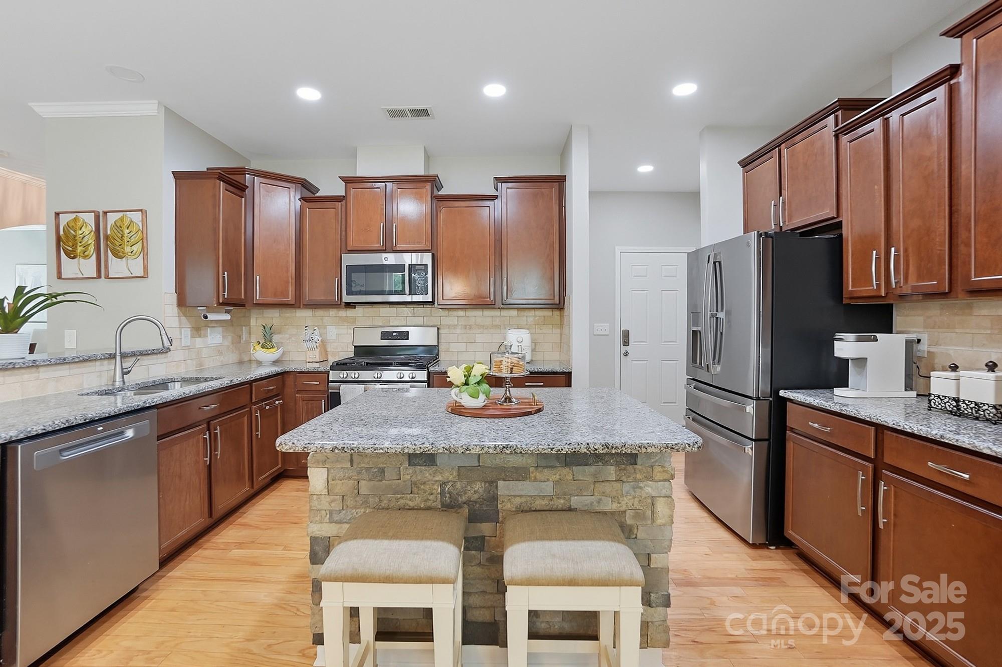 Welcome to this beautifully maintained home offering space, style, and comfort located in the Carolina Reserve Subdivision in the heart of Indian Land. With 4 bedrooms, 2.5 baths, and multiple living areas, this property is designed to fit today’s lifestyle. Enjoy the wood flooring throughout the main living areas, tile in the bathrooms and laundry room, and carpet only in the bedrooms for added comfort. The main level features a welcoming fireplace with stone accents, a formal dining room, and a versatile office/flex space with french doors, perfect for working from home or bonus room. The kitchen is the heart of the home with granite countertops, stainless steel appliances, a large pantry, and seamless flow into the living and dining spaces. The kitchen also features a convenient wet bar with built-in beverage coolers, perfect for entertaining or everyday convenience. Upstairs, a spacious loft provides an additional gathering area. The primary suite is a true retreat featuring a large bedroom, oversized closet, and en-suite bath complete with a garden tub and separate shower. Three additional bedrooms, a generous laundry room, and plenty of storage complete the second floor. Step outside and enjoy both a covered porch in the front of the home and an uncovered deck overlooking the large fenced tree-lined backyard, which is ideal for entertaining, pets, or play. A two-car garage rounds out this move-in ready property. Conveniently located just minutes from retail shopping, dining, and everyday essentials. Schedule your showing today and see why 2065 Newport Drive is the perfect place to call home!