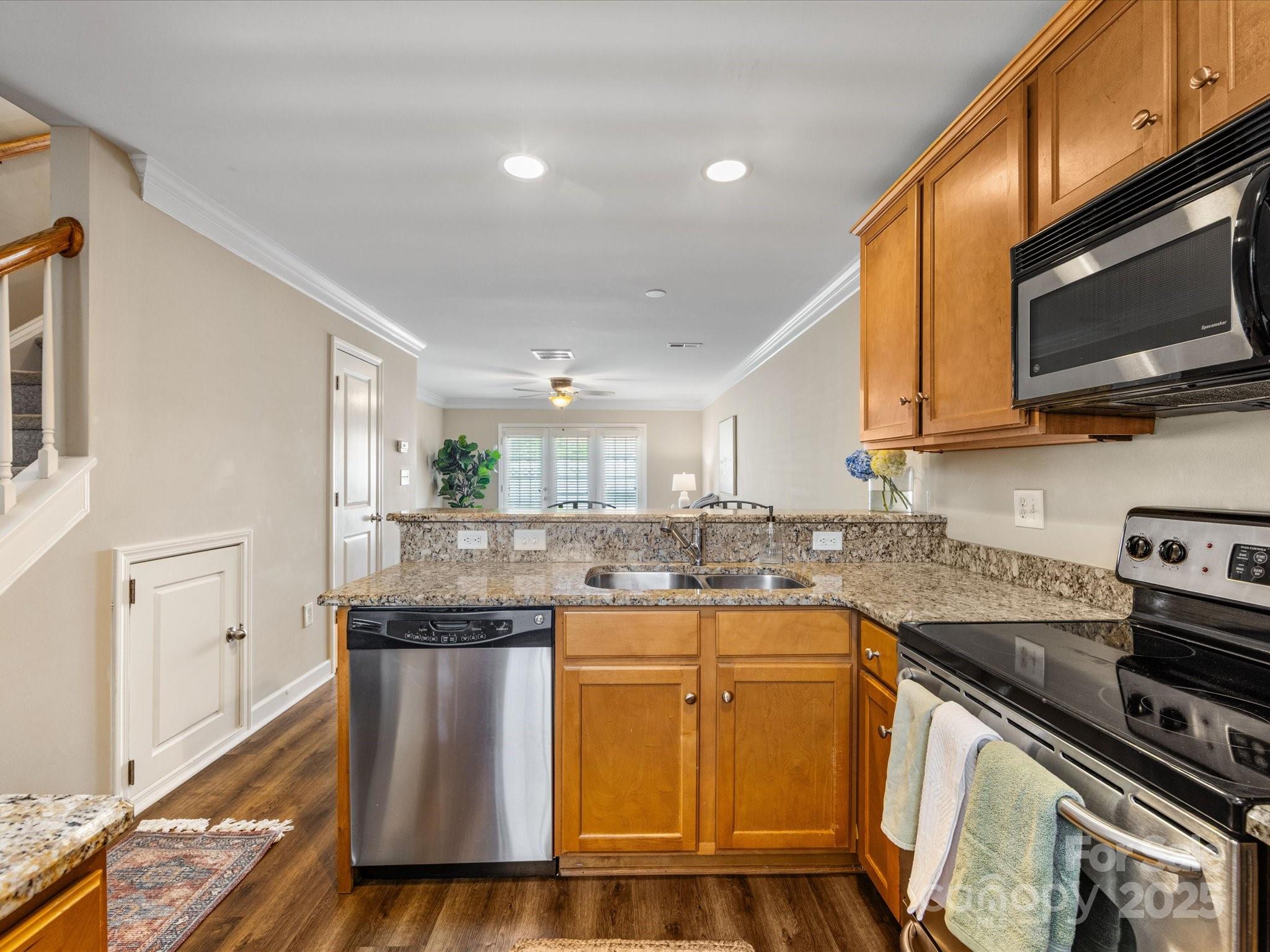 Incredible condo that lives like a townhome! Great location that is less than a mile from all of the Plaza Midwood retail. Fresh paint and brand new carpet throughout. Open floor plan on main level with hard surface flooring and a nicely appointed kitchen. Efficient kitchen layout with abundant cabinets, granite countertops, stainless steel appliances (refrigerator stays), and a breakfast bar. Spacious living and dining areas with plenty of room to entertain. French doors open onto private patio area with 6 ft white vinyl fencing. Enjoy great outdoor space for relaxing and grilling out. Upstairs includes a spacious primary bedroom, laundry area (washer & dryer included), hall bath with shower/tub combo, and an oversized vanity. The secondary bedroom would make for a great office or flex room. Sought after location that is steps from shopping, retail, nightlife, and parks. Just minutes to Uptown, Chantilly, Elizabeth, Plaza Midwood, NoDa, and MoRa. Wonderful opportunity to have a move-in ready home for under 300k!!